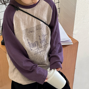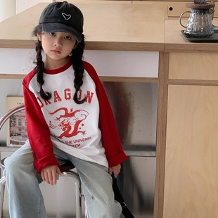 女童秋装插肩袖T恤2024新款男女童春秋款套头打底衫儿童长袖上衣