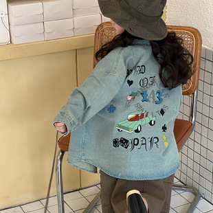 女童牛仔外衬衫套秋款儿童韩版洋气秋装2024新款大童翻领长袖上衣