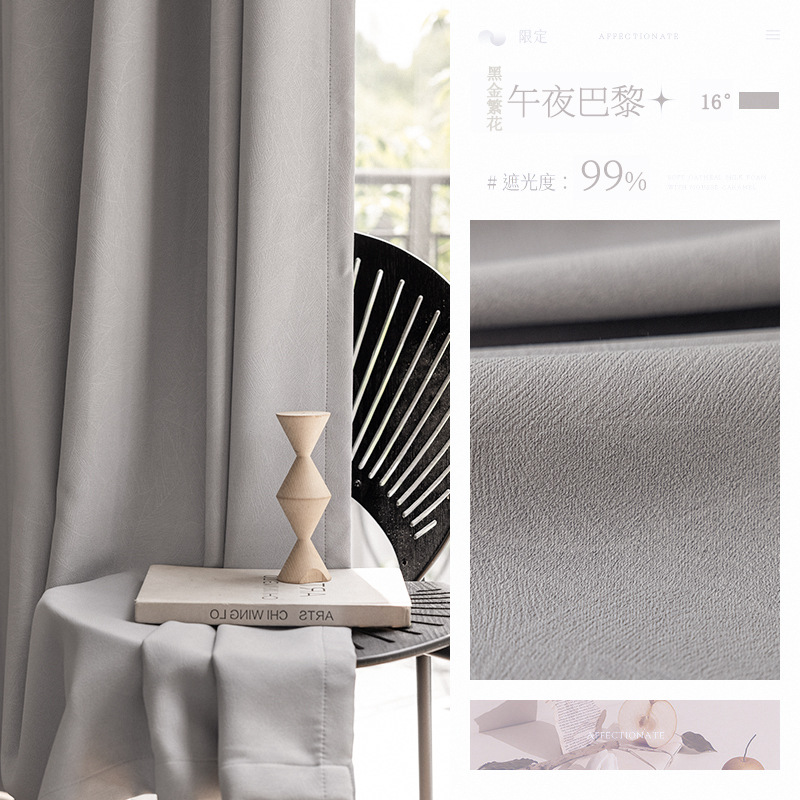 블랙 골드 꽃 양각 두꺼운 커튼 전체 음영 침실 거실 프렌치 2024 라이트 럭셔리 현대 간단한 하이 엔드 센스