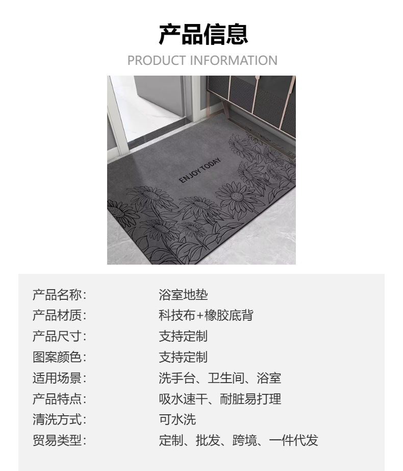 규조토 매트, 흡수성, 오염 방지, 부드러운 매트, 욕실, 현관 매트, 도매, 현대적이고 심플한 미끄럼 방지스토어 가기