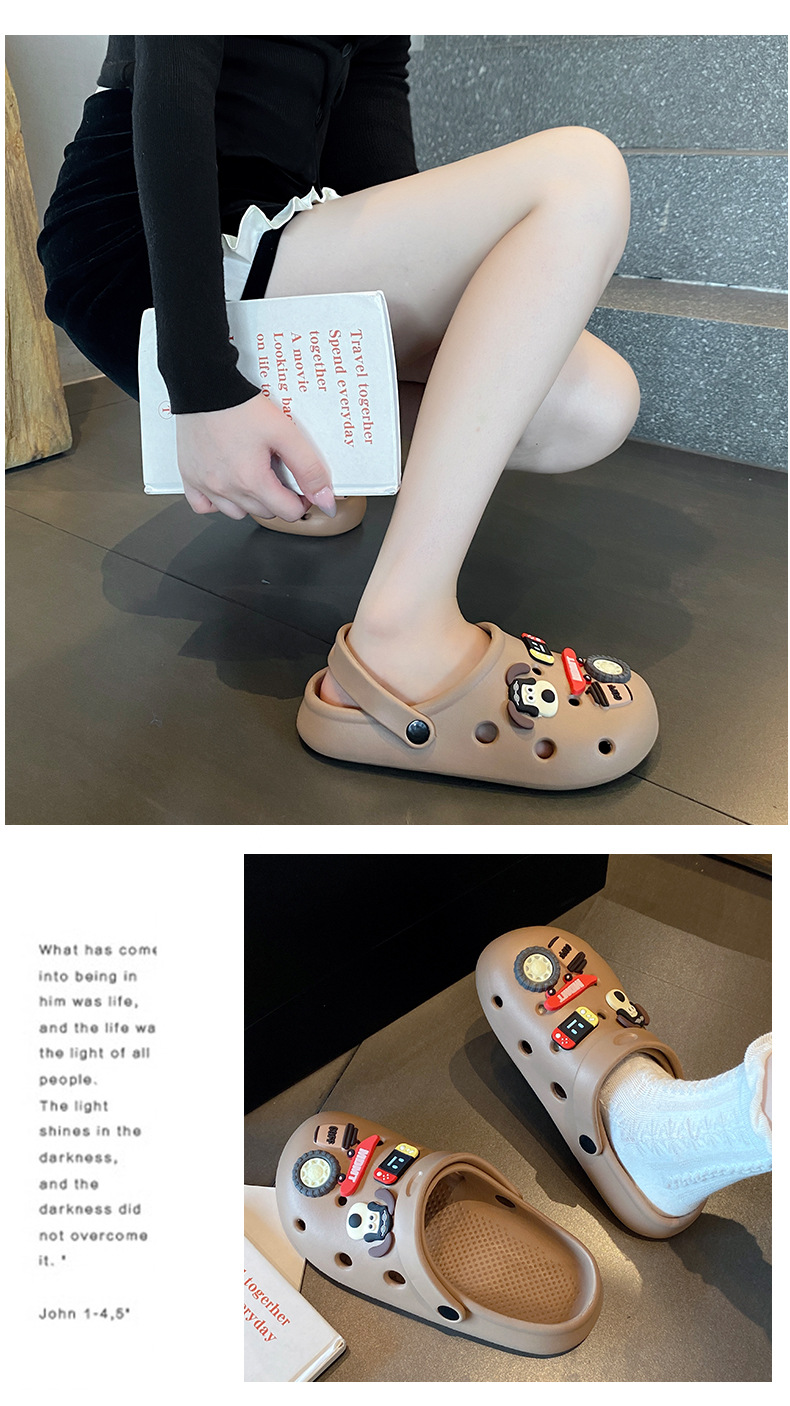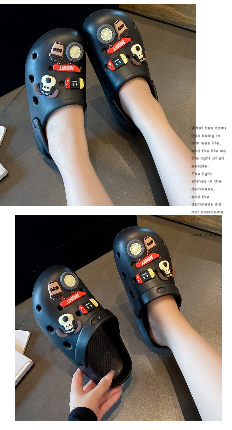 홀 슈즈 여성용 여름 아우터 2024 새로운 미끄럼 방지 두꺼운 밑창 비치 슈즈, 남성용 바오터 하프 슬리퍼