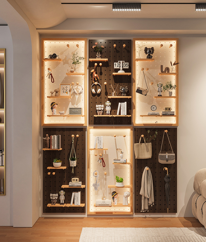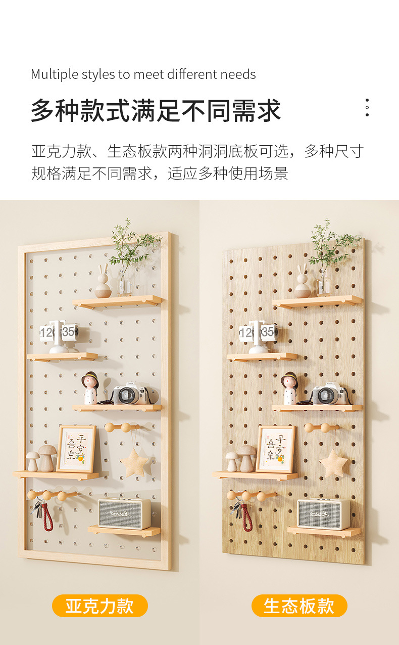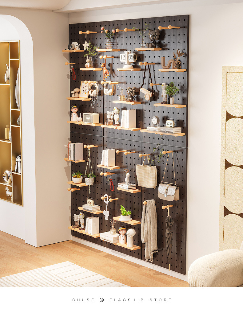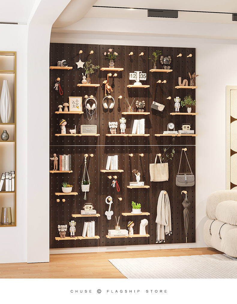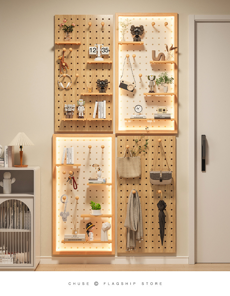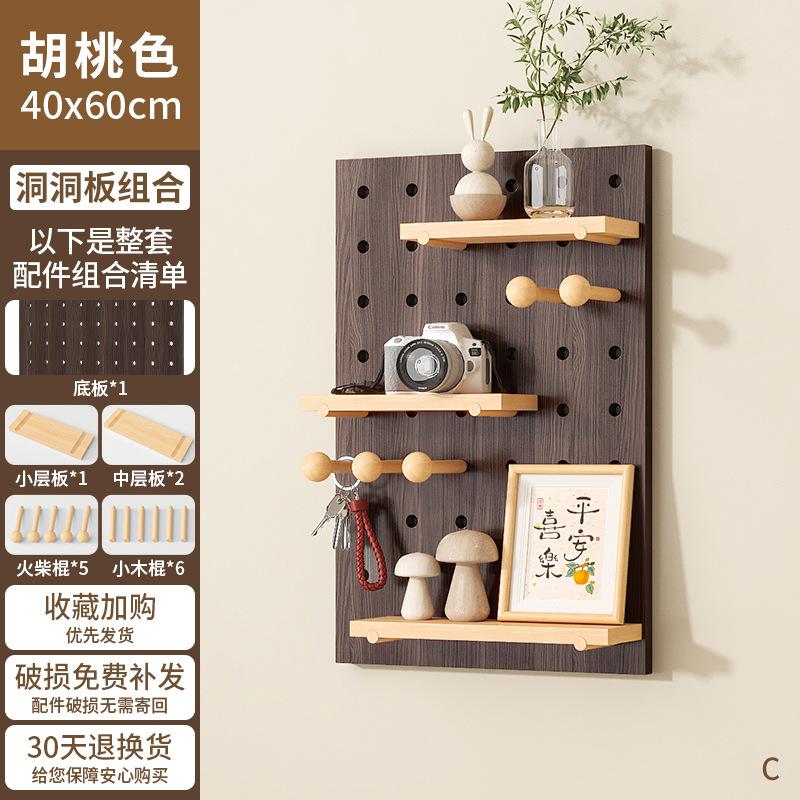 Diy 단단한 나무 구멍 보드는 이제 현관 랙 교수형 보드 거실 입구 문 저장 칸막이 벽 랙으로 만들어집니다.스토어 가기