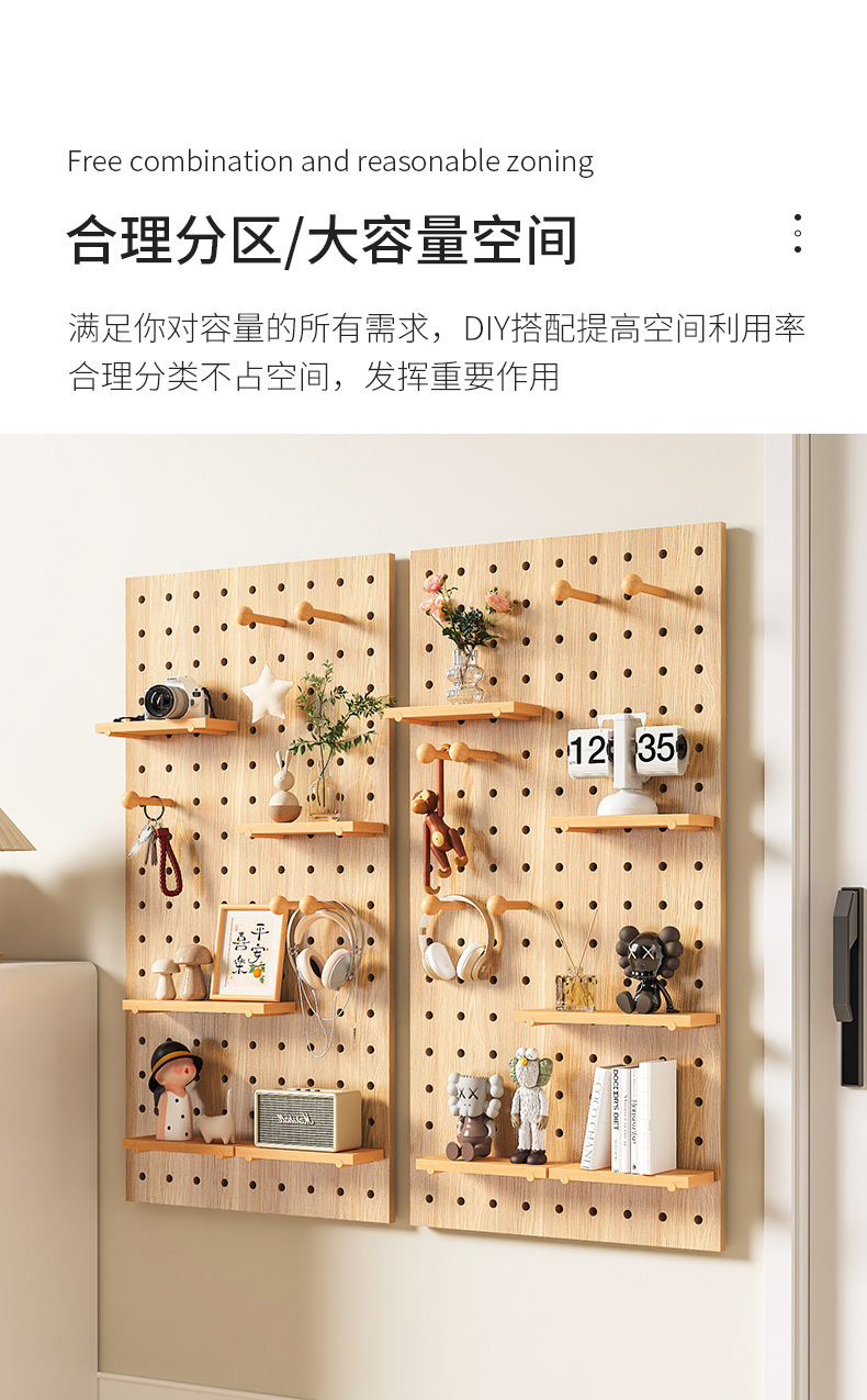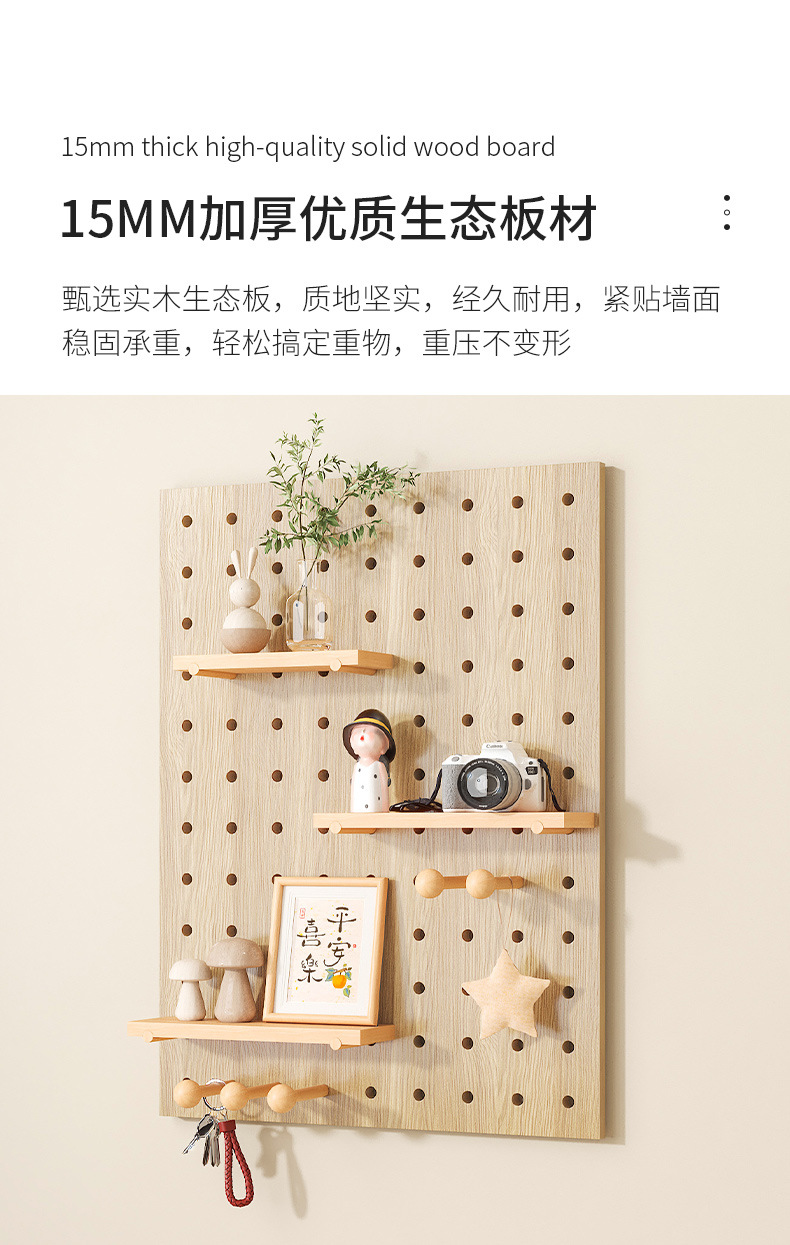 Diy 단단한 나무 구멍 보드는 이제 현관 랙 교수형 보드 거실 입구 문 저장 칸막이 벽 랙으로 만들어집니다.