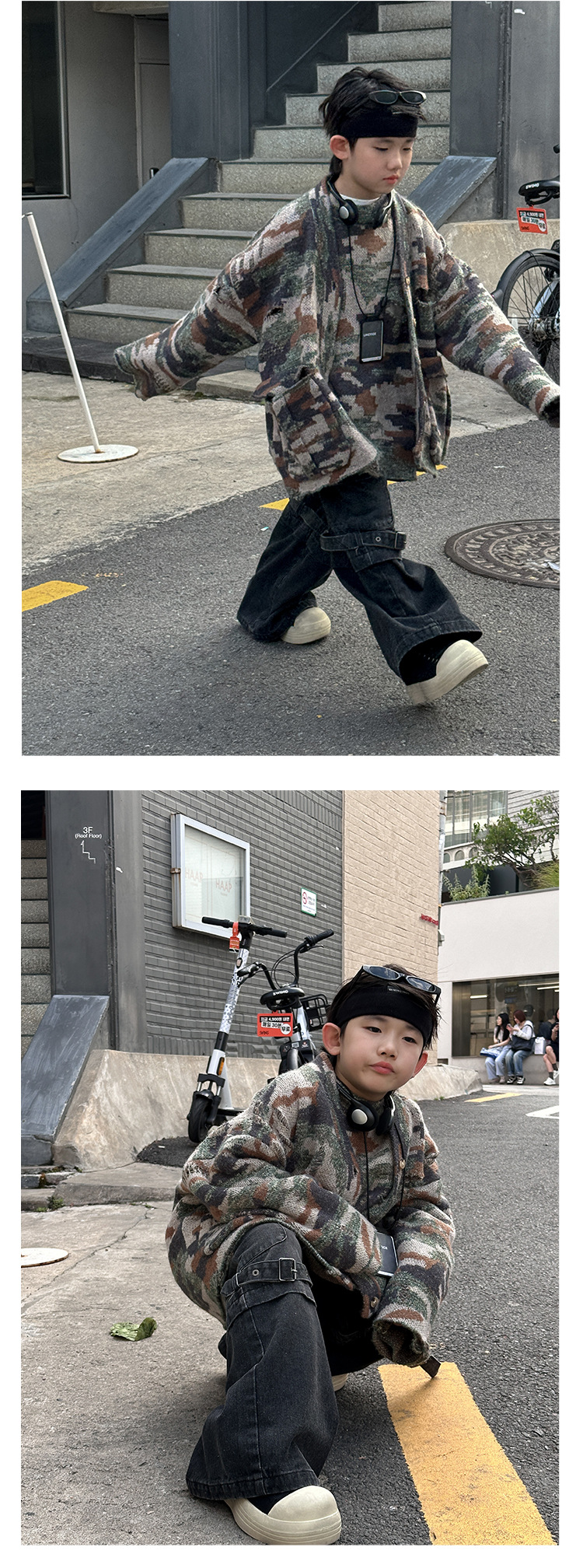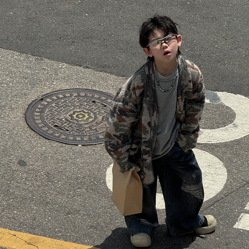 이홍 의류 소년 스웨터 카디건 어린이 의류 24 년 가을 어린이 위장 컷 거지 스타일 니트 자켓 타이드스토어 가기