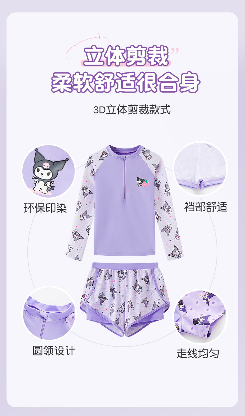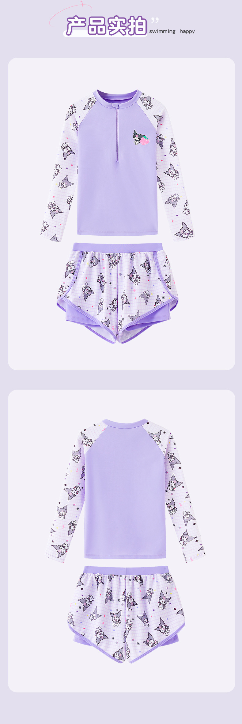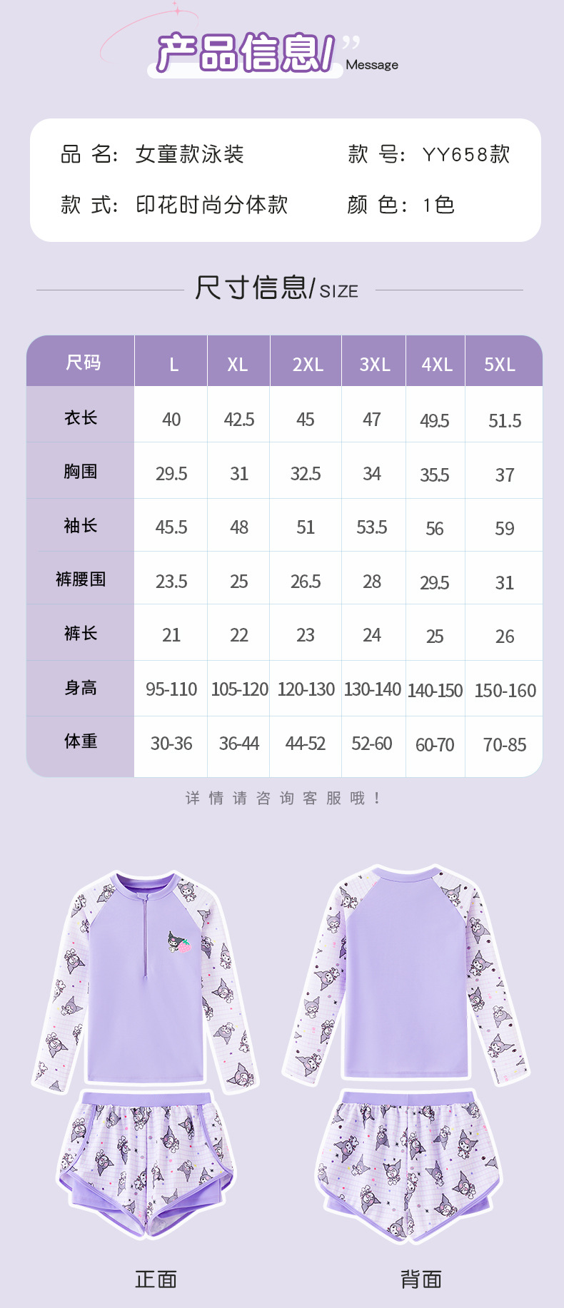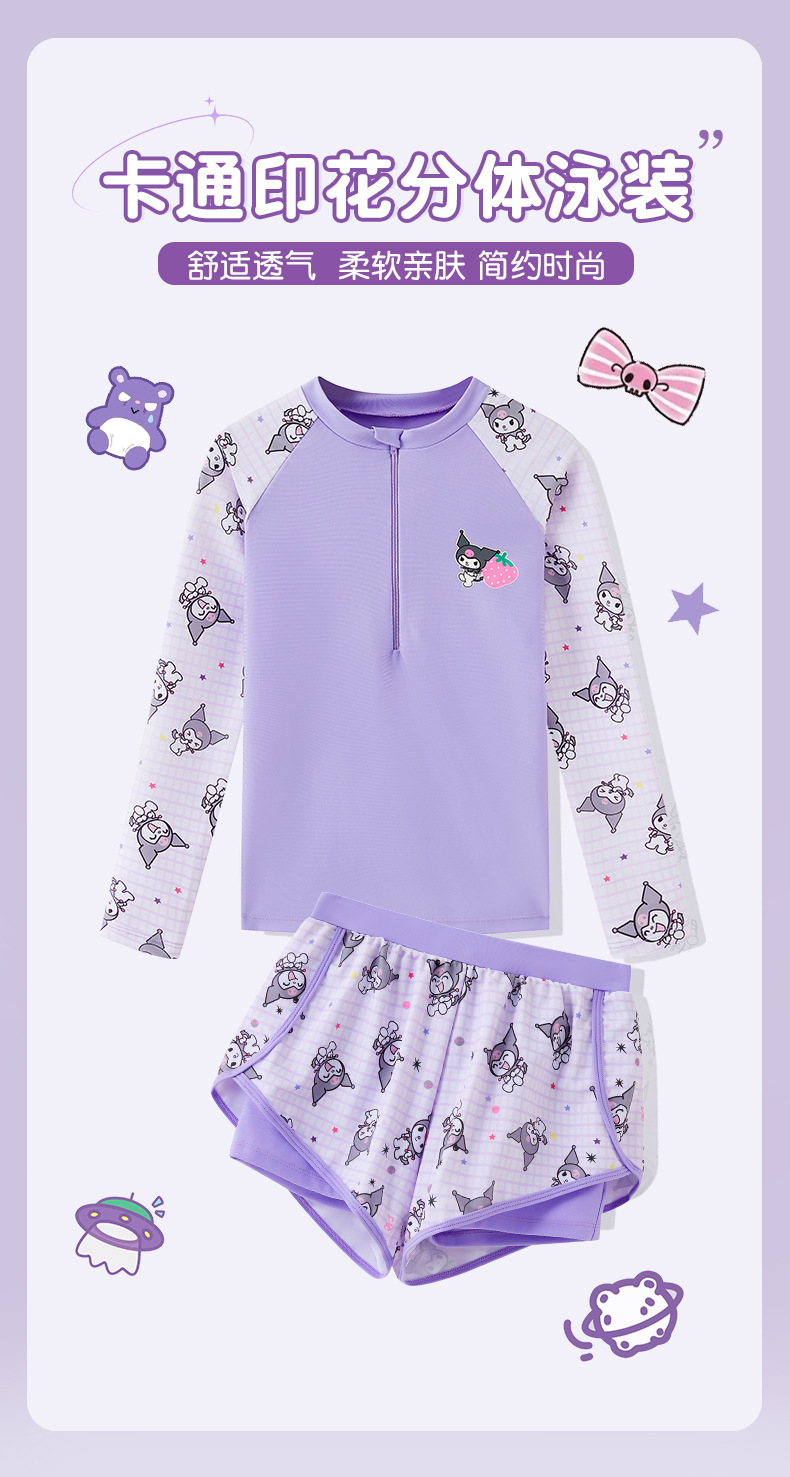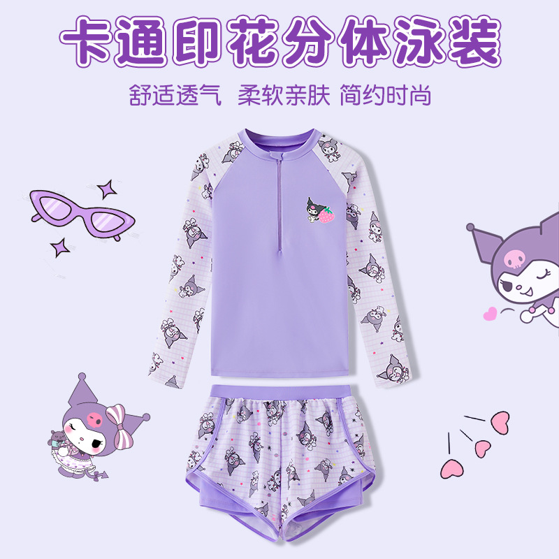 어린이 Kuromi 스플릿 아기 소녀 수영 긴팔 태양 보호 잠수복 휴가 수영복 수영복 세트 재고 있음스토어 가기