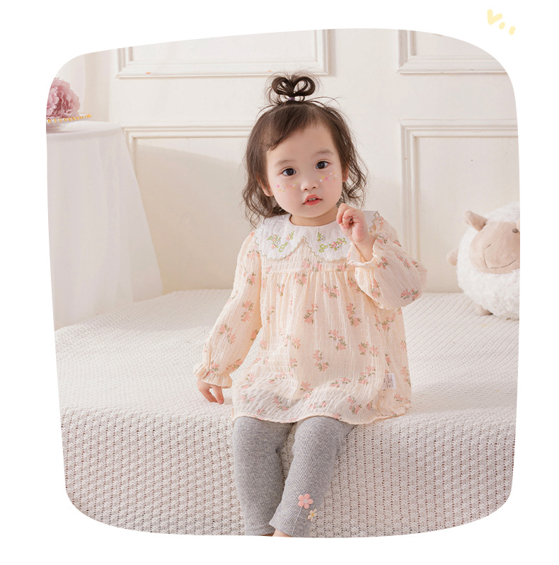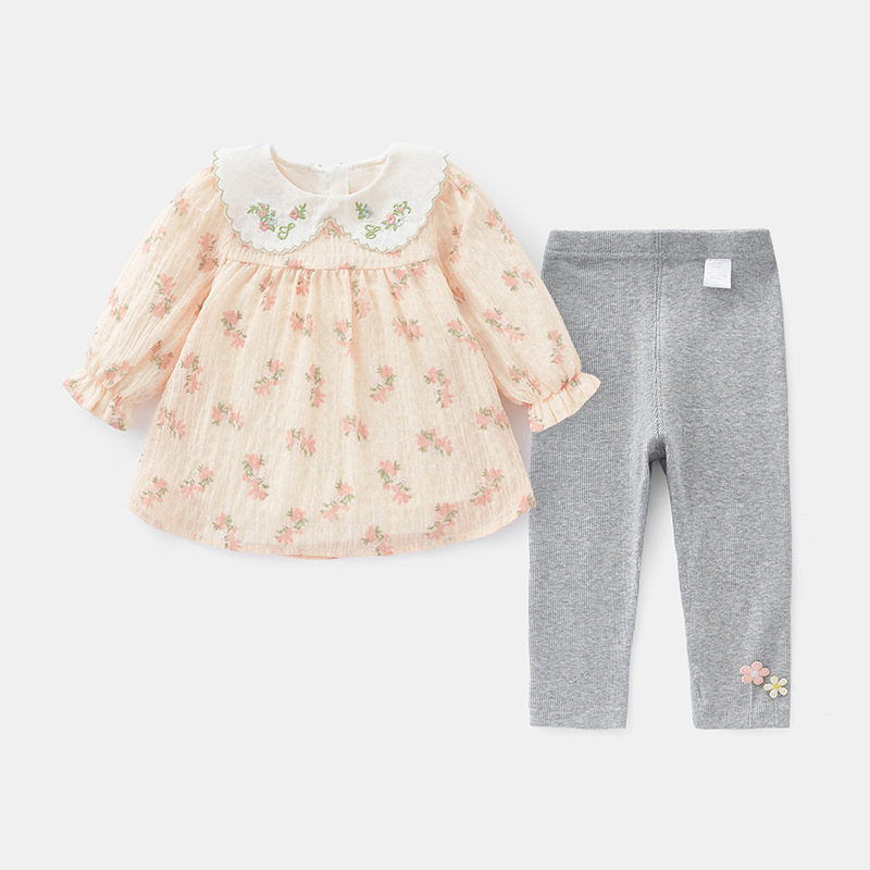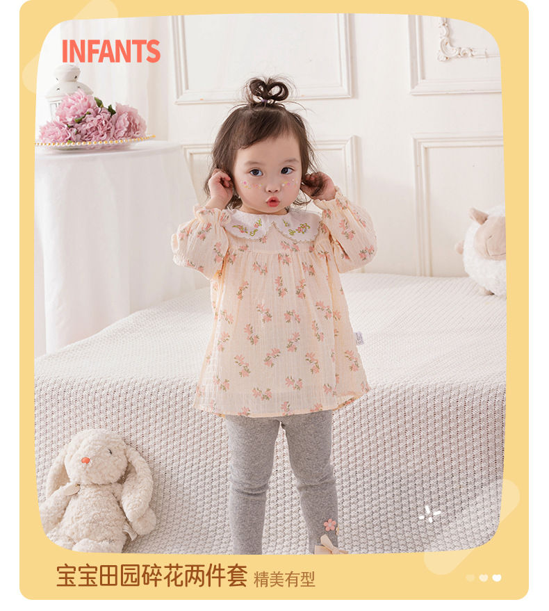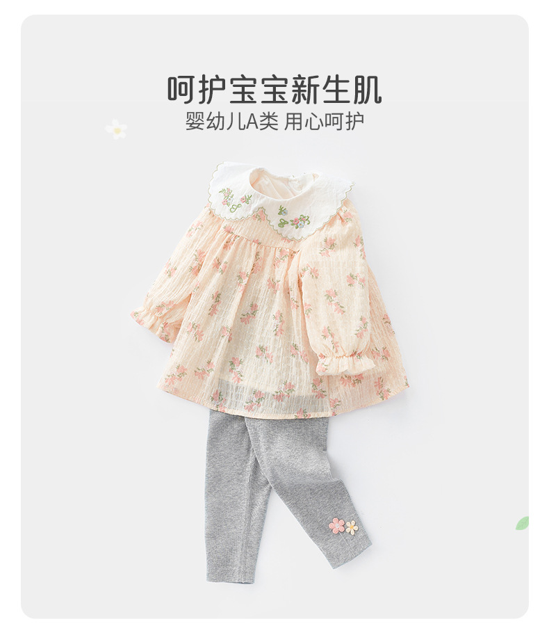 아기 긴 소매 세트 2024 가을 소녀 아기 달콤한 두 조각 꽃 탑 봄과 가을 어린이 착용 3506스토어 가기