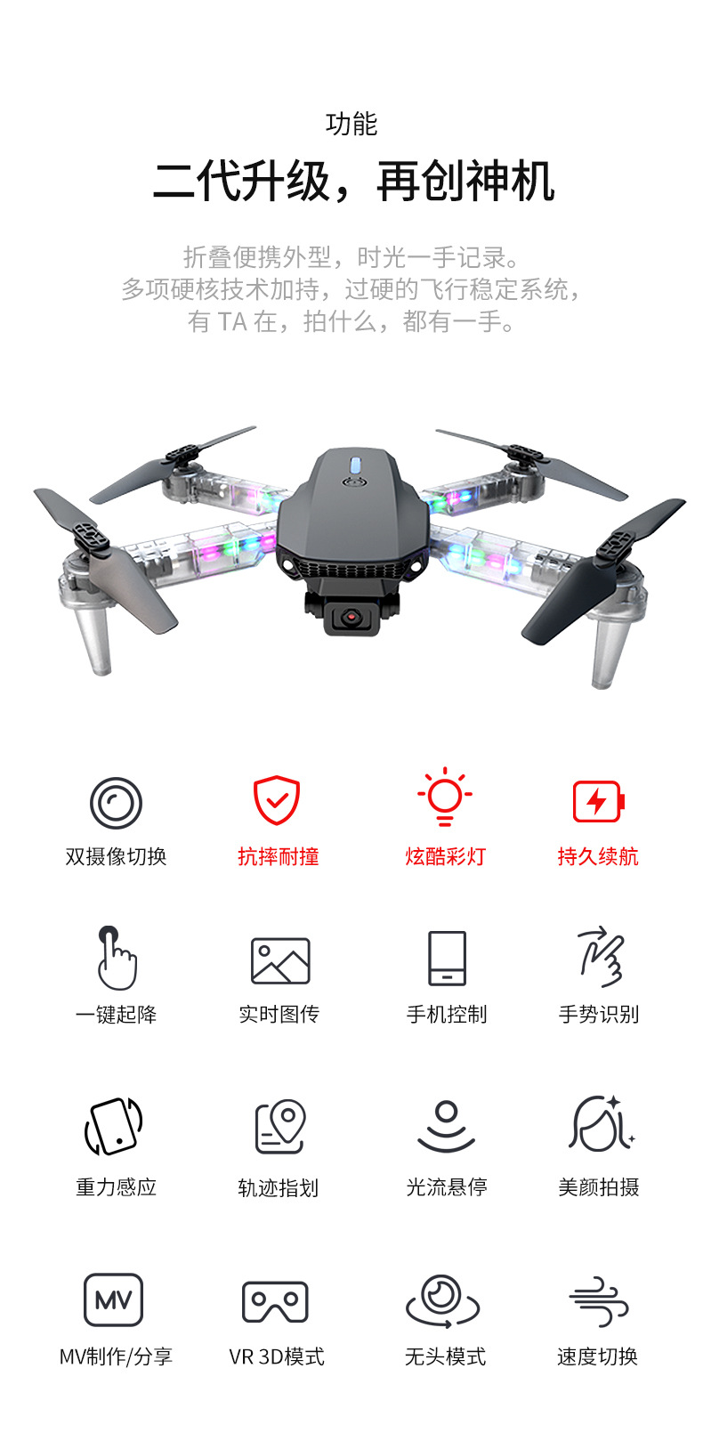 E88D UAV 항공 사진 조명 원격 제어 항공기 E99D 어린이 장난감 항공기로 4 축 접이식 업그레이드