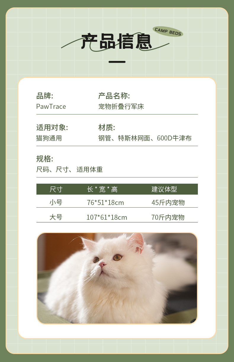 사계절 유니버설 애완견 접히는 육군 침대 중형 및 대형 개 여름 개 침대 고양이 둥지 애완 동물 야외 제품스토어 가기