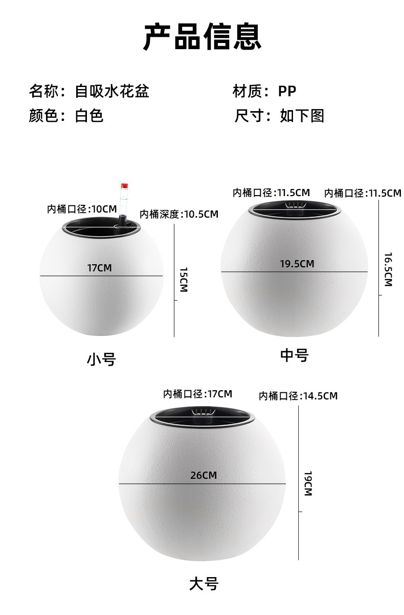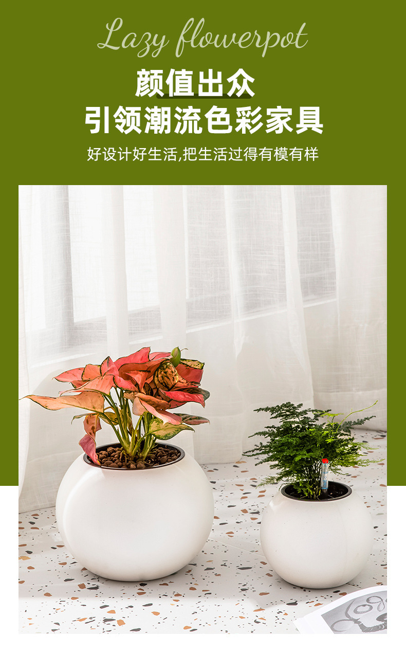 창조적 인 구형 화분 배꼽 냄비 흰색 큰 화분 비 다공성 수경 용기 게으른 자동 흡수성 플라스틱 제조 업체스토어 가기