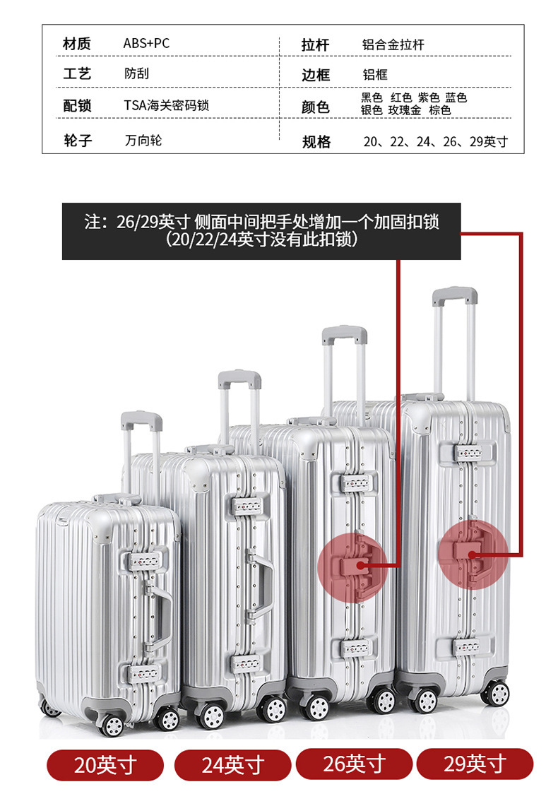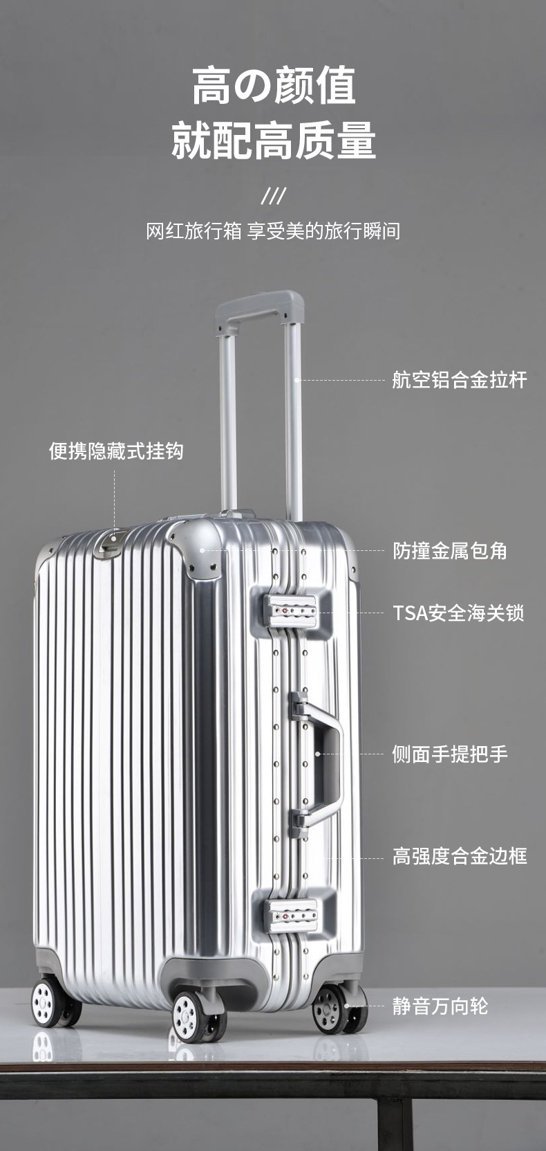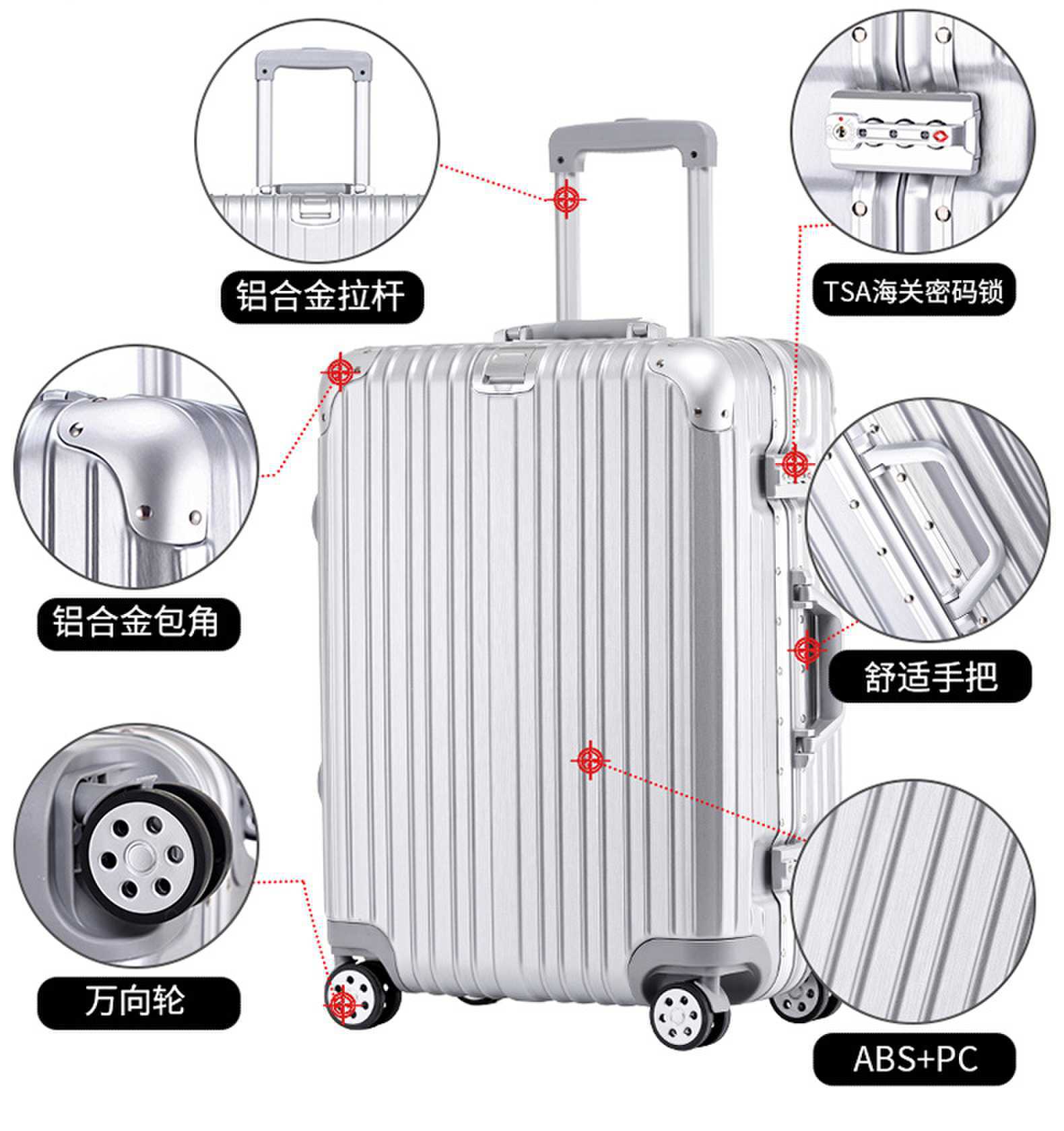 24inch 알루미늄 프레임 트롤리 케이스, 회전 바퀴 여행 가방, 여성용 여행 가방, 레트로 스타일 20inch 학생용 비밀번호 가방, 레트로 스타일스토어 가기