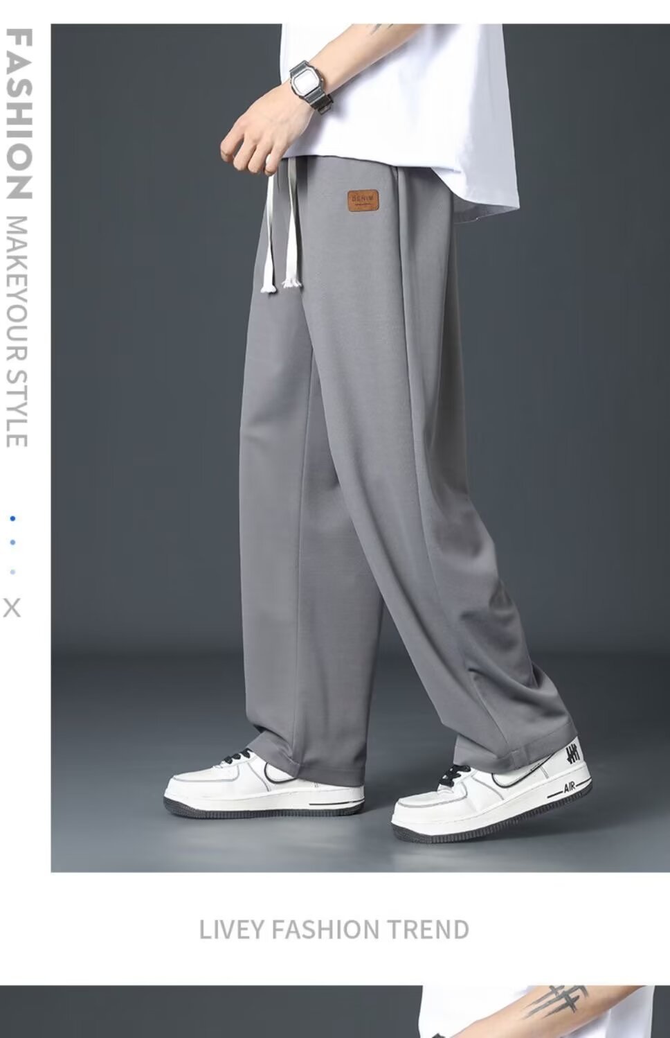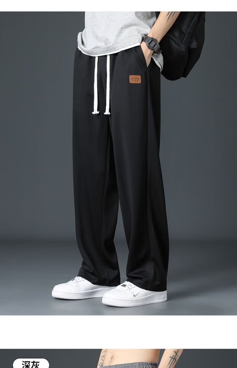 공장 직접 도매 탄성 허리 캐주얼 바지 남성 봄과 가을 새로운 스트레이트 튜브 청소년 drawstring 스포츠 바지