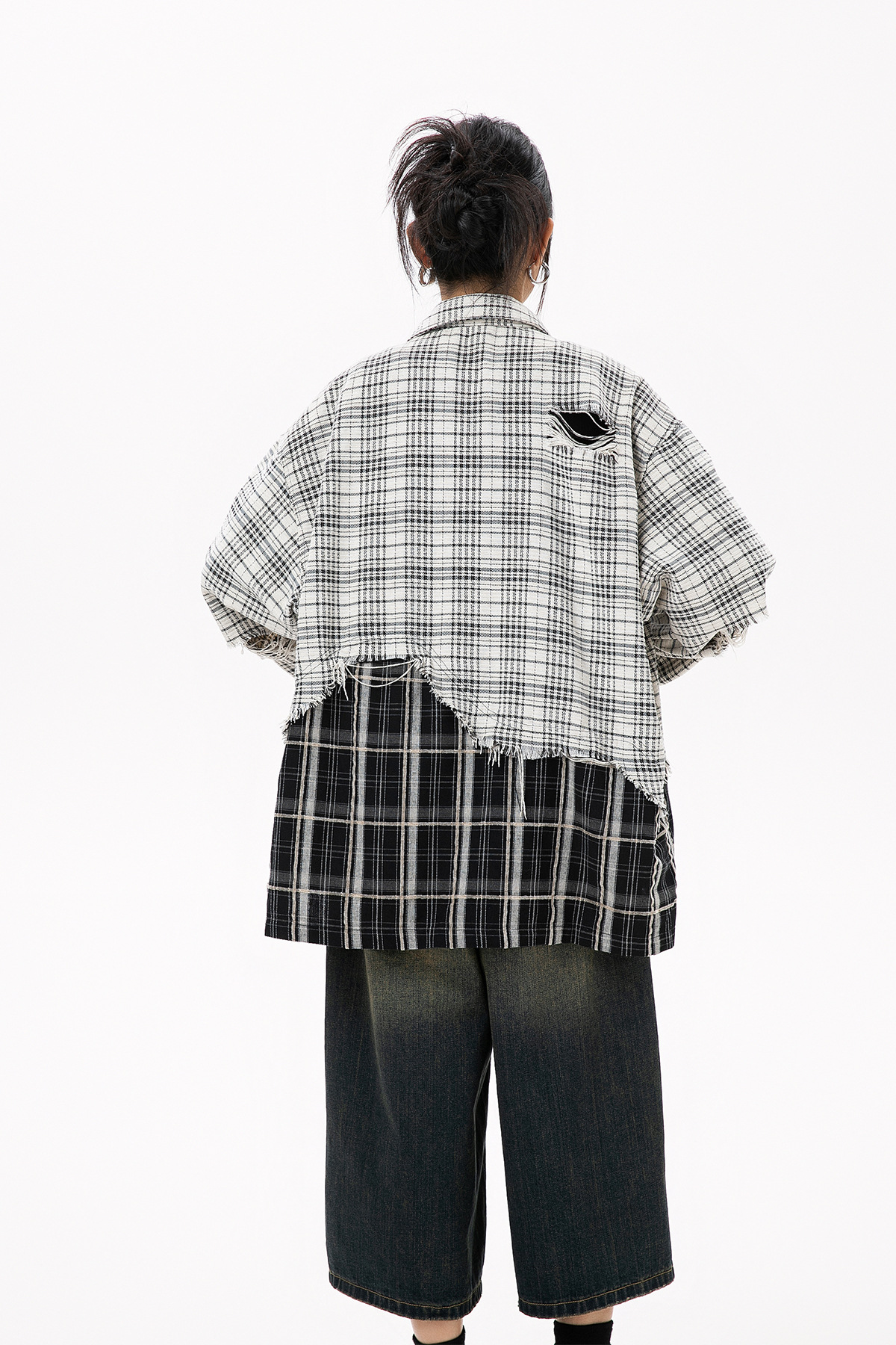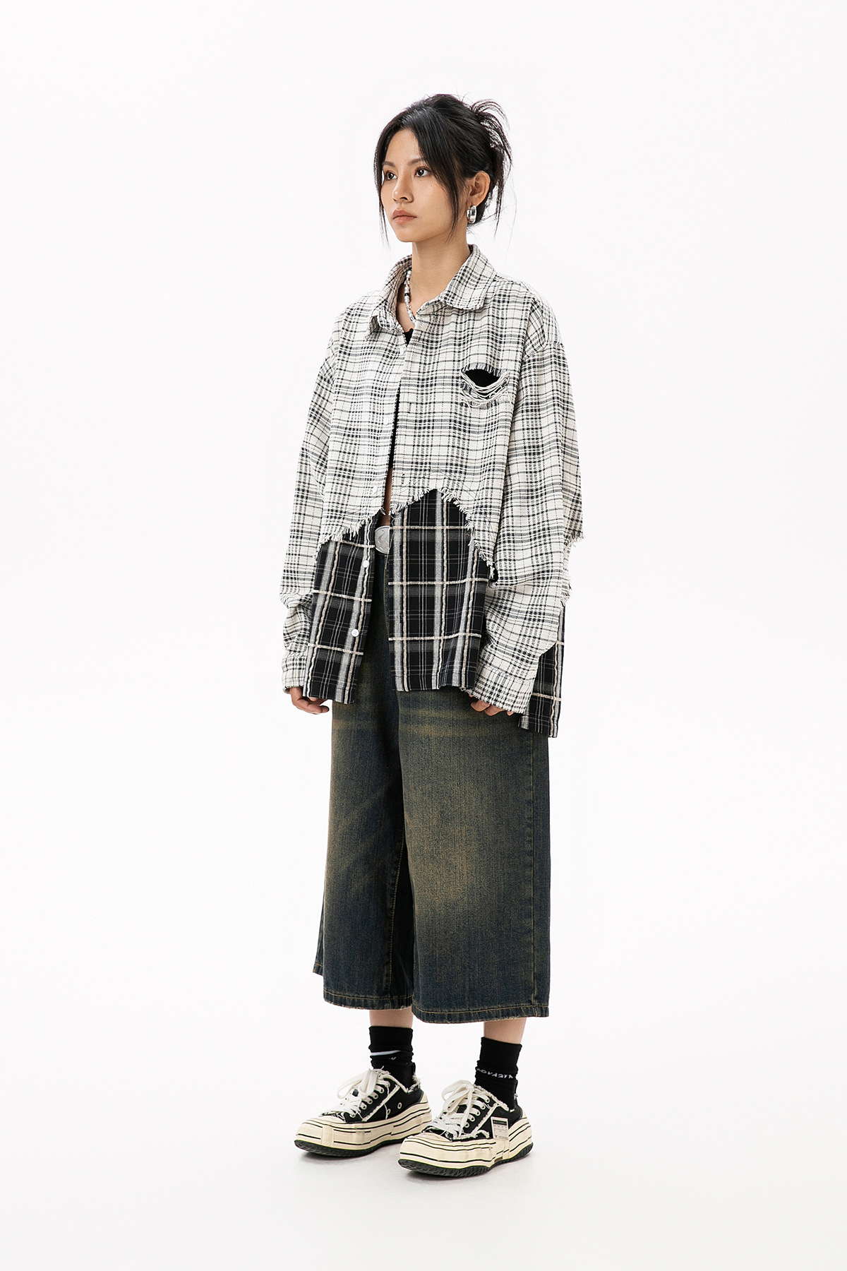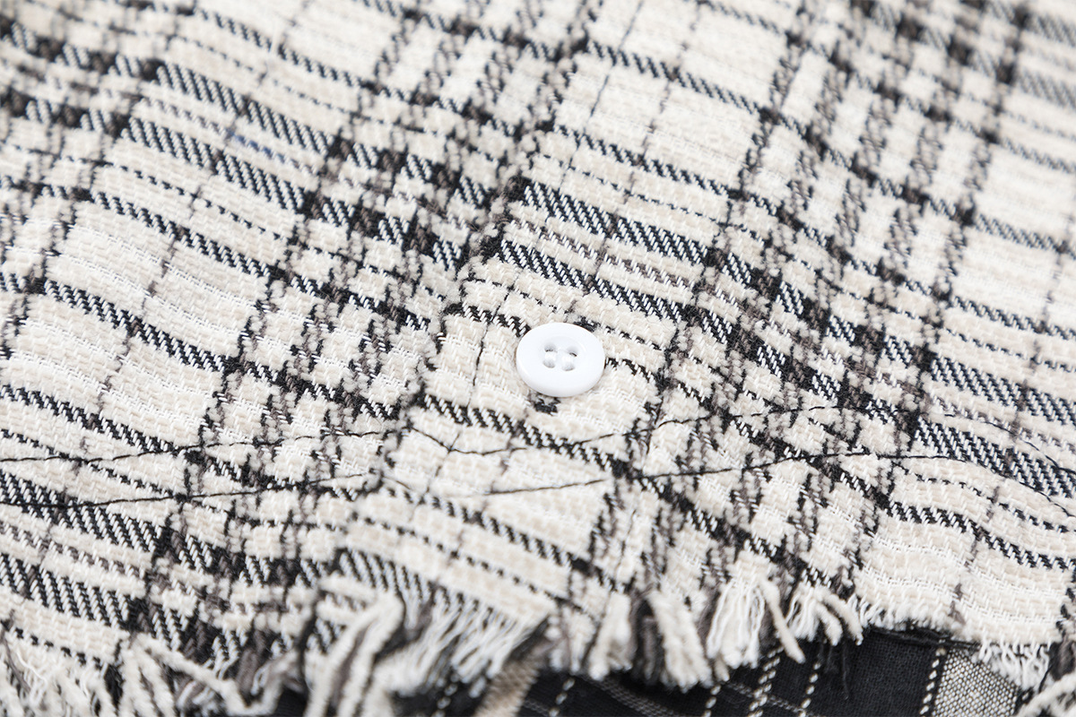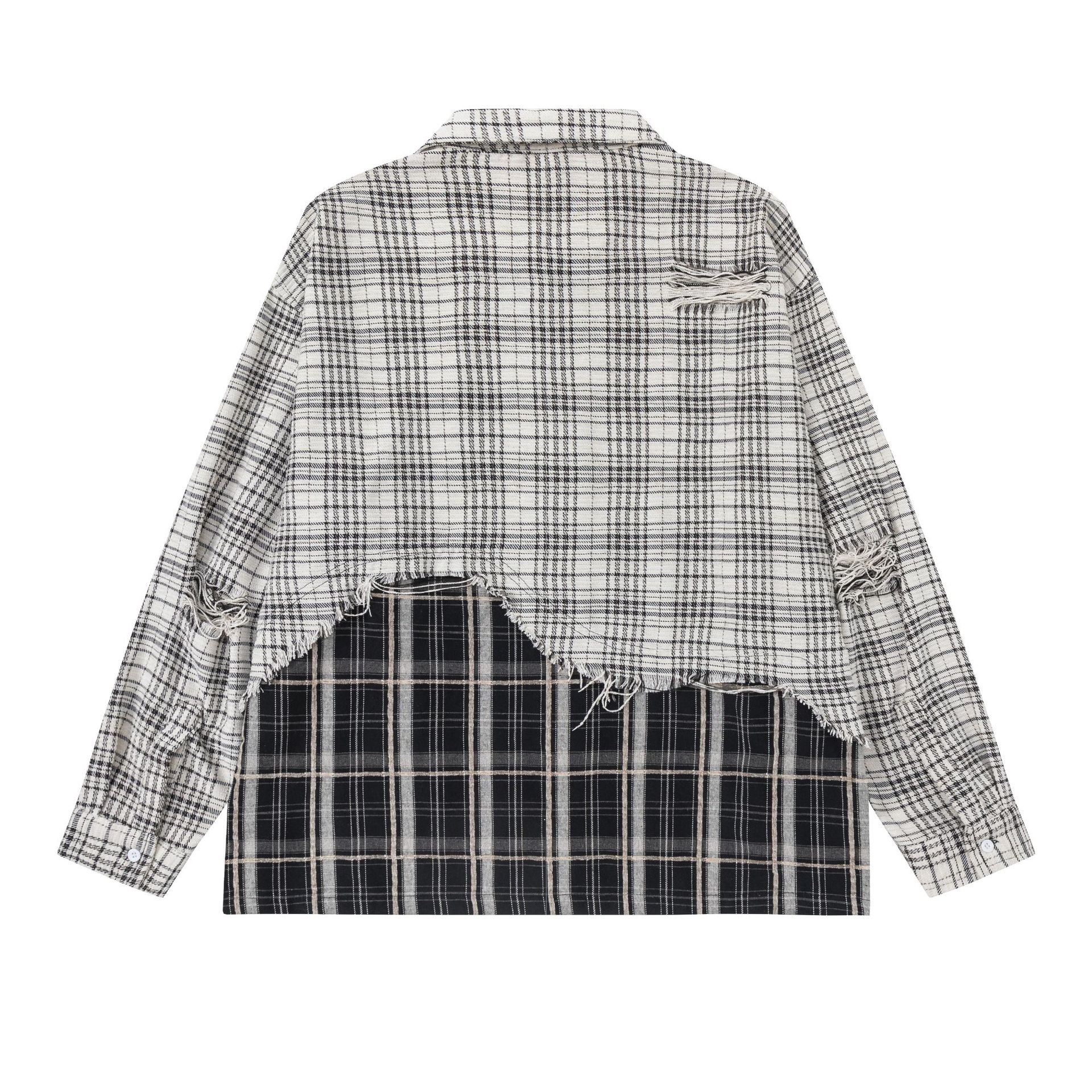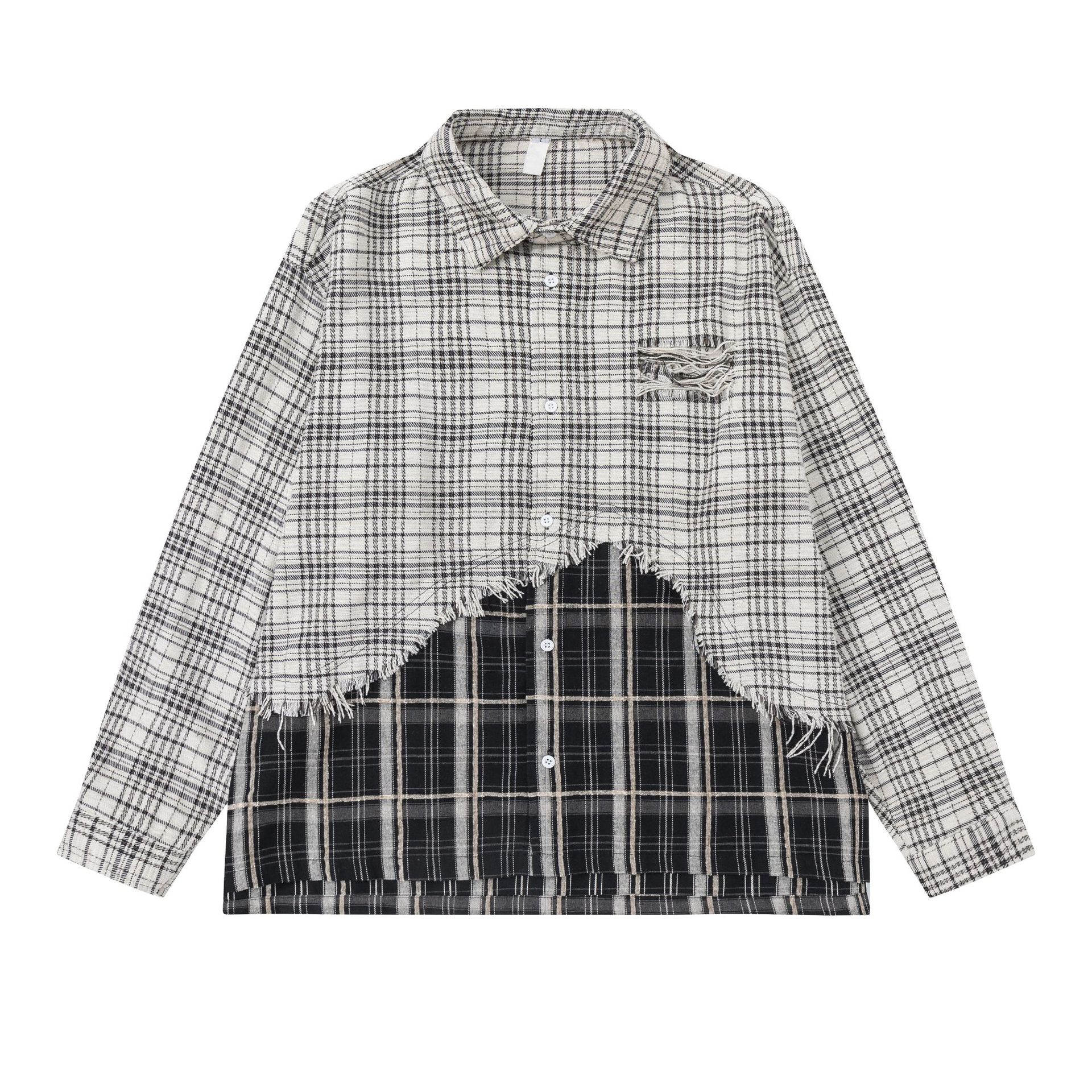 가이쿠 남성복 2026 신상 일본풍 빈티지 스타일 데미지 패치워크 셔닐 체크 셔츠 빈티지 느낌 셔츠