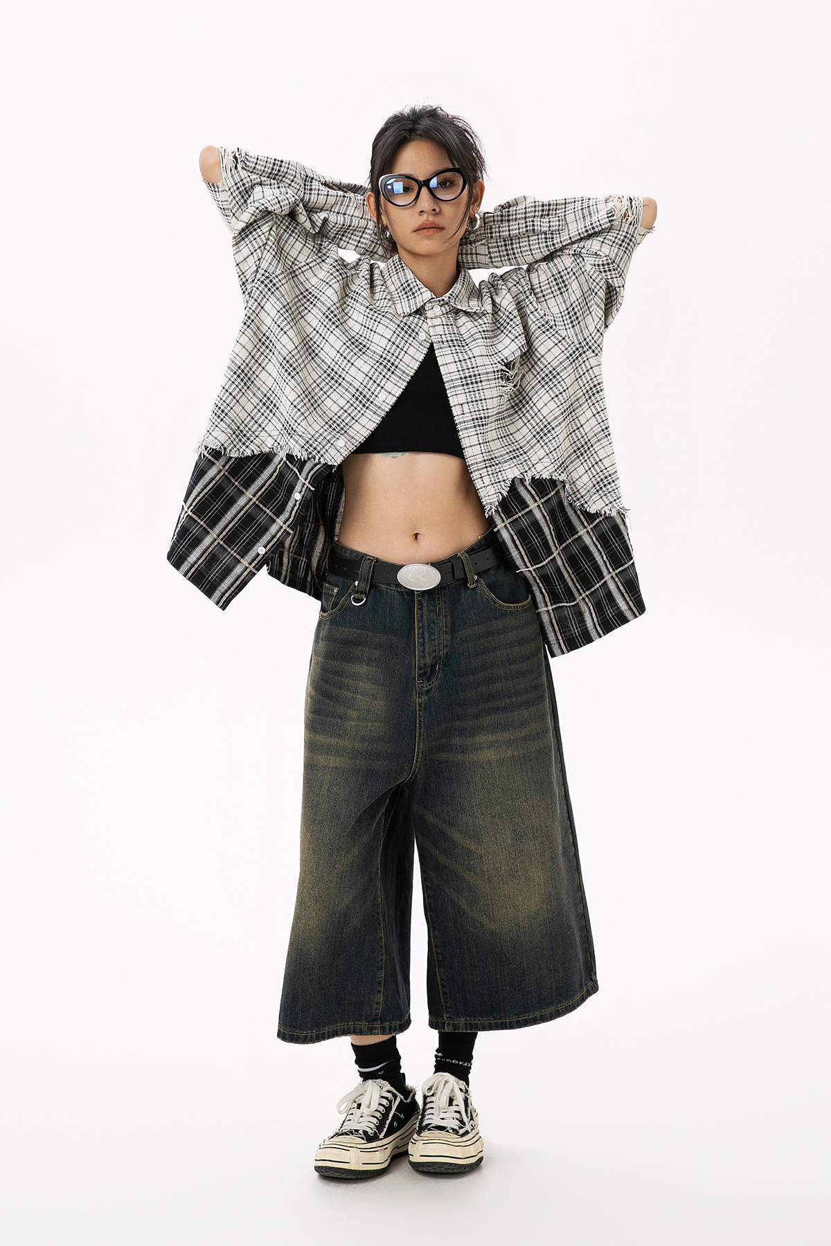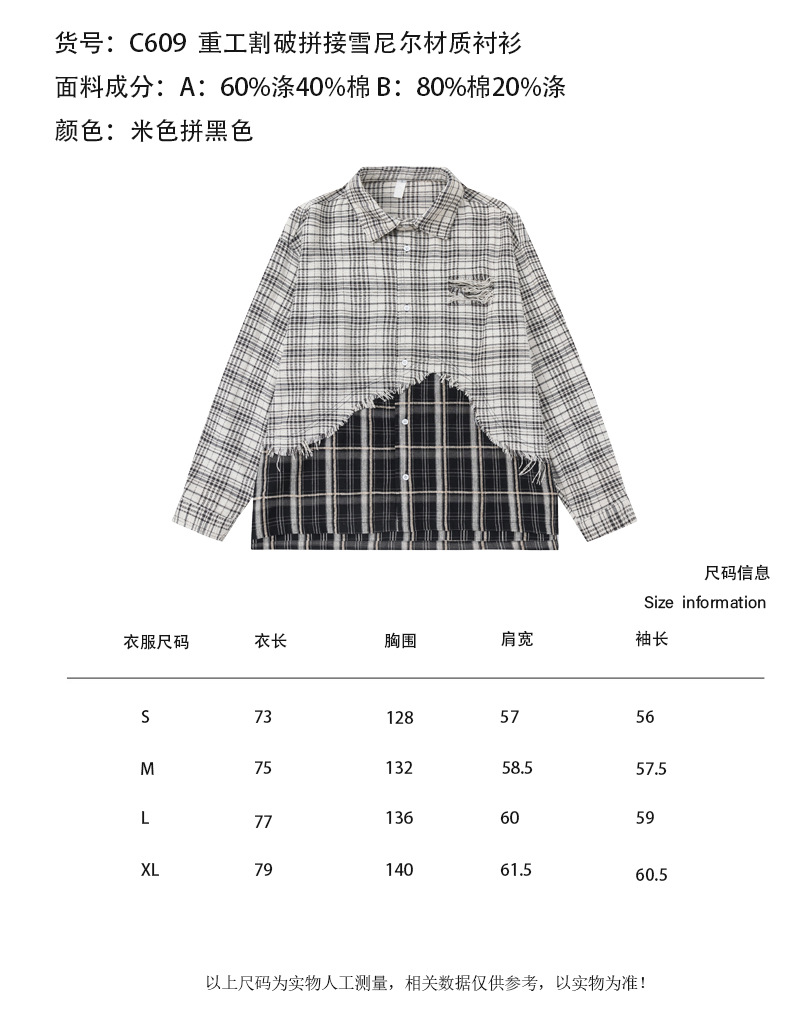 가이쿠 남성복 2026 신상 일본풍 빈티지 스타일 데미지 패치워크 셔닐 체크 셔츠 빈티지 느낌 셔츠스토어 가기