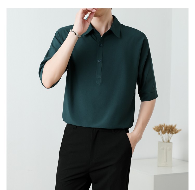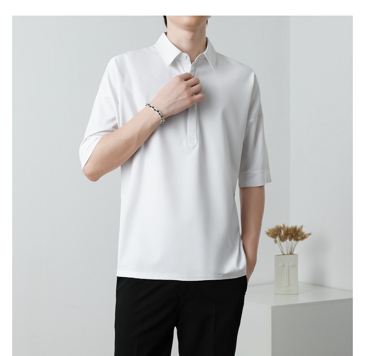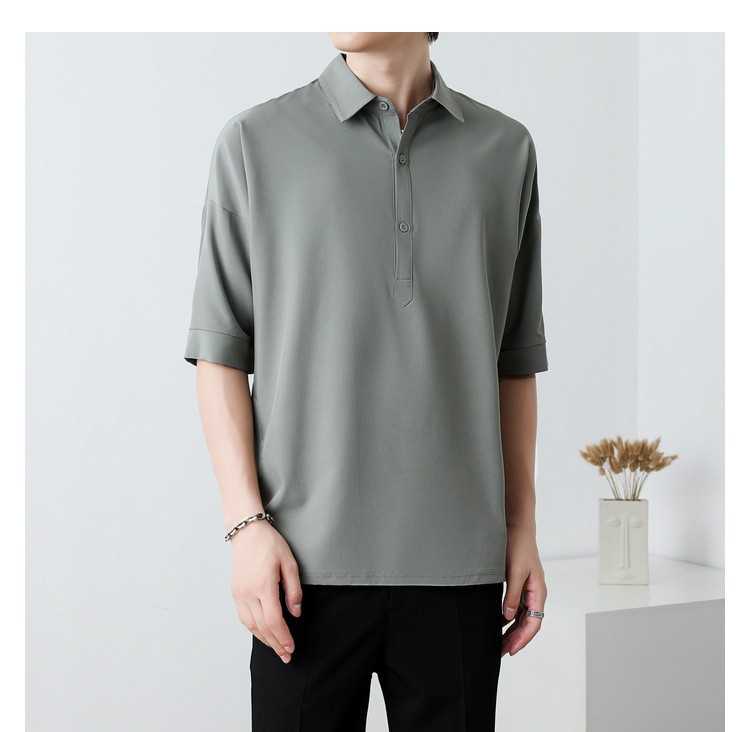 여름 남자 폴로 반팔 셔츠 캐주얼 통기성 옷깃 폴 셔츠 슬림 핏 올 매치 레트로 티셔츠 남자 최고 트렌디스토어 가기