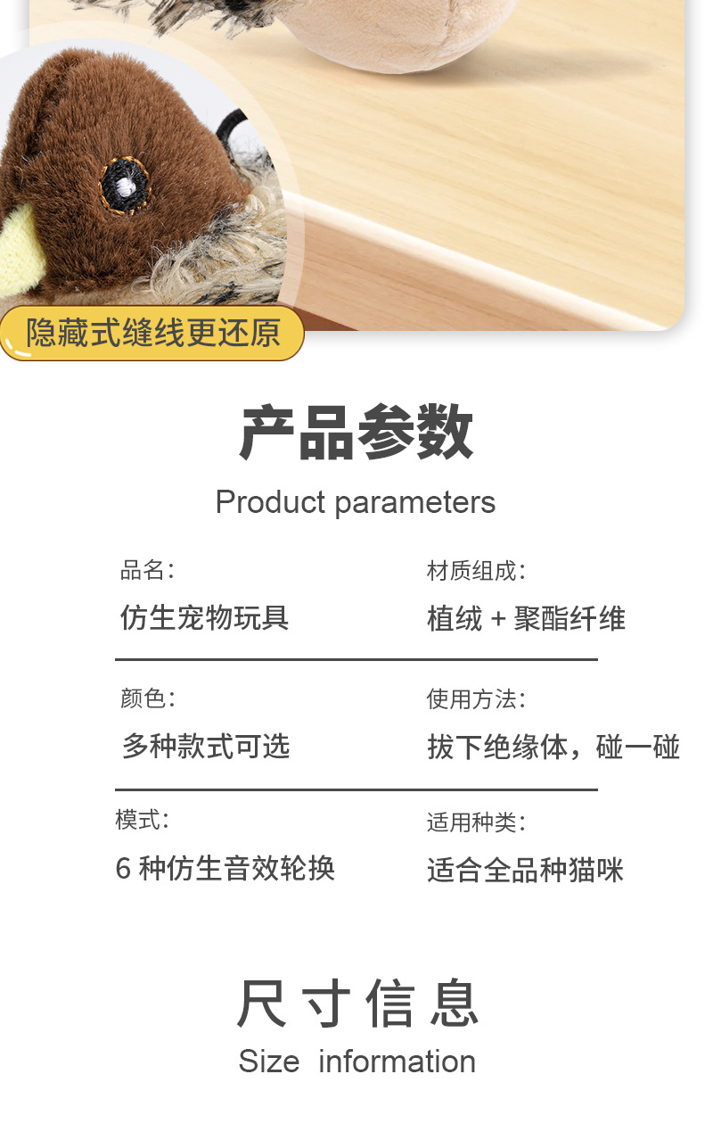 고양이 장난감 터치 유도 사운드 웃긴 고양이 스틱 봉제 시뮬레이션 새 어금니 셀프-안녕 우울한 아마존 폭발