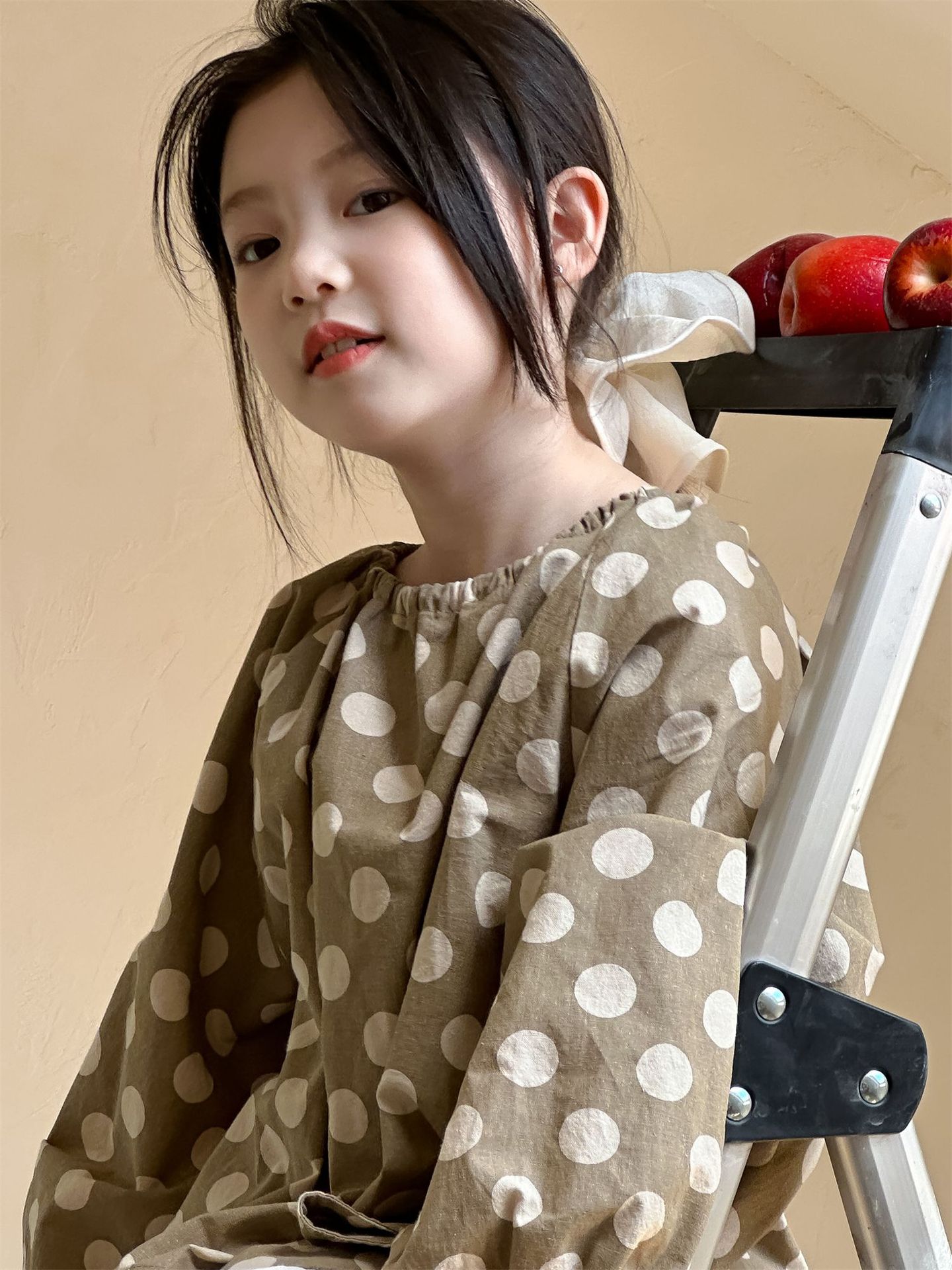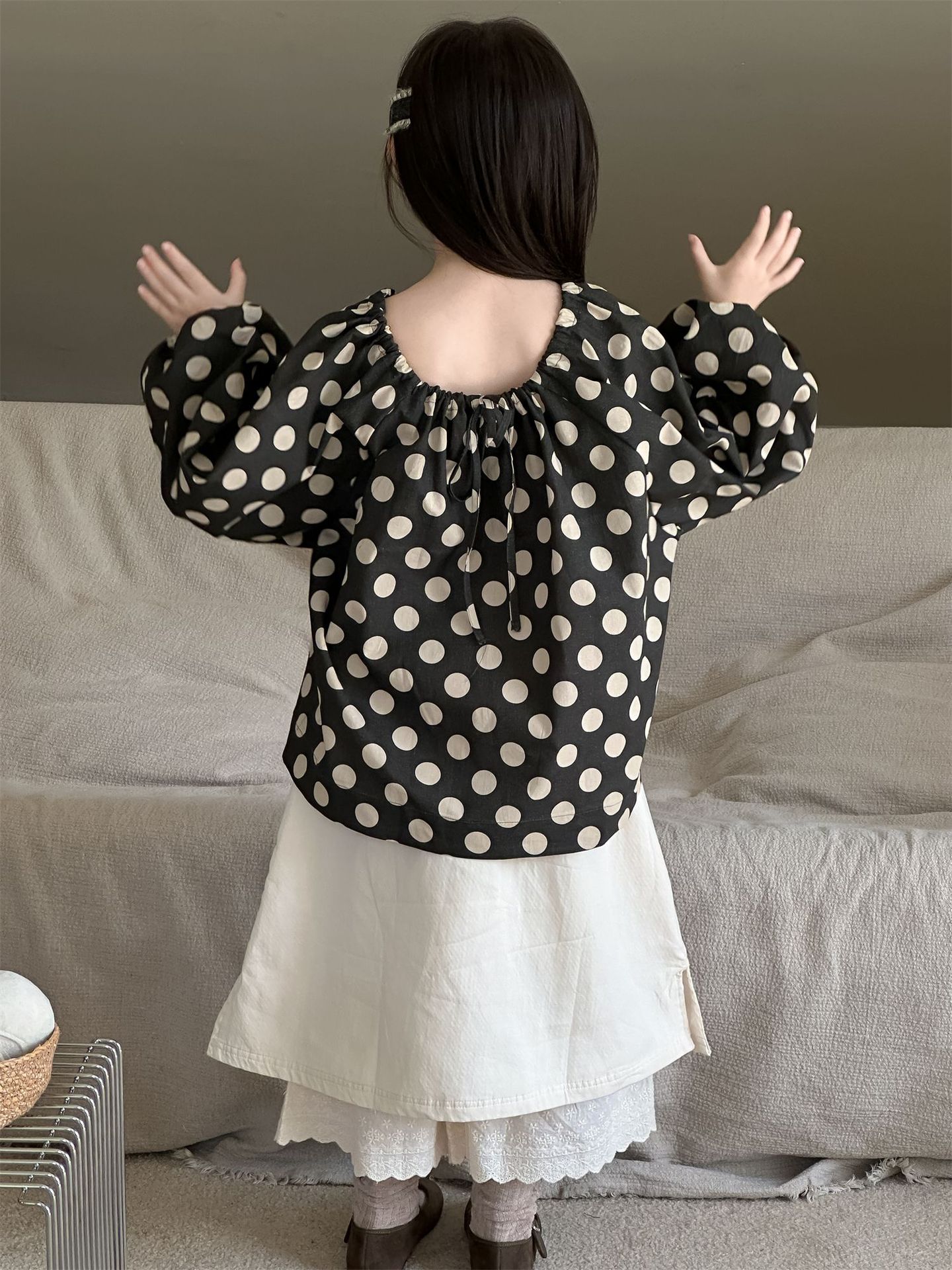꽃과 찾기 2024 가을 새 소녀의 가을 한류 포인트 스타일라인 인형 셔츠 올매치 어린이 캐주얼 탑스토어 가기