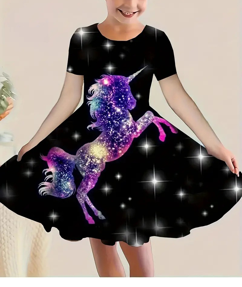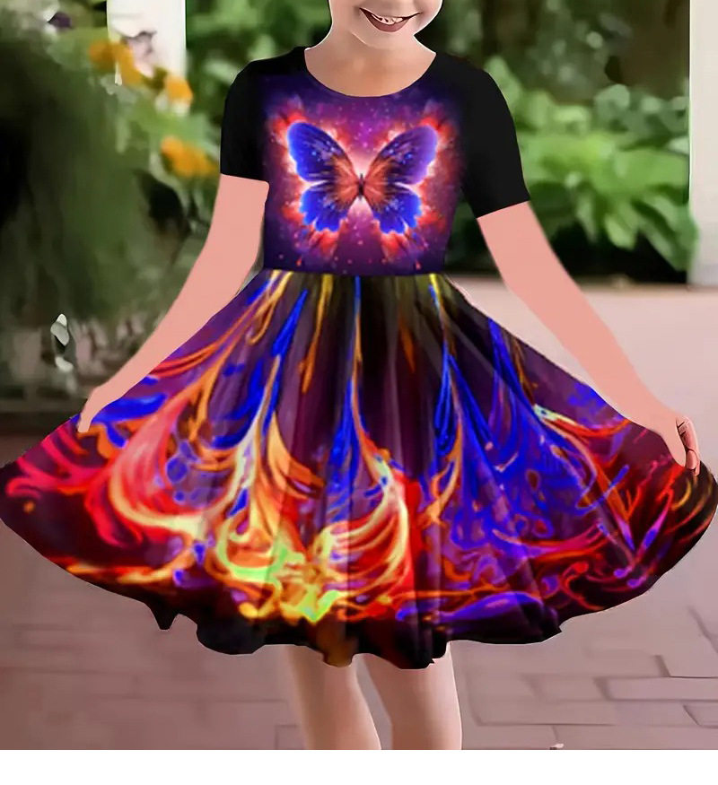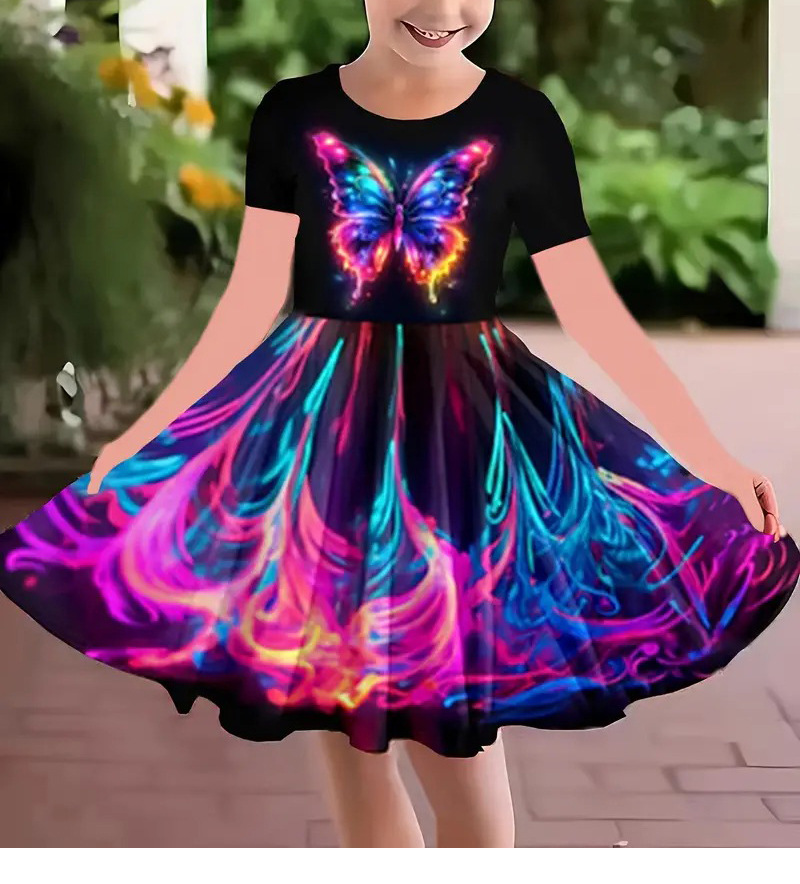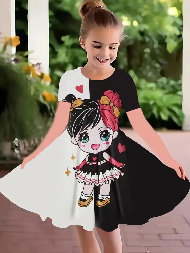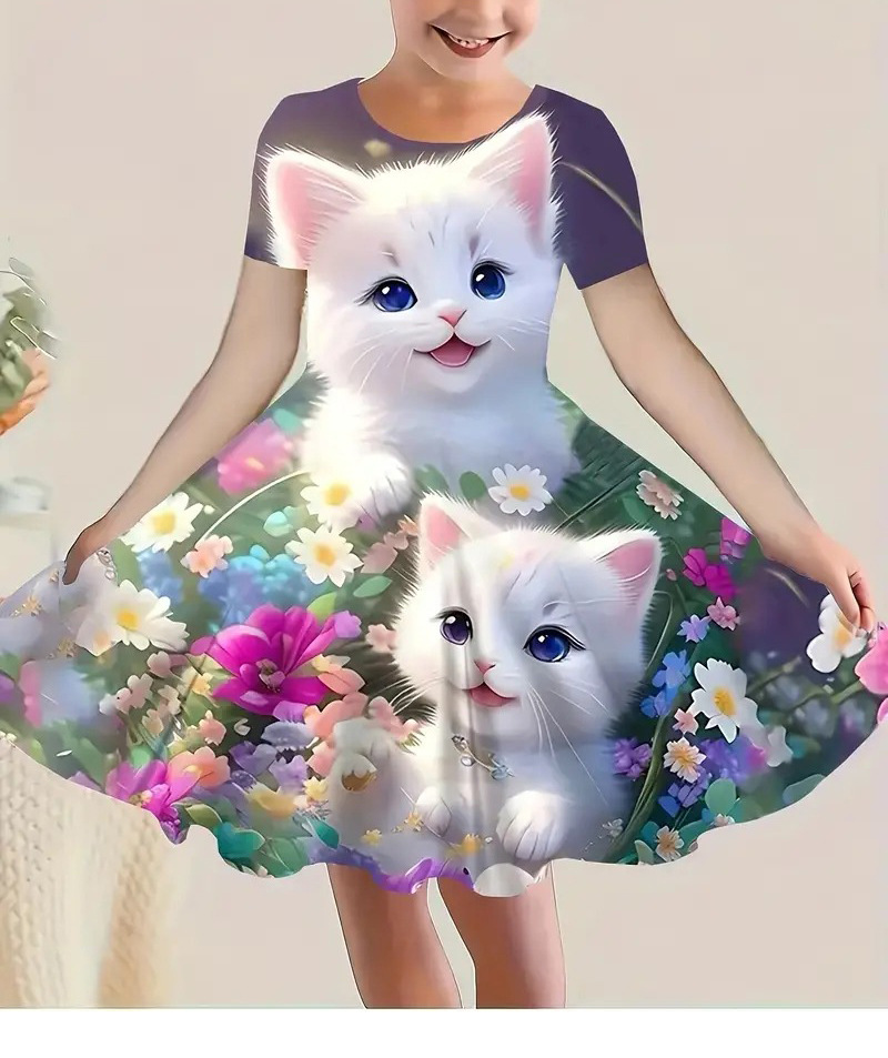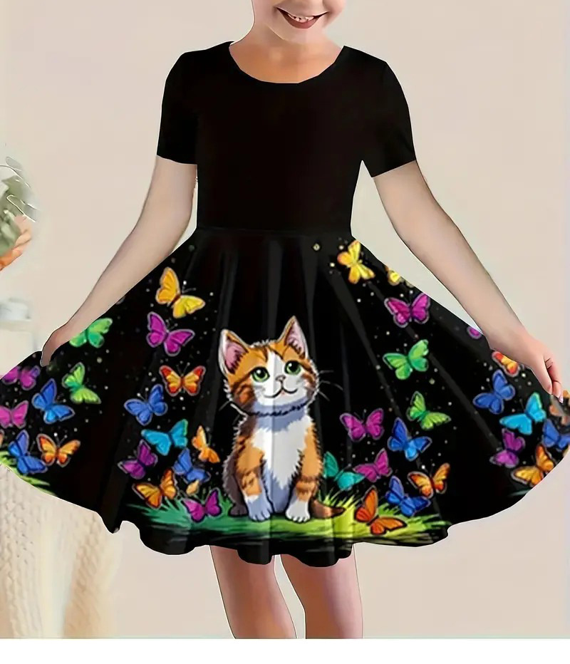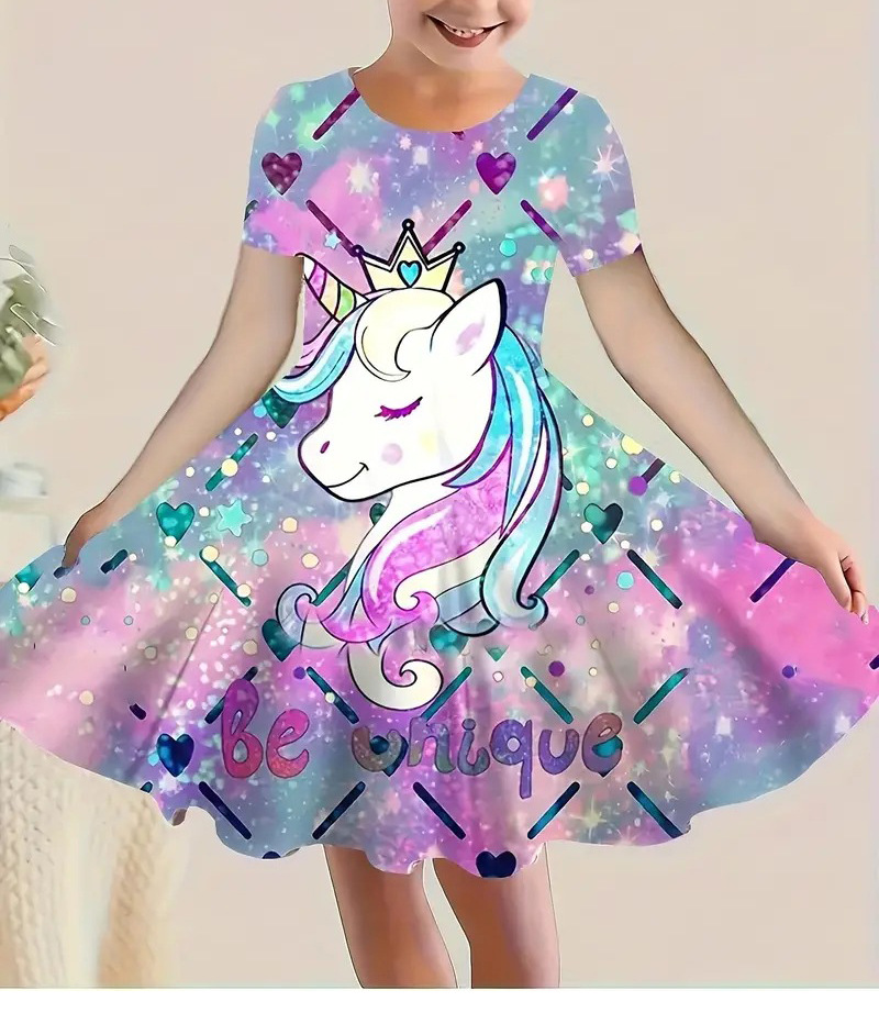 소녀 원피스 여름 새로운 짧은 소매 다채로운 만화 인쇄 귀여운 캐주얼 공주 원피스 GA02스토어 가기