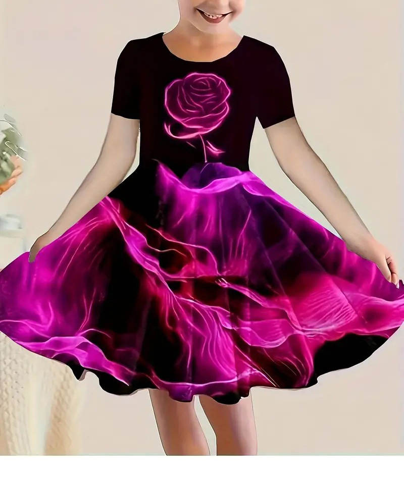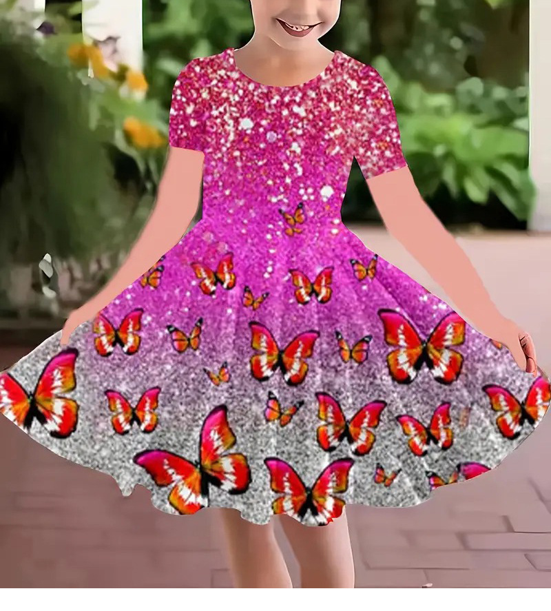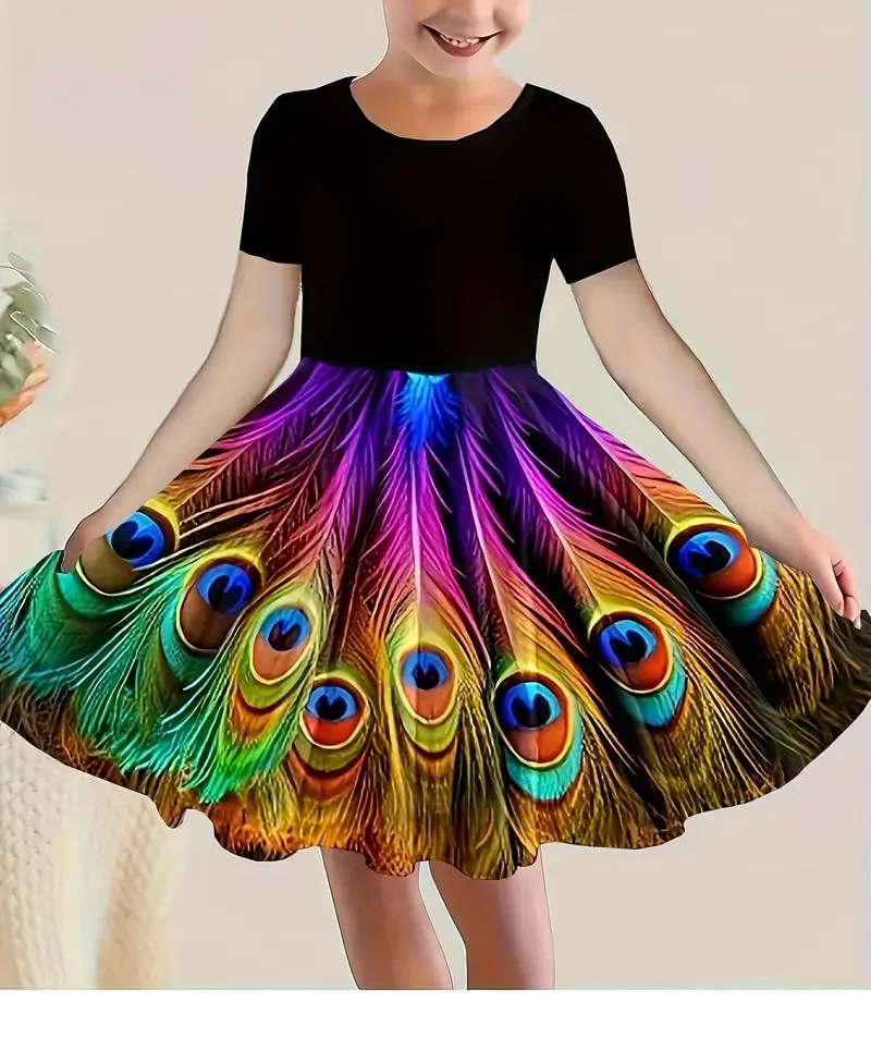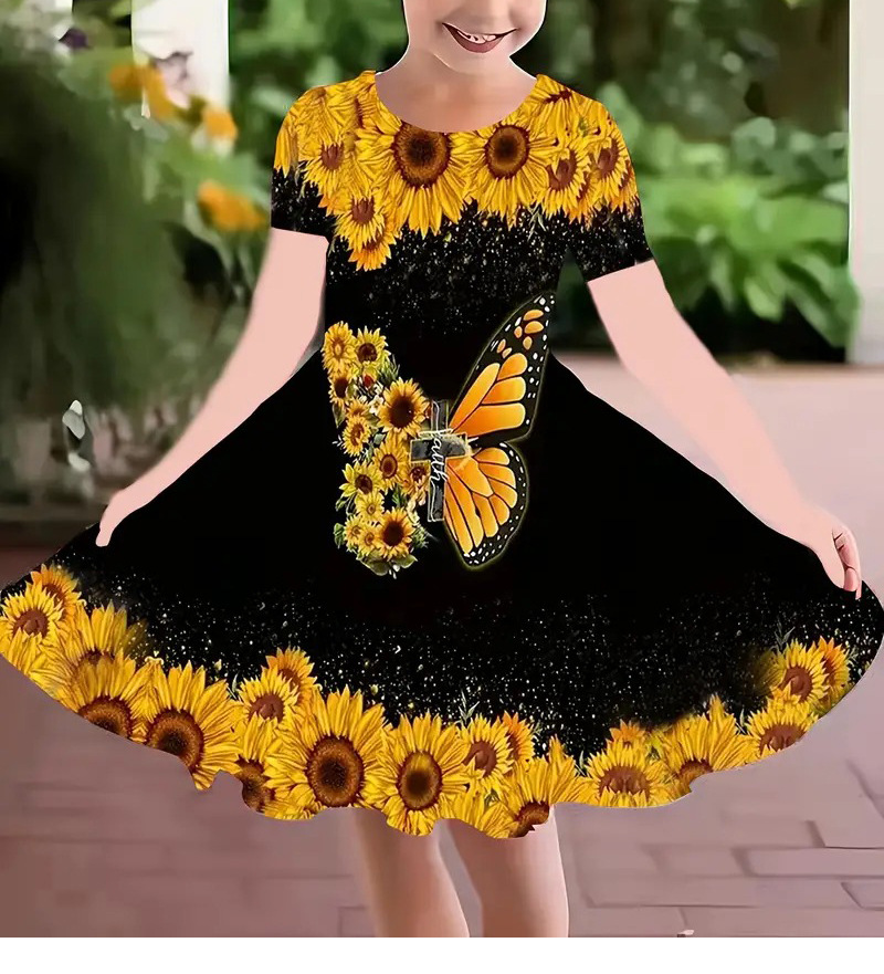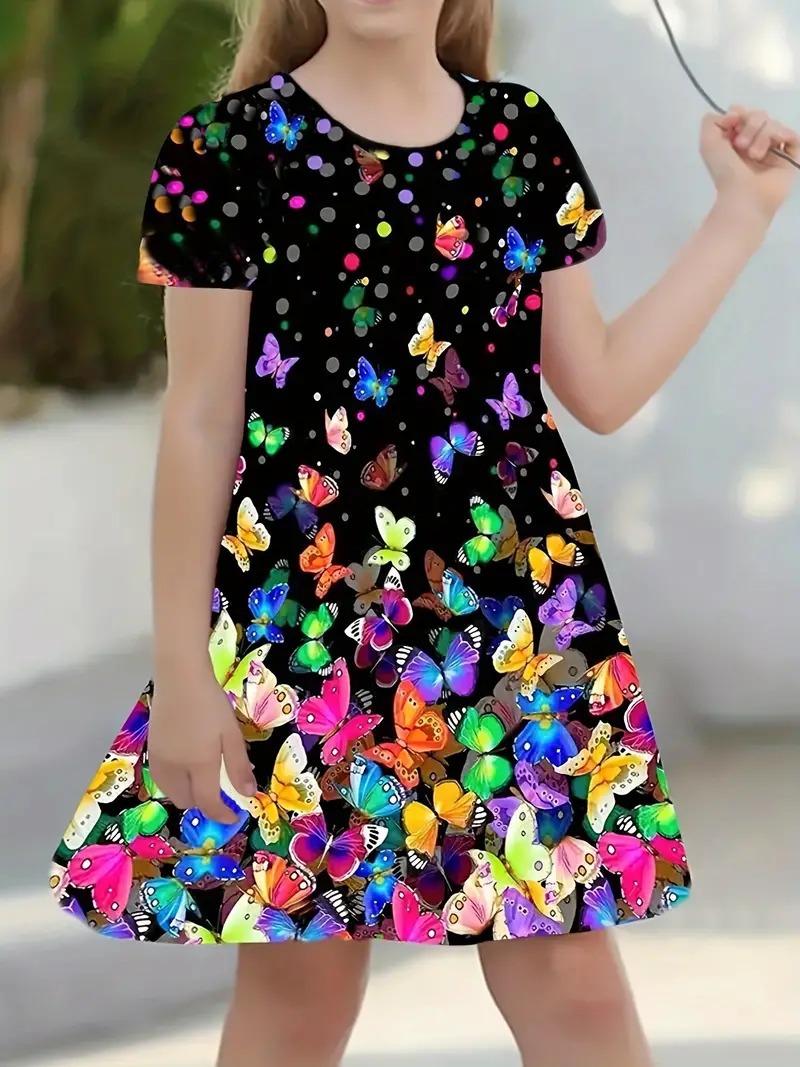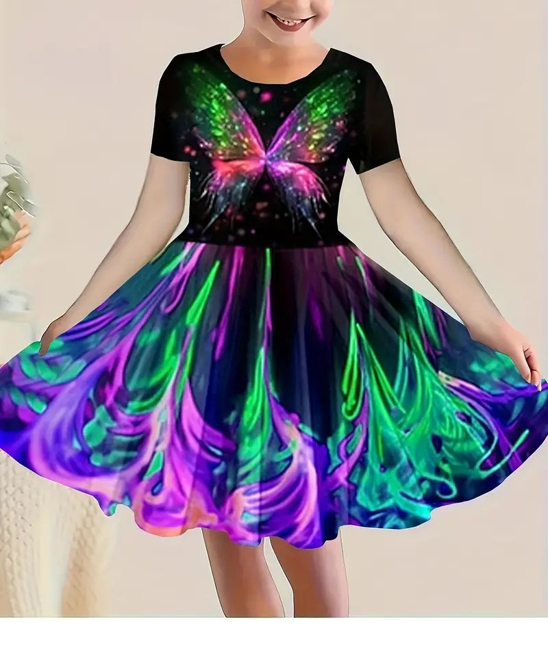 소녀 원피스 여름 새로운 짧은 소매 다채로운 만화 인쇄 귀여운 캐주얼 공주 원피스 GA02스토어 가기