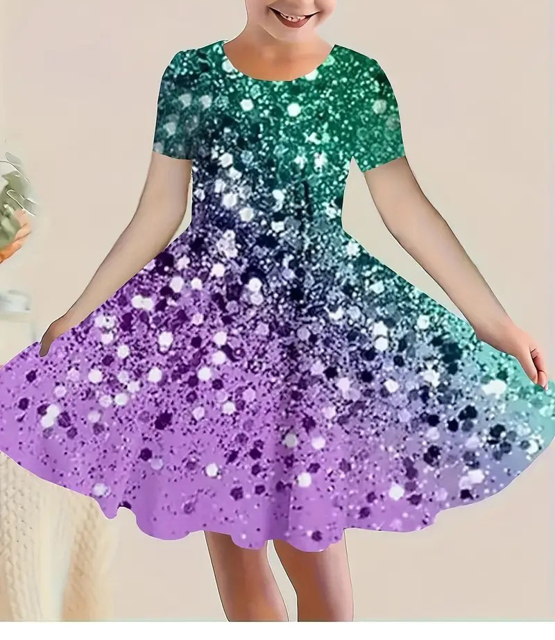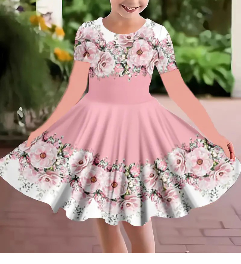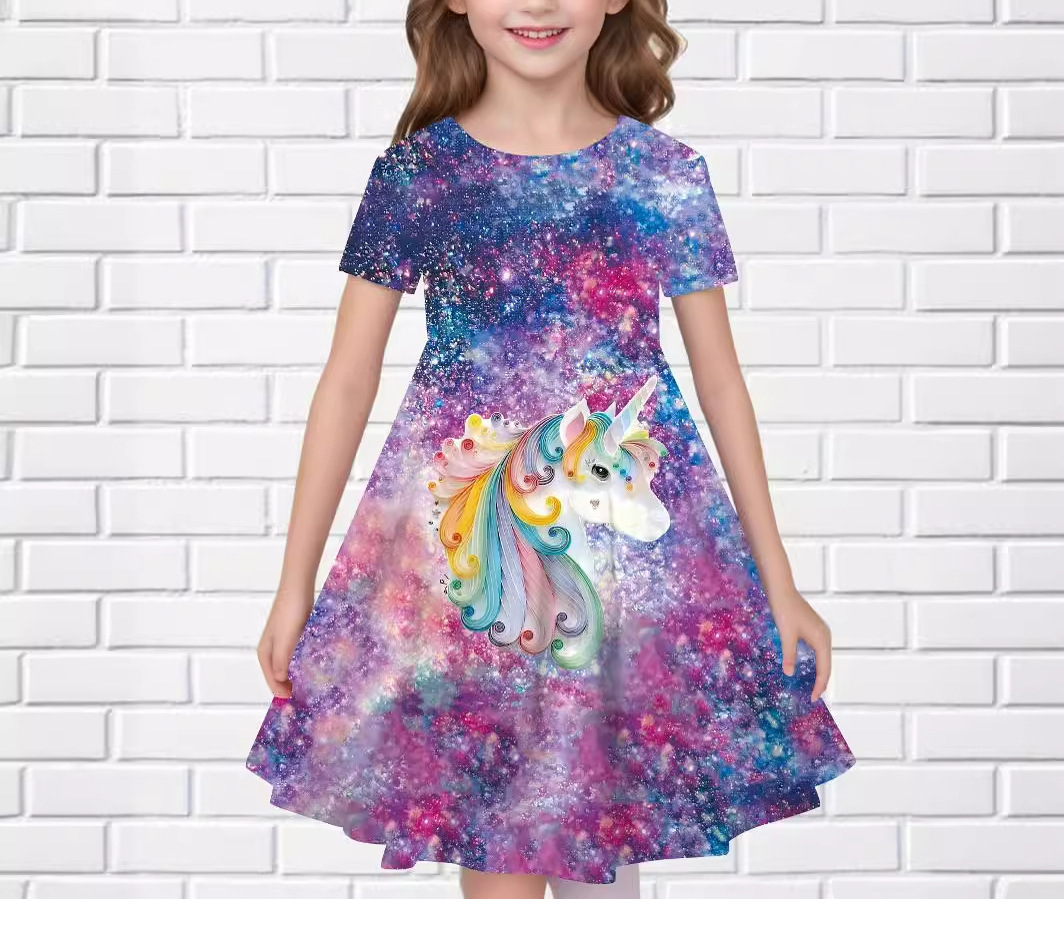 소녀 원피스 여름 새로운 짧은 소매 다채로운 만화 인쇄 귀여운 캐주얼 공주 원피스 GA02