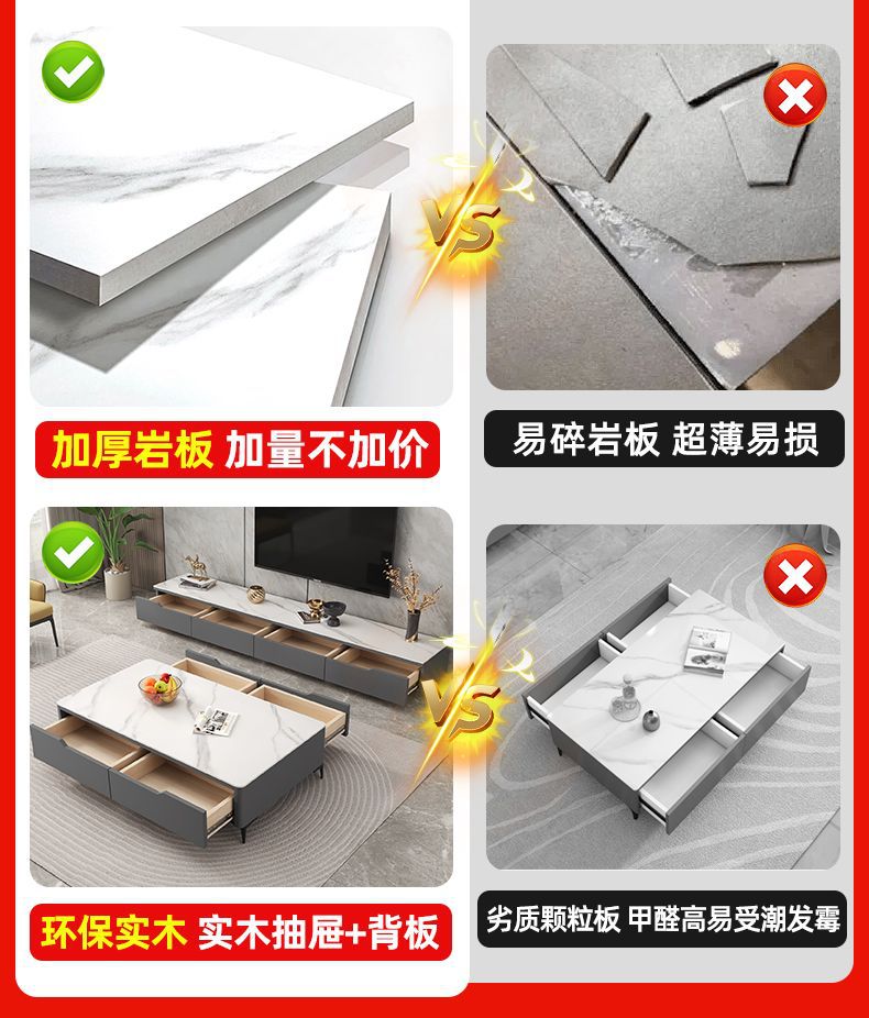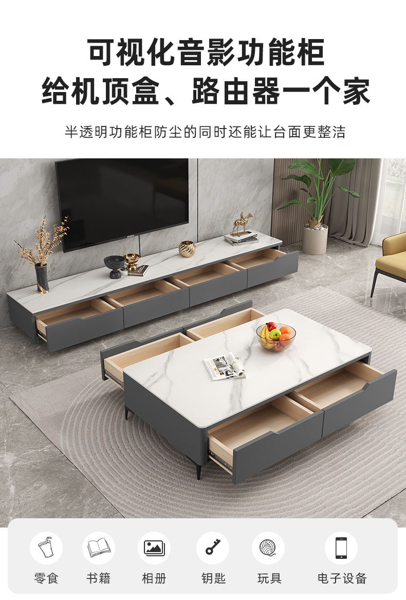 새로운 록 플레이트 라이트 럭셔리 TV 캐비닛 커피 테이블 조합 거실 작은 아파트 커피 테이블 솔리드 우드 TV 캐비닛 조합 커피 테이블스토어 가기