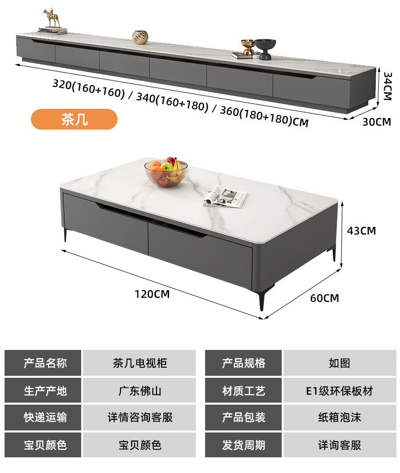 • 【 1.8m 】TV 캐비닛 + 커피 테이블 조합 - 두꺼운 암석판