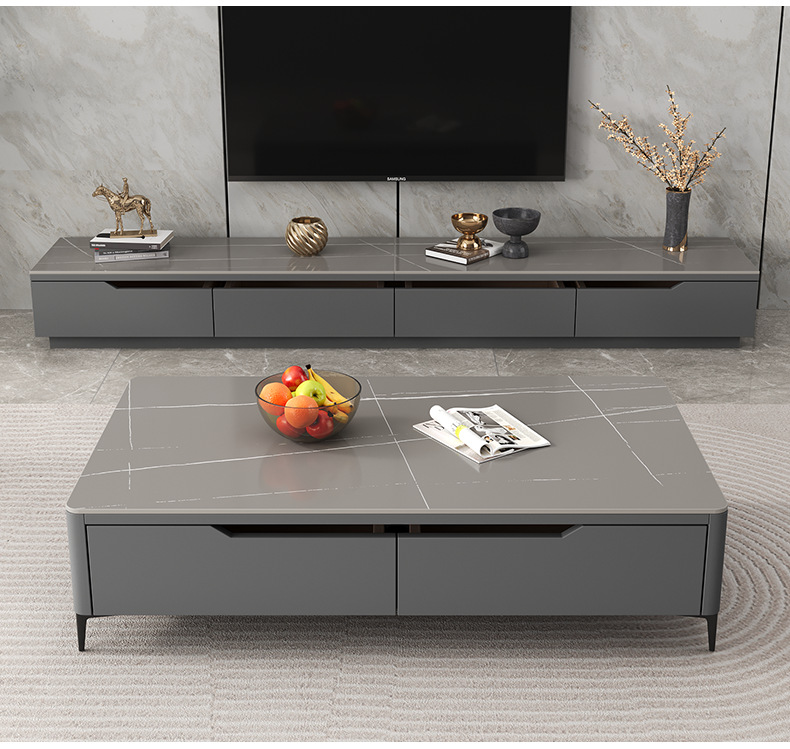 새로운 록 플레이트 라이트 럭셔리 TV 캐비닛 커피 테이블 조합 거실 작은 아파트 커피 테이블 솔리드 우드 TV 캐비닛 조합 커피 테이블