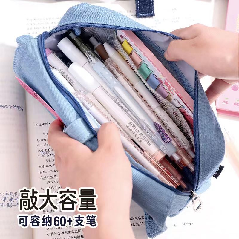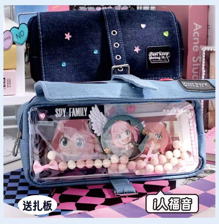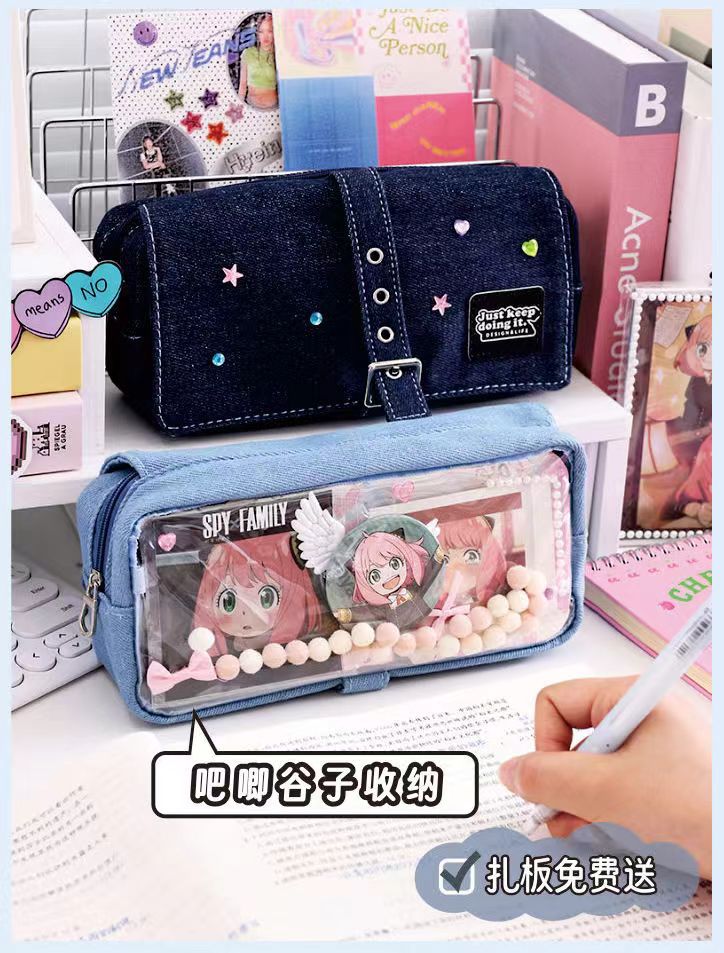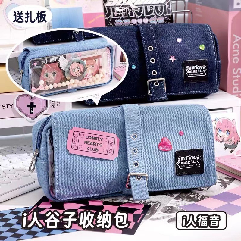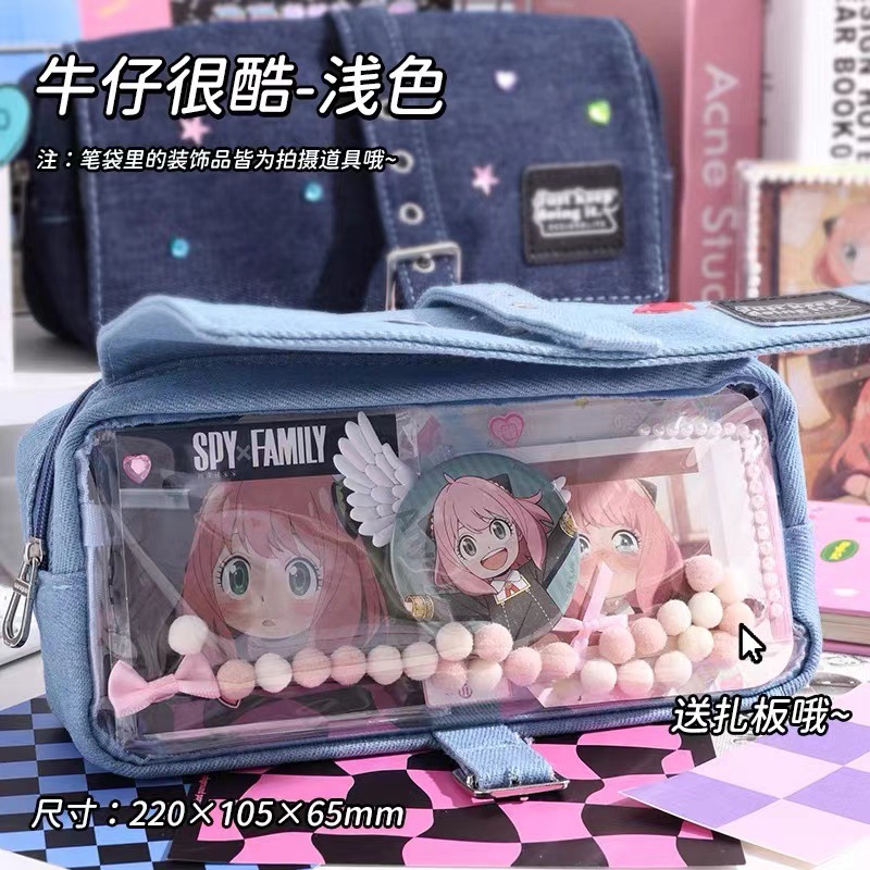 푸른 과일 데님 사회 공포 통증 가방 연필 케이스 투명 기장 음식 양 통증 층 대용량 저장 껍질 2 차원 연필 케이스스토어 가기