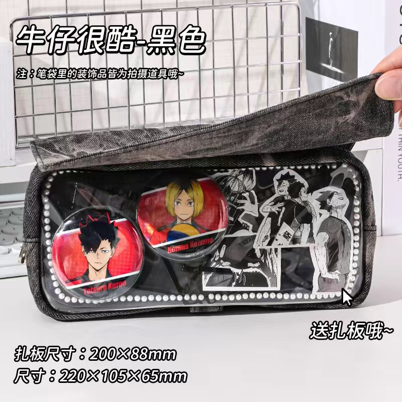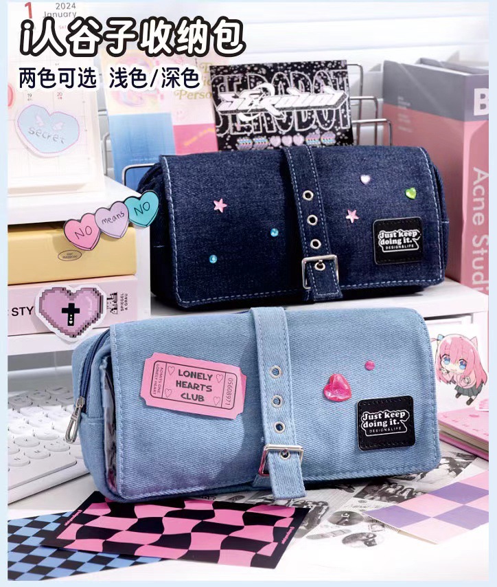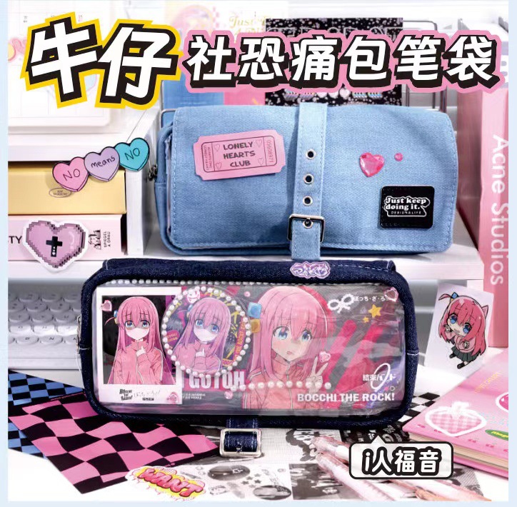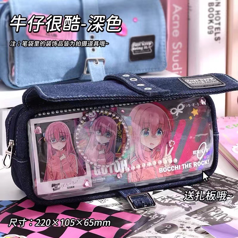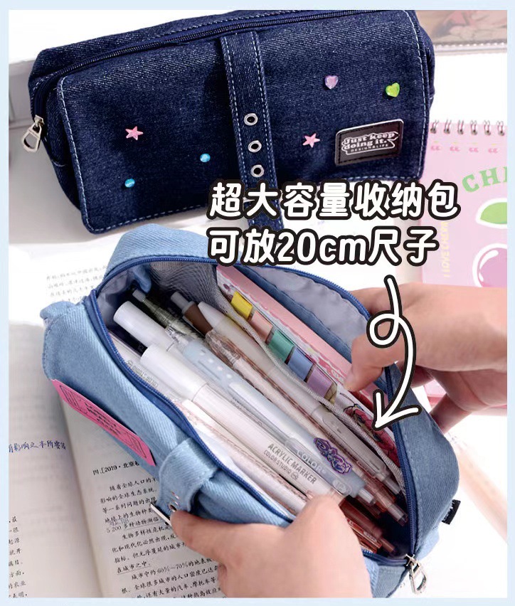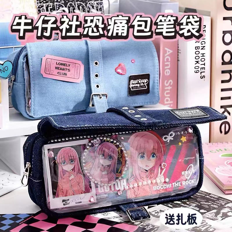 푸른 과일 데님 사회 공포 통증 가방 연필 케이스 투명 기장 음식 양 통증 층 대용량 저장 껍질 2 차원 연필 케이스스토어 가기
