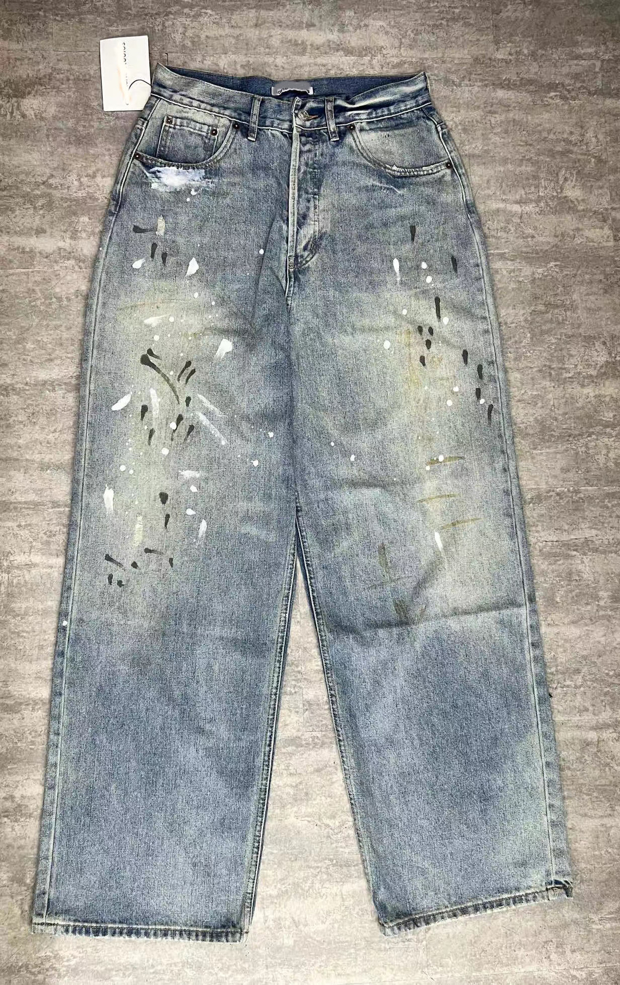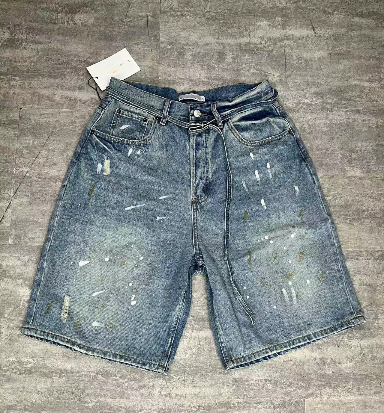 아메리칸 스타일 트렌디 브랜드 AC 하이 스트리트 트렌디 브랜드 빈티지 올매치 루즈 리핑 올드 핸드 그린 청바지 남성 데님 반바지스토어 가기