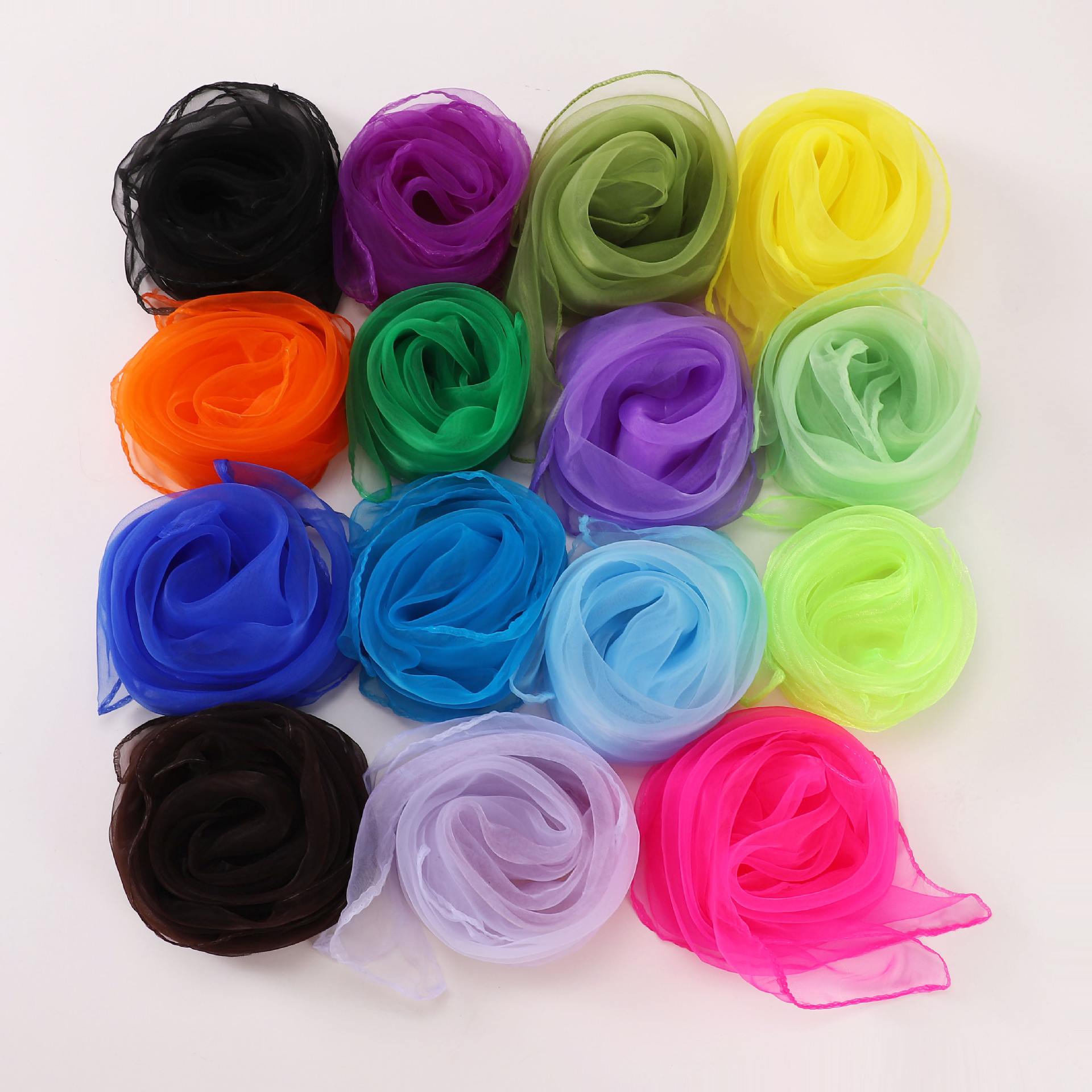 단색 쉬폰 댄스 컬러 작은 실크 스카프 선원 댄스 손수건 거즈 국경 아마존 조기 교육 작은 실크 스카프
