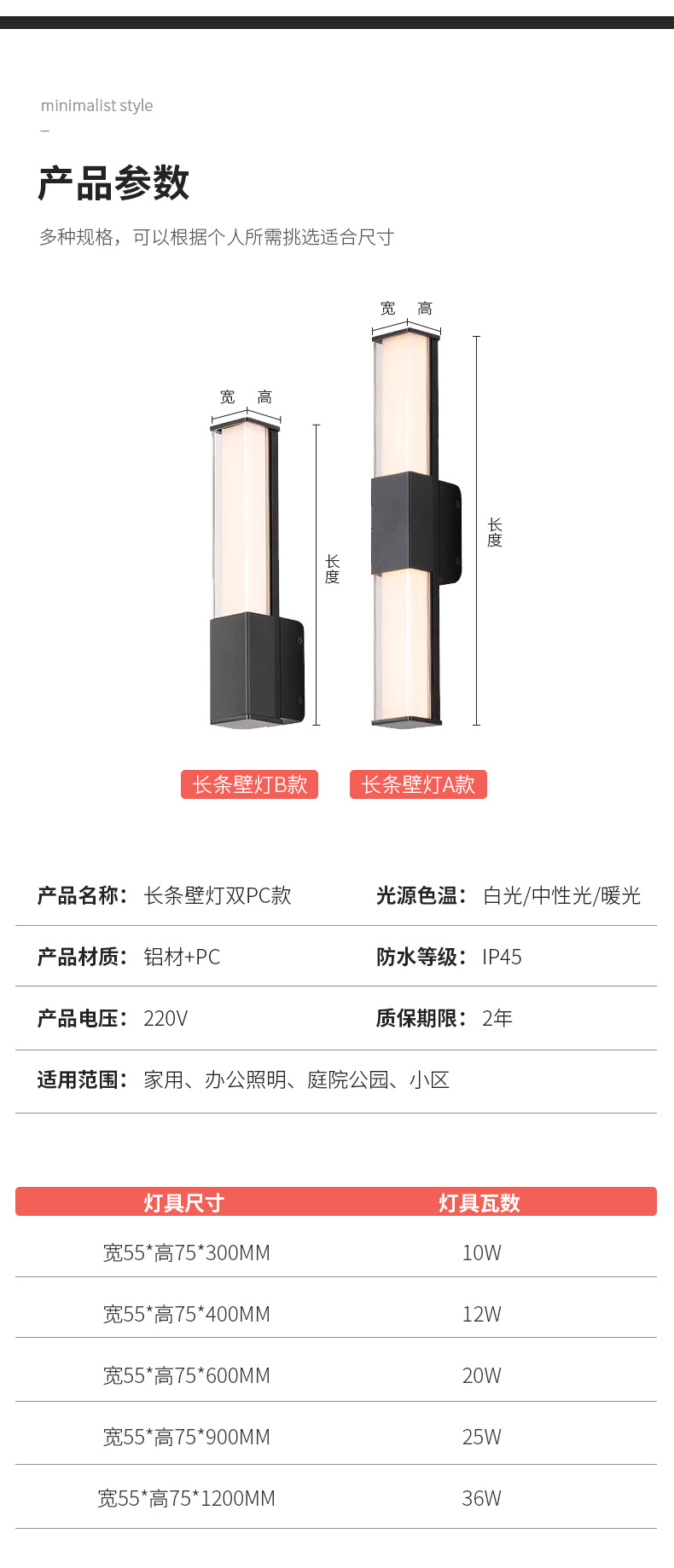 led长条壁灯现代极简庭院灯别墅大门口酒店走廊阳台户外防水壁灯