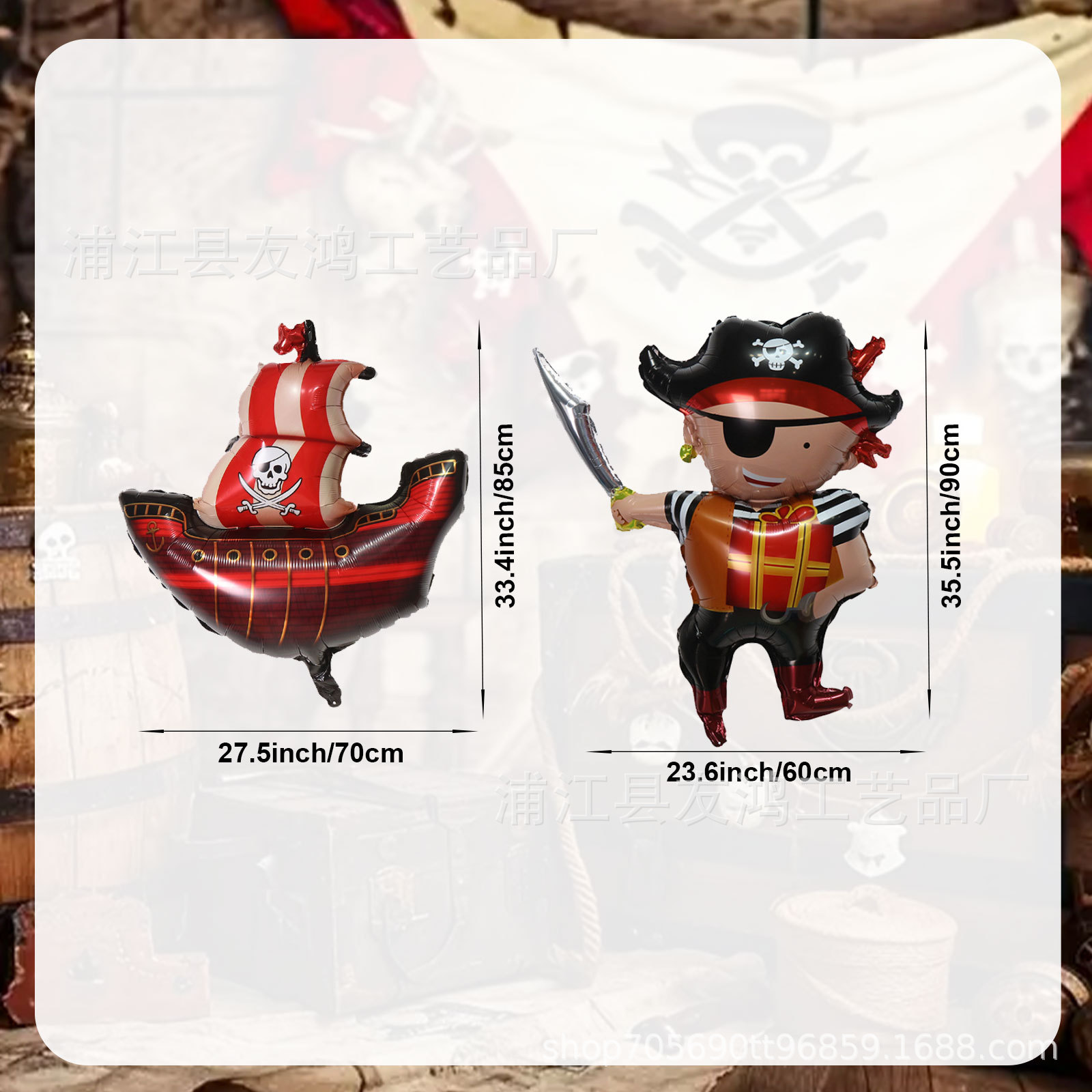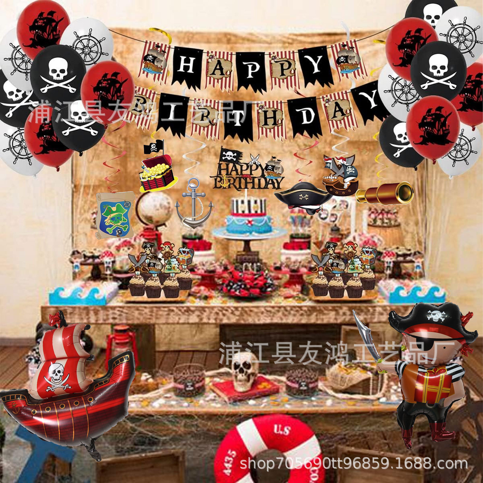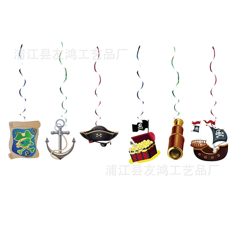 해적 생일 파티 테마 장식 나선형 풀 플래그 풍선 케이크 삽입 파티 용품 알루미늄 호일 풍선 세트스토어 가기