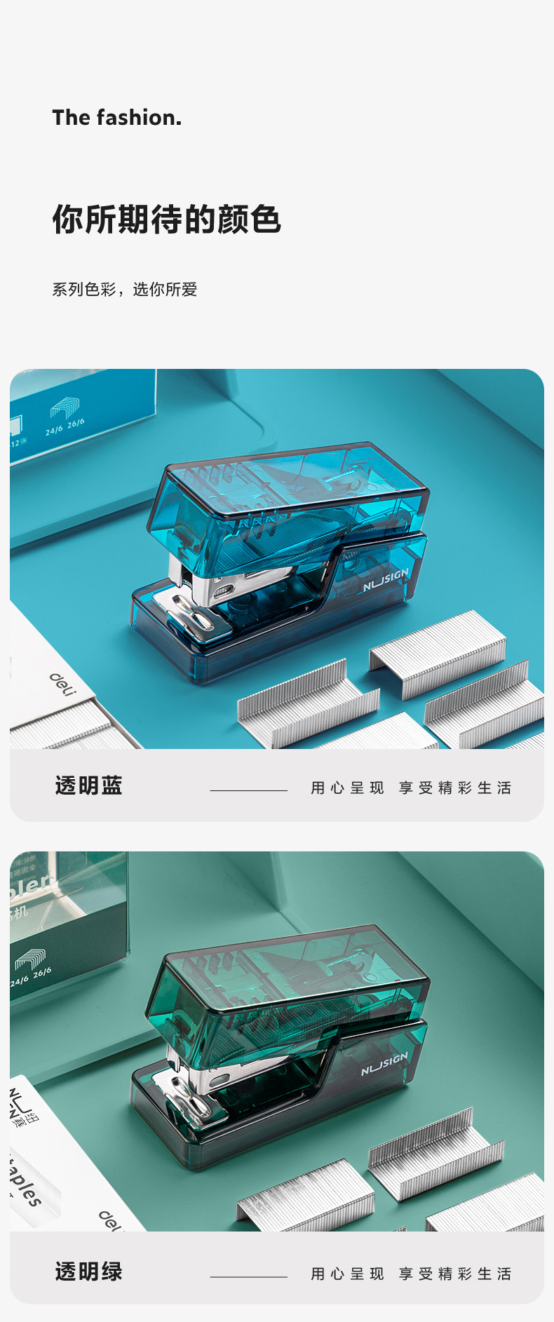 • Nusai NS083F 투명 미니 스테이플러 (혼합)(1 스테이플러 1 손톱/상자)-색상 혼합 랜덤