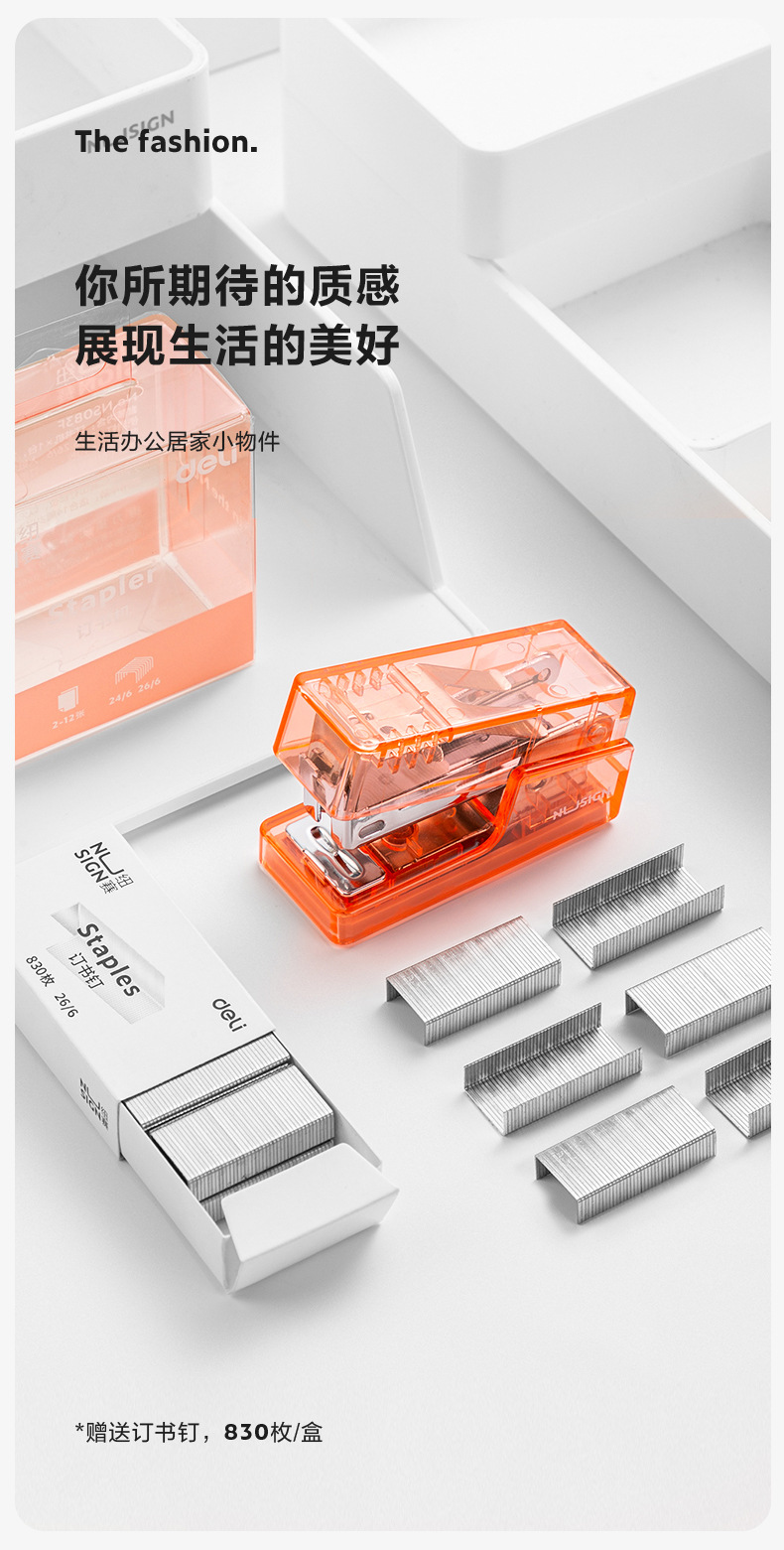 • Nusai NS083F 투명한 미니 스테이플러 (투명한 오렌지)(1 개의 스테이플러 1 상자 손톱/상자)