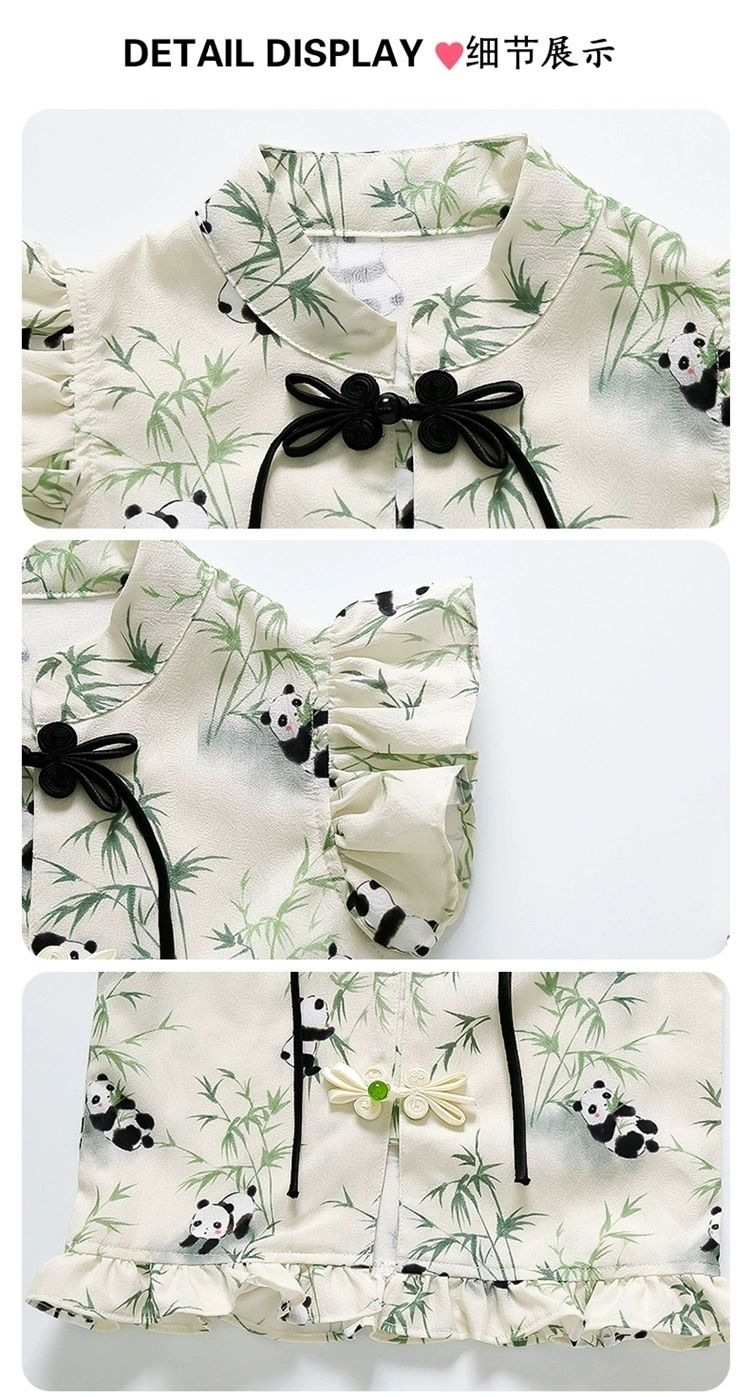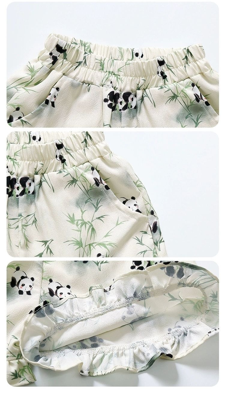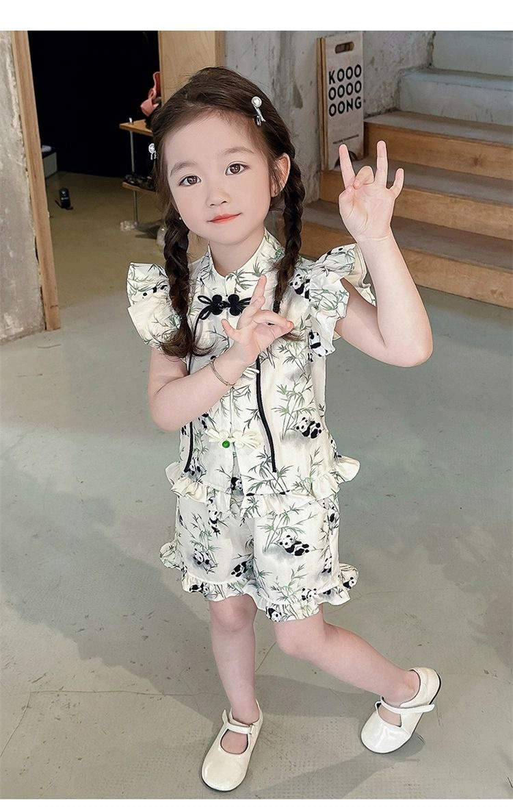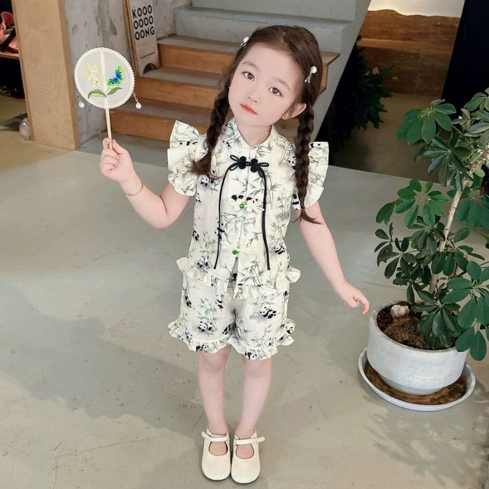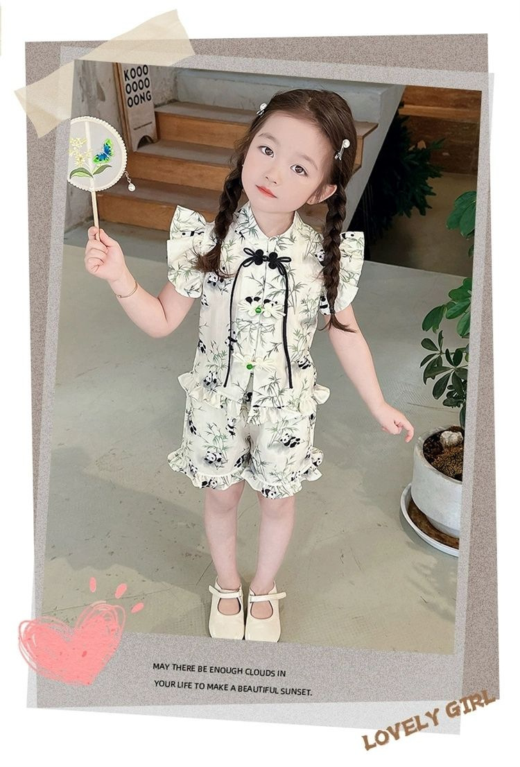 2024 새로운 소녀 세트 새로운 중국 스타일 세련된 패션 꽃 반팔 반바지 아기 소녀를위한 트렌디 한 투피스 세트