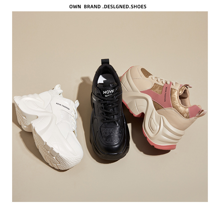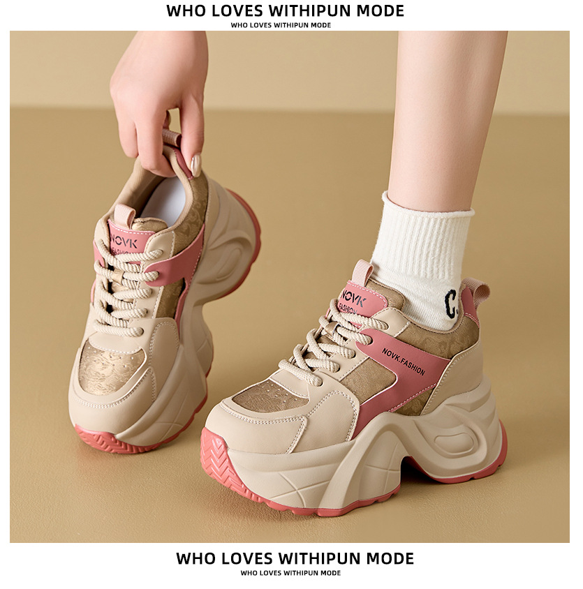 하이 엔드 아우터웨어 2024 가을 겨울 새로운 두꺼운 밑창 내부 높이 증가 아빠 신발 여성 캐주얼 따뜻한 스포츠 신발
