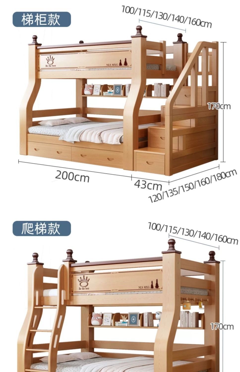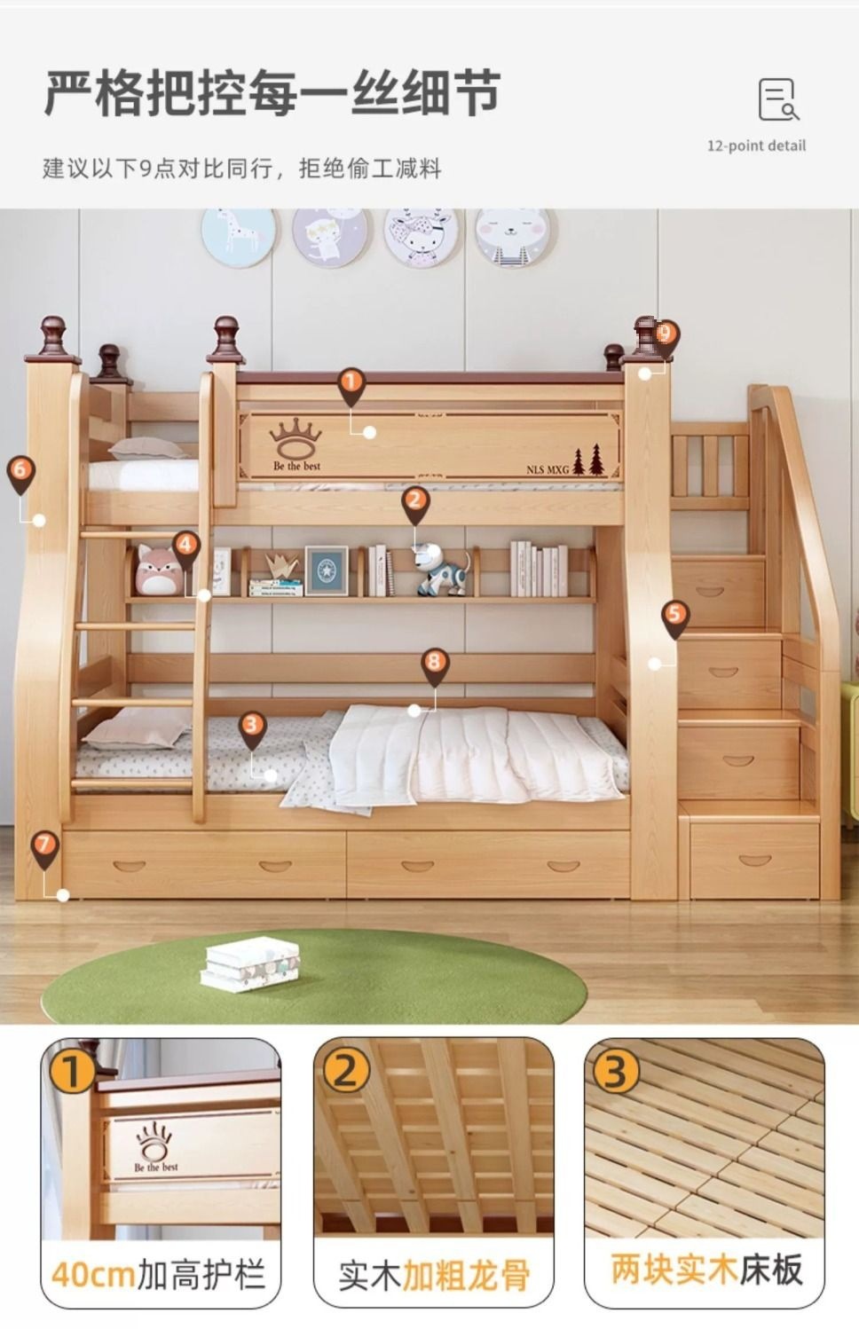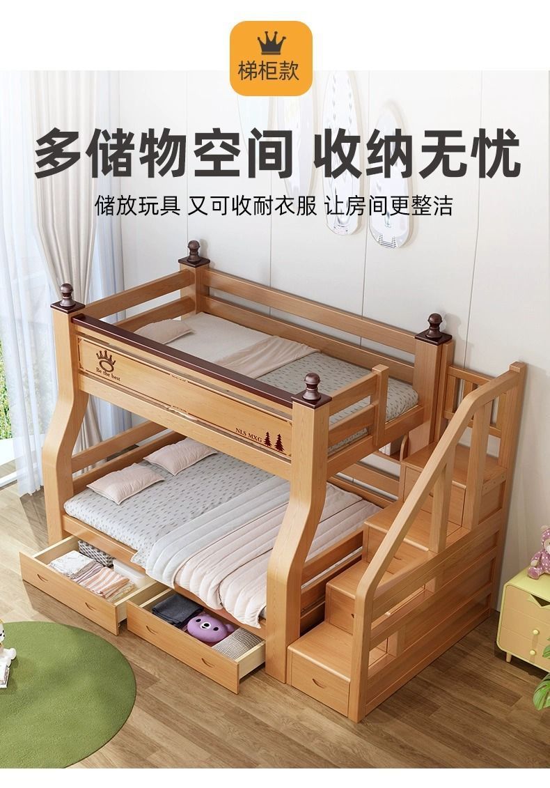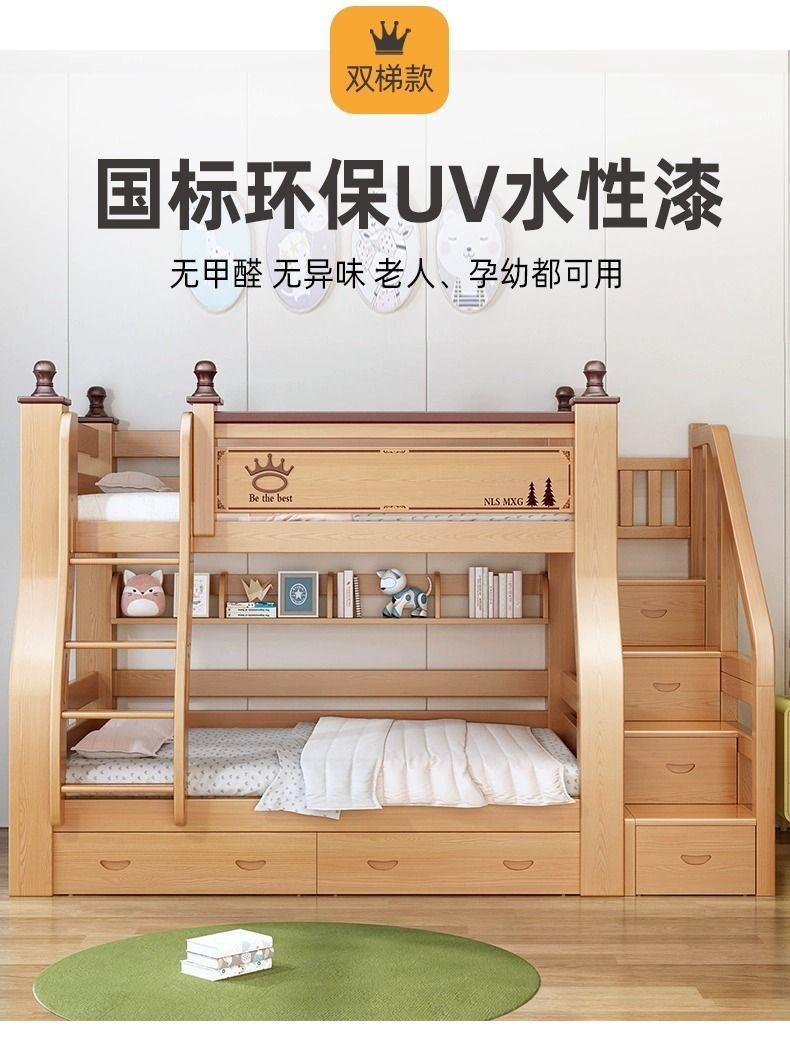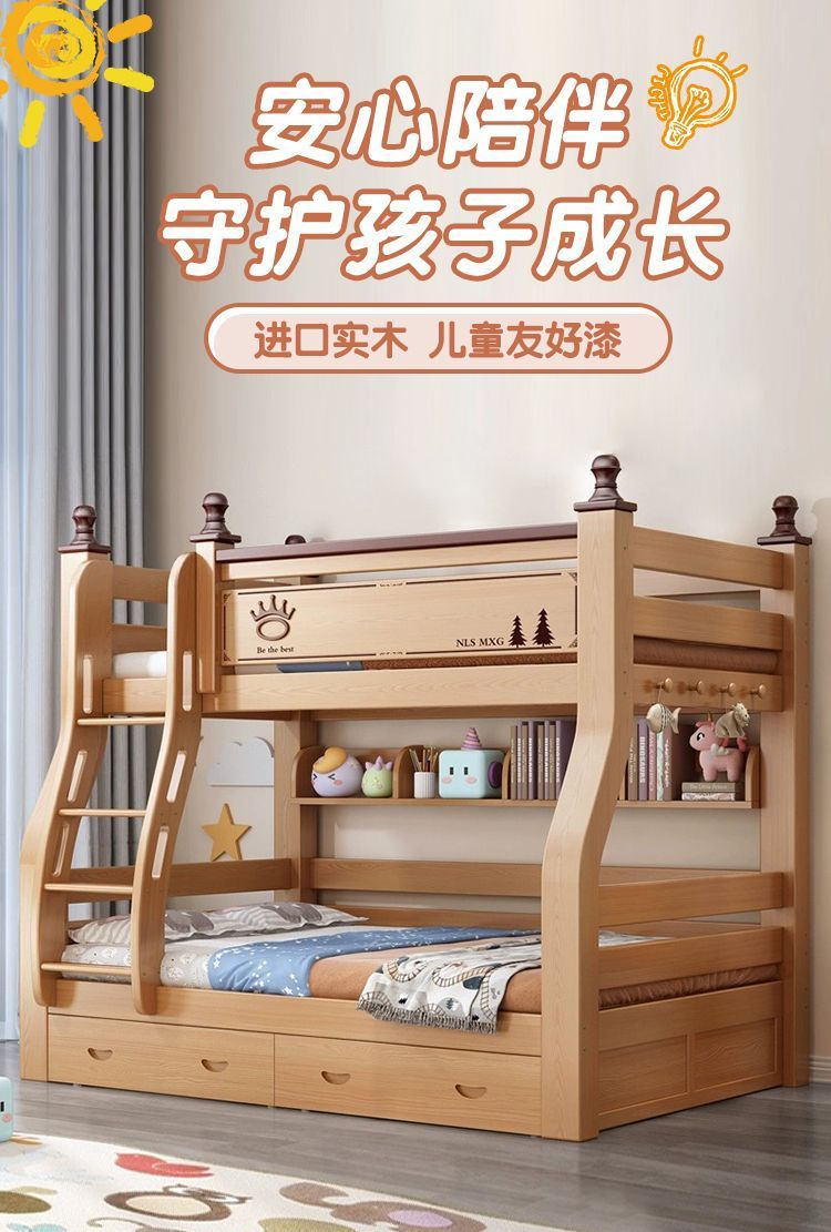 새로운 단단한 나무 어머니 침대 두꺼운 어린이 고무 나무 침대 2 층 더블 침대 작은 가구 조합 침대 높고 낮은 침대스토어 가기