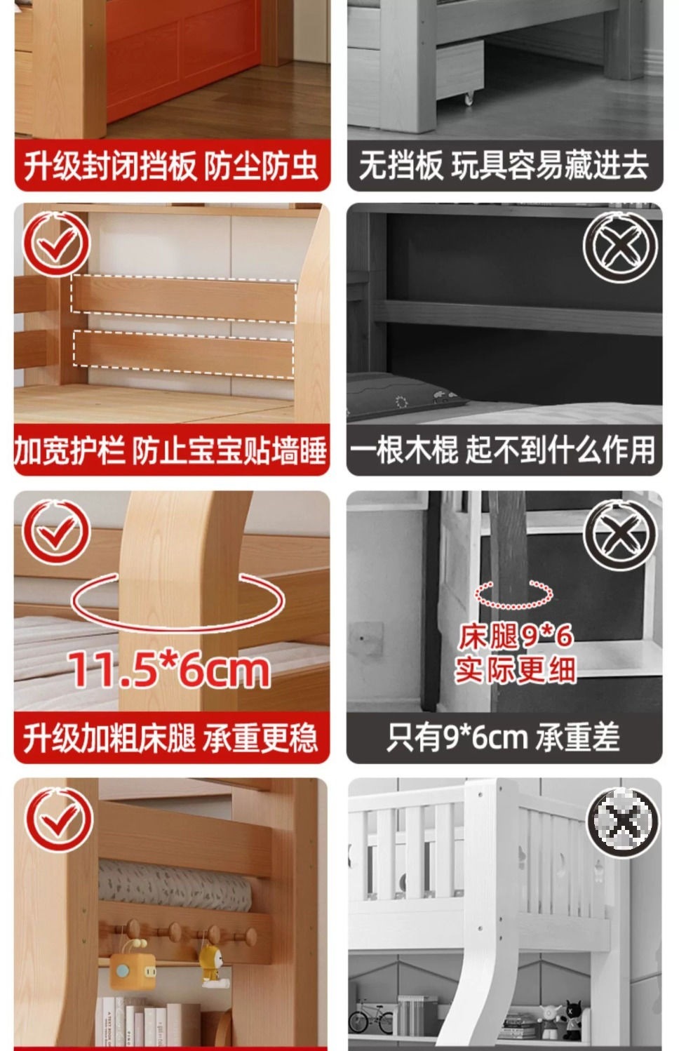 새로운 단단한 나무 어머니 침대 두꺼운 어린이 고무 나무 침대 2 층 더블 침대 작은 가구 조합 침대 높고 낮은 침대