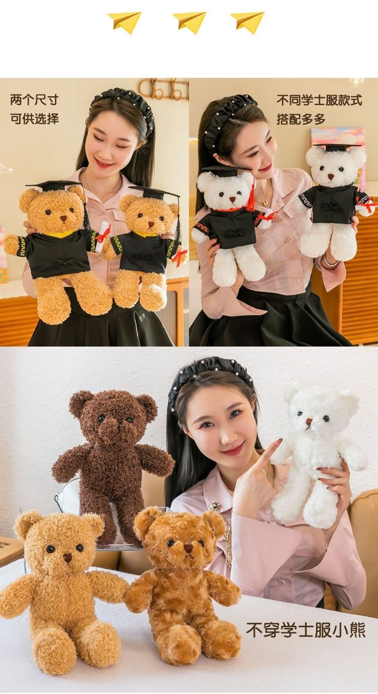 대학생 졸업 선물 곰 인형 봉제 장난감 인형 테디 마스터 박사 모자 교복 학교 배지 로고스토어 가기