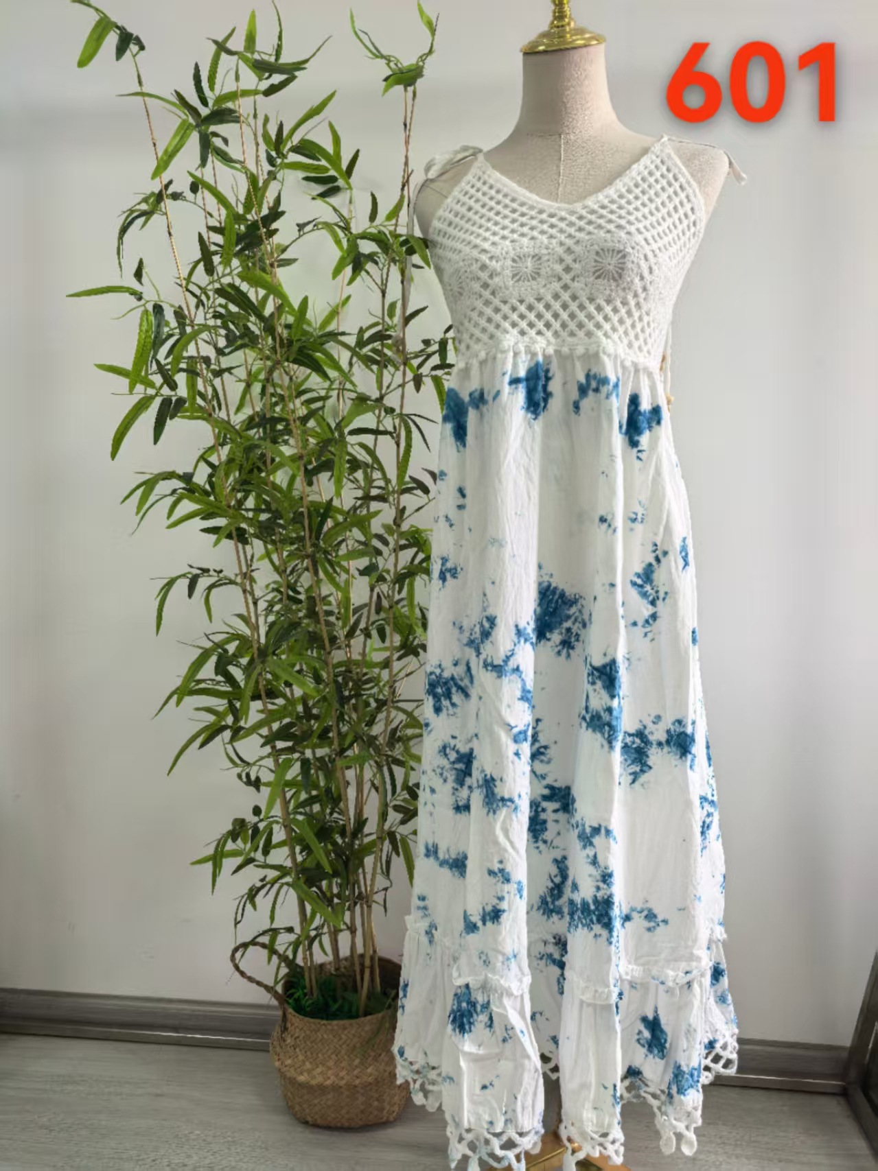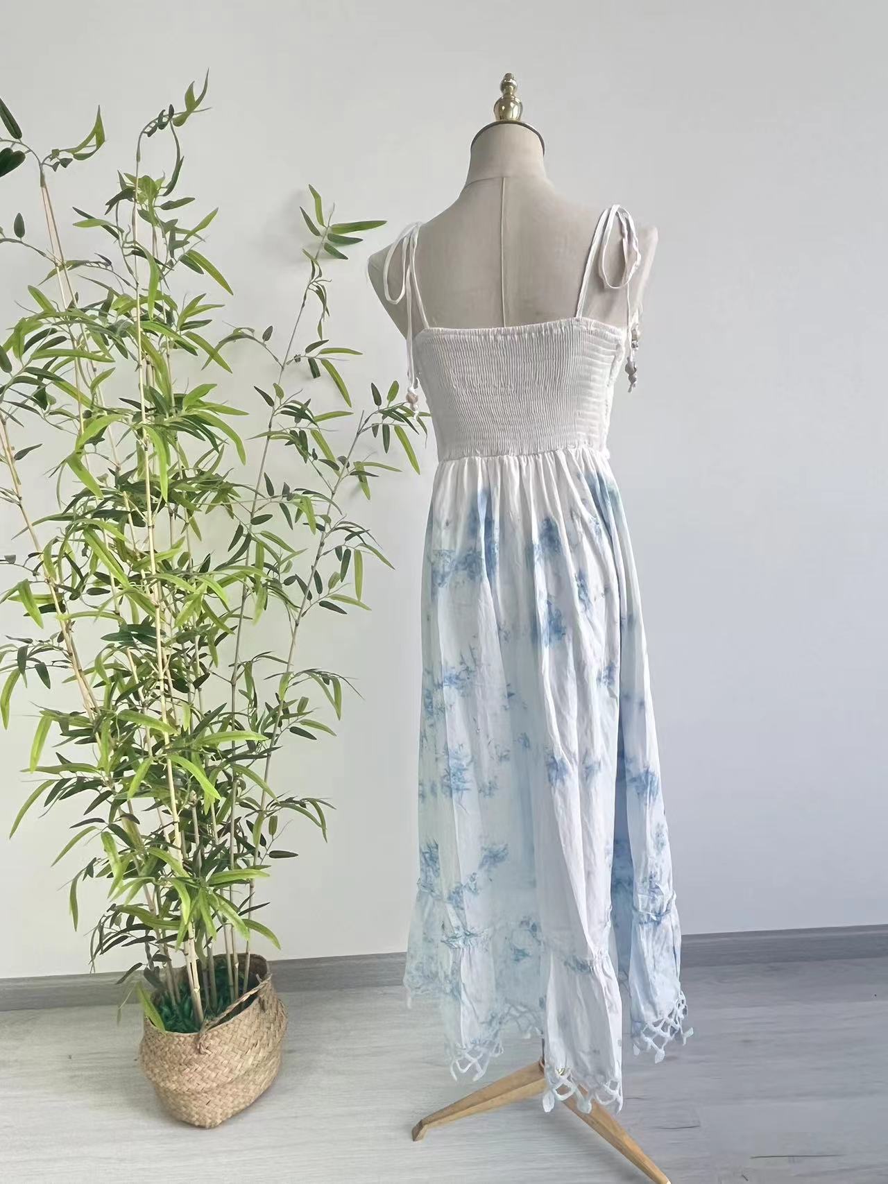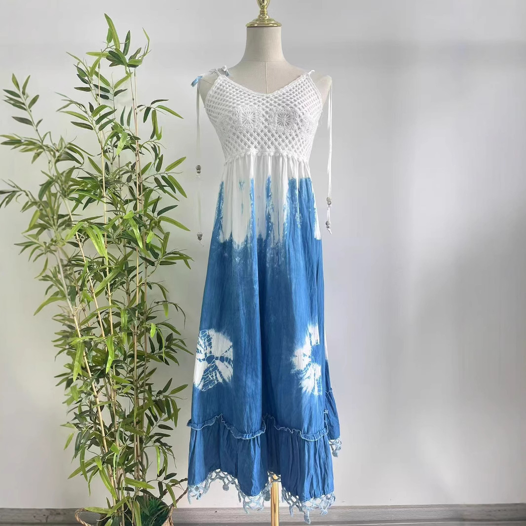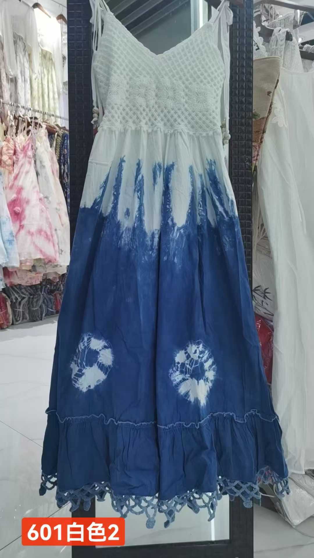 윈난 달리 여행 사진 타이-염료 원피스 공장 재고 도매 타이-염료 스커트 해변 사진 타이-염료 스커트스토어 가기