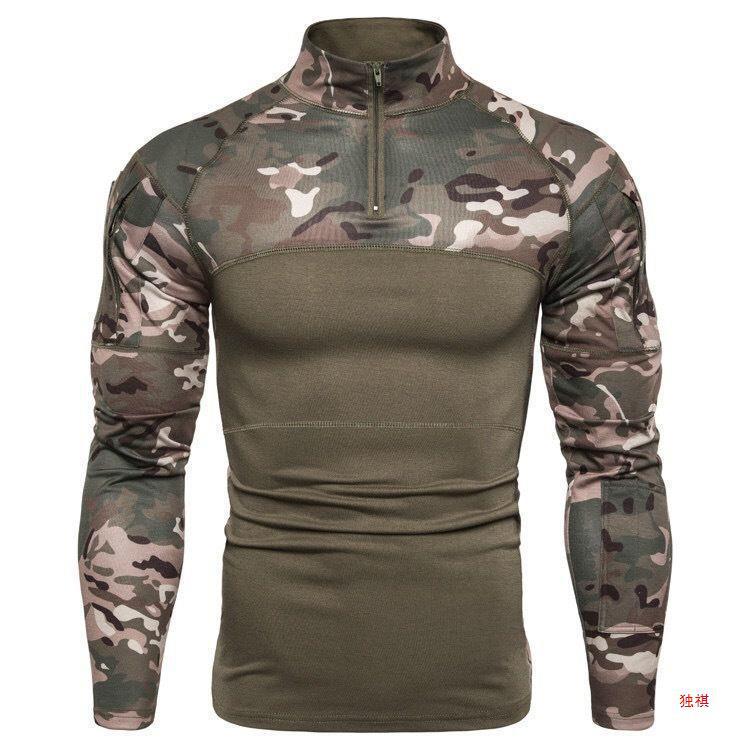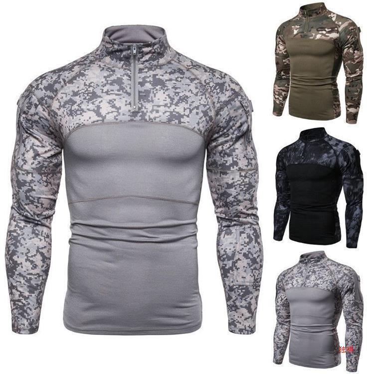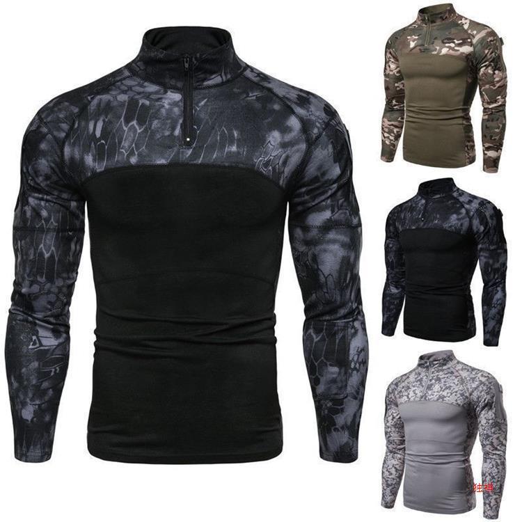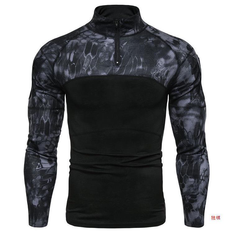 폭발하는 늑대 전사 개인화 된 전장 군사 야외 피트니스 위장 긴 소매 티셔츠 남자의 스트레치 타이트 셔츠