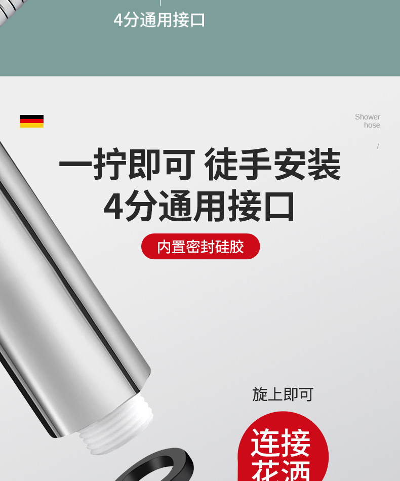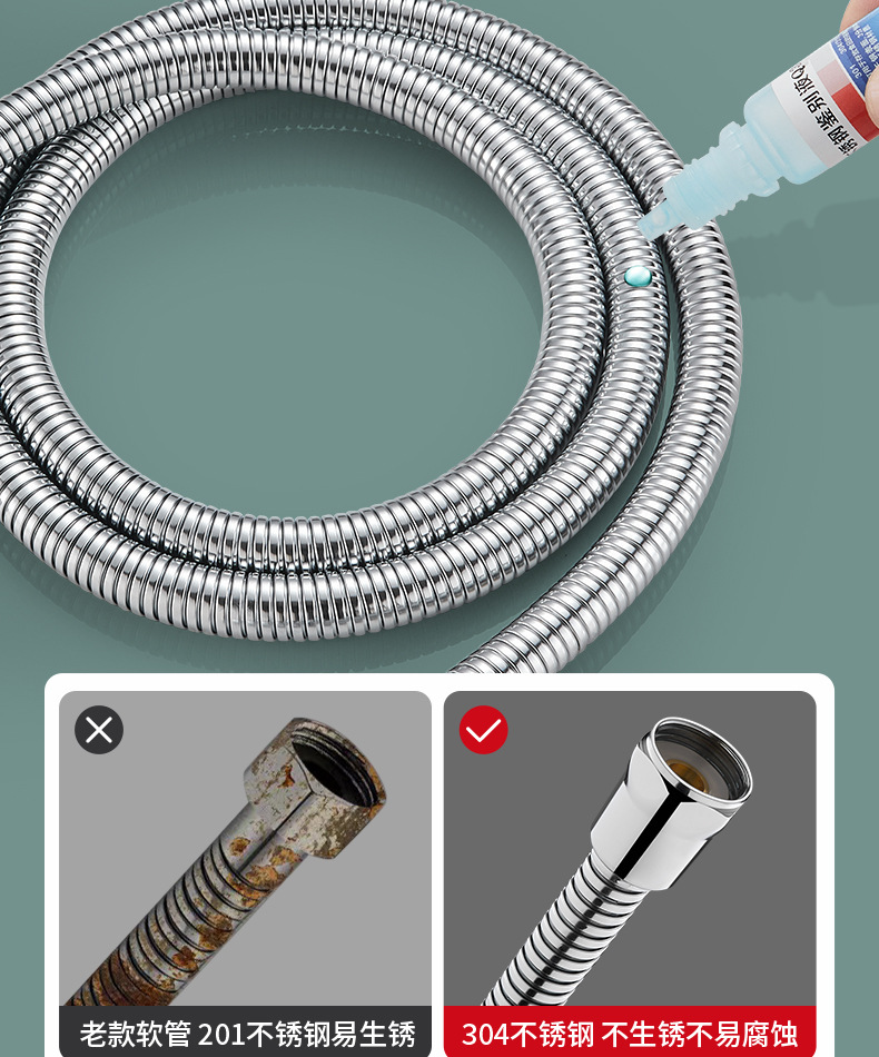 스테인레스 스틸 샤워 호스 폭발 방지 온수기 출구 파이프 파이프 큰 흐름 샤워 노즐 연결 파이프 암호화 샤워 파이프