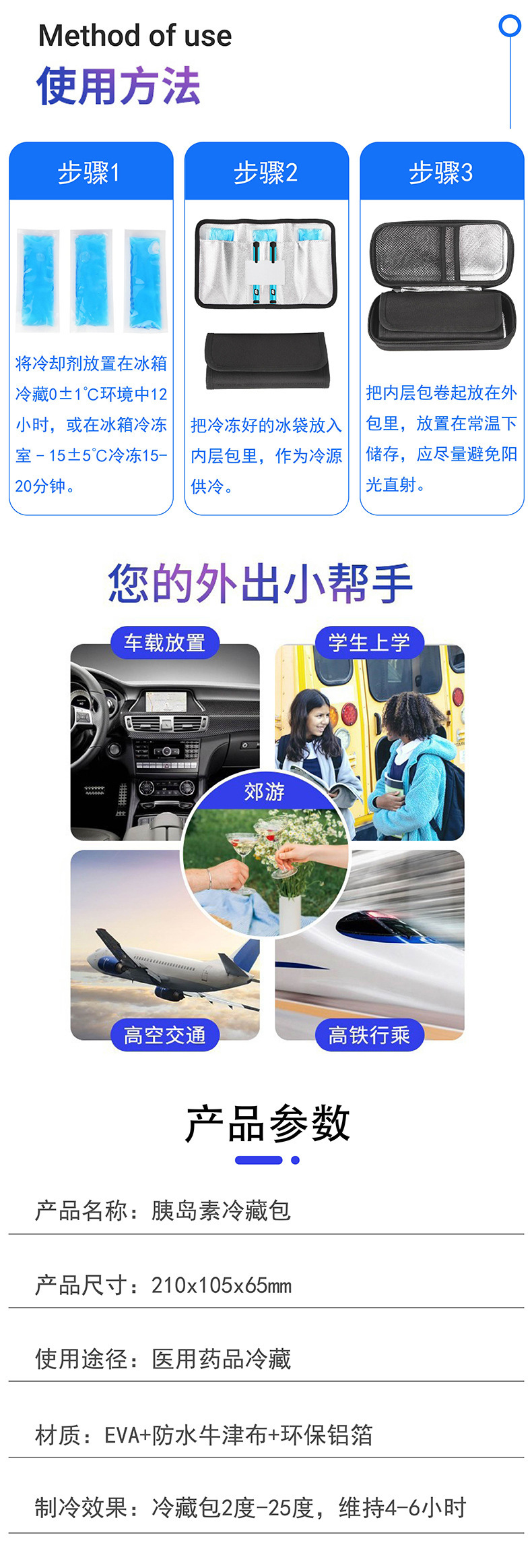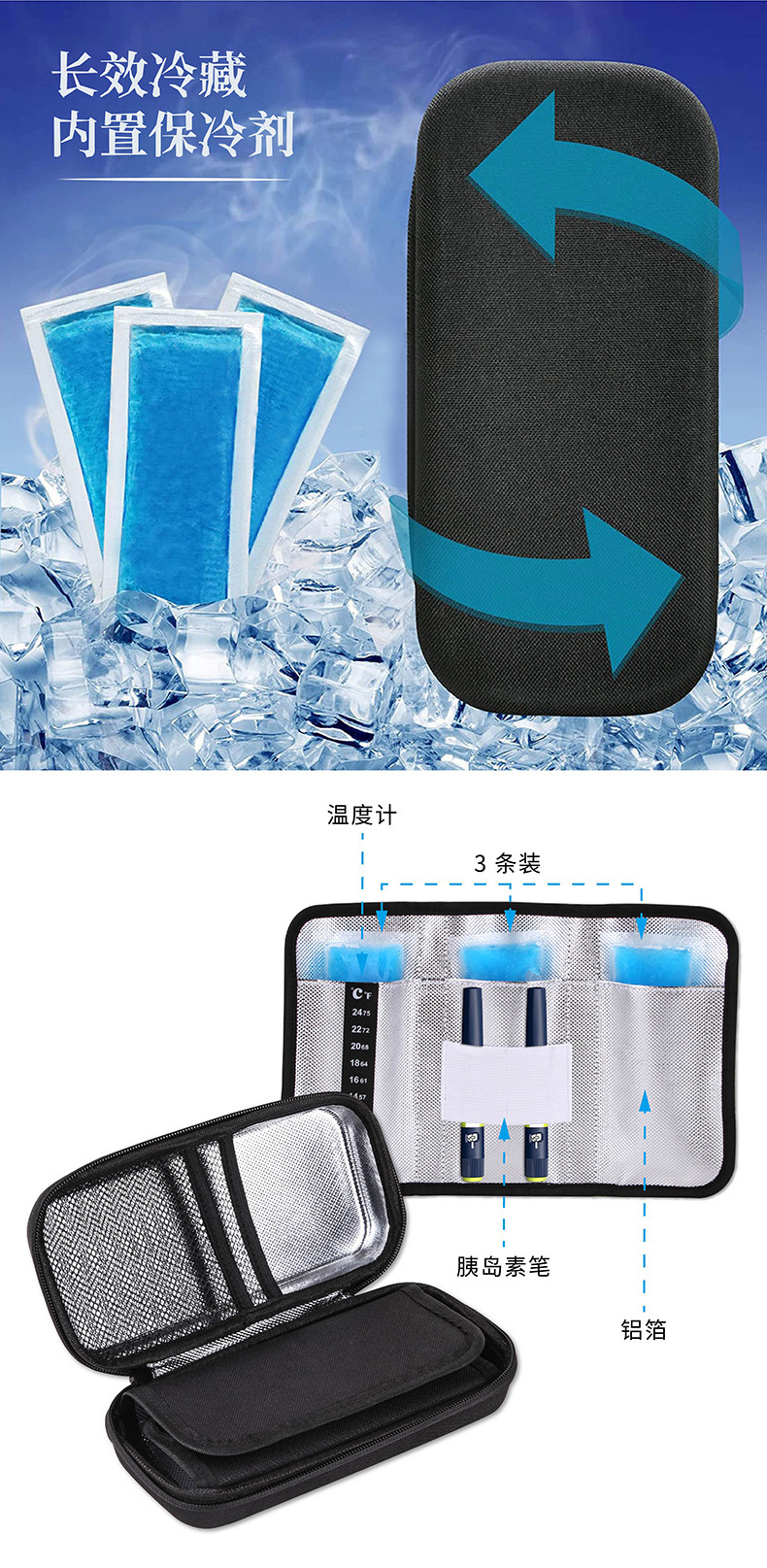 에바 인슐린 가방 응급 처치 가방 휴대용 여행 콜드 백 의학 인슐린 냉장고 2-8 도 아이스 백 무료 배송