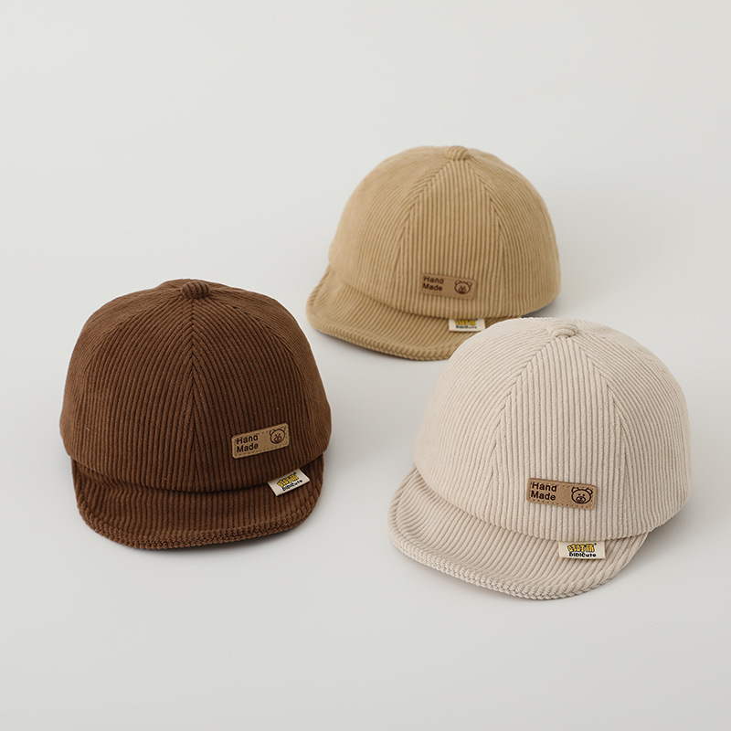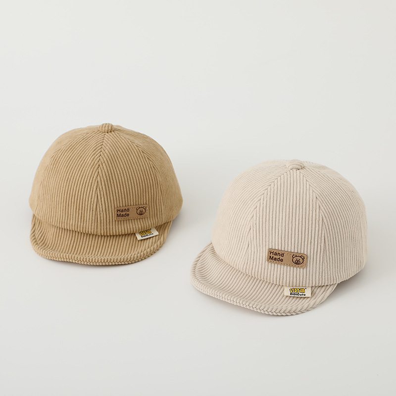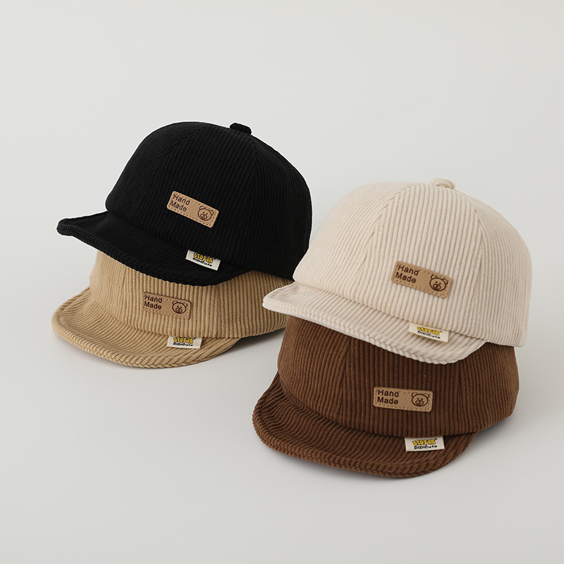 아기 모자 가죽 라벨 곰 머리 봄과 가을 새로운 패션 소년과 소녀 아기 통기성 어린이 모자