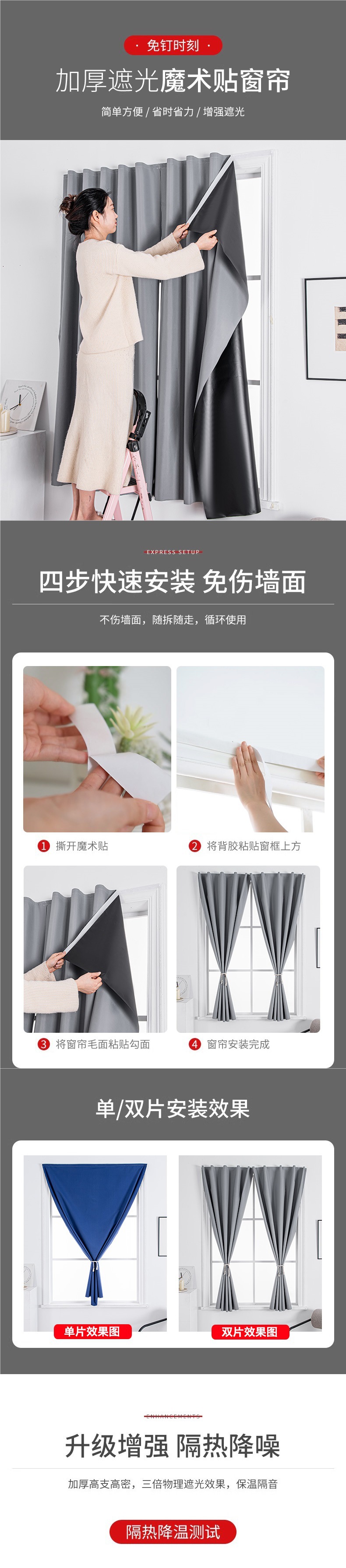 간단한 자기 접착 풀 음영 커튼 원단 완성 된 비 천공 벨크로 설치 침실 솔리드 컬러 햇빛 2023 새로운스토어 가기