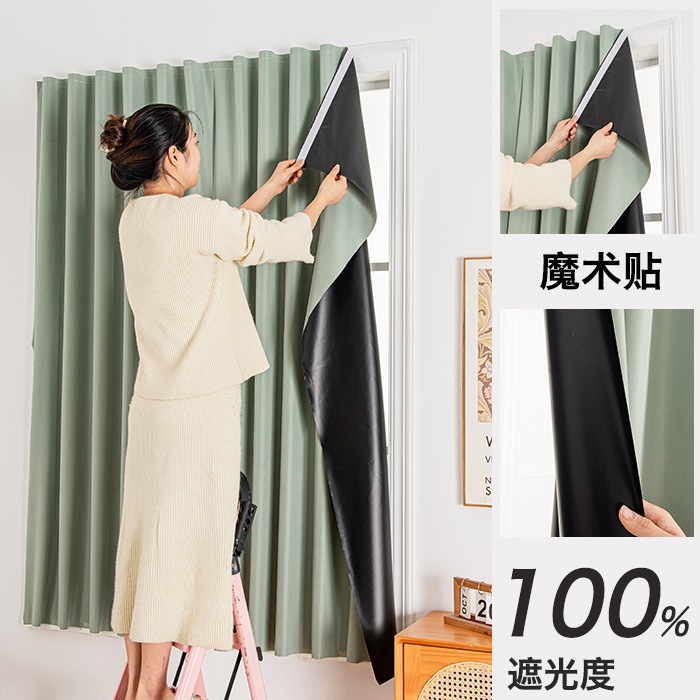 간단한 자기 접착 풀 음영 커튼 원단 완성 된 비 천공 벨크로 설치 침실 솔리드 컬러 햇빛 2023 새로운