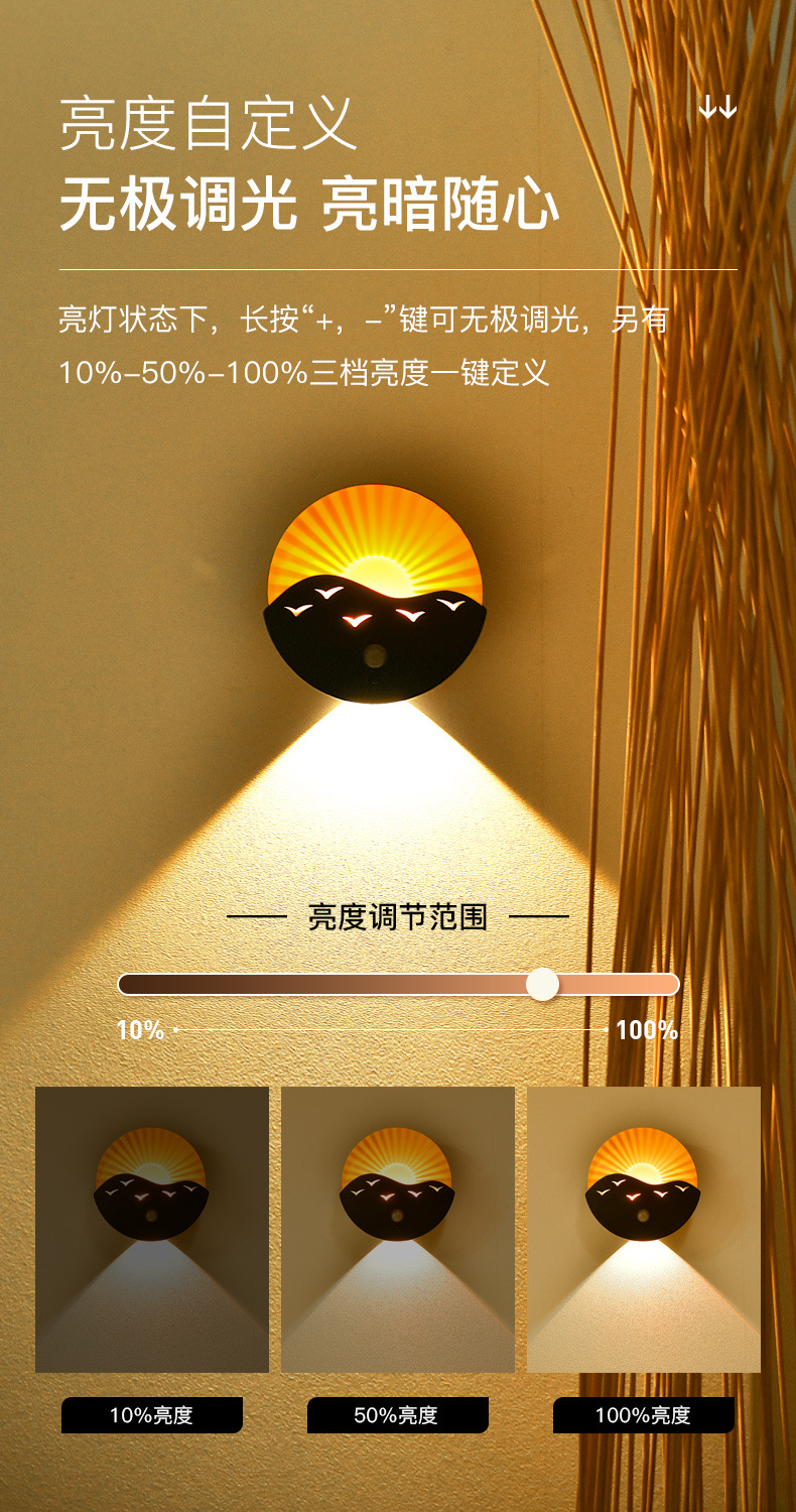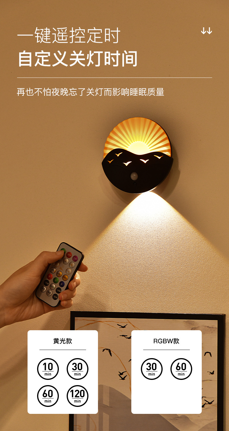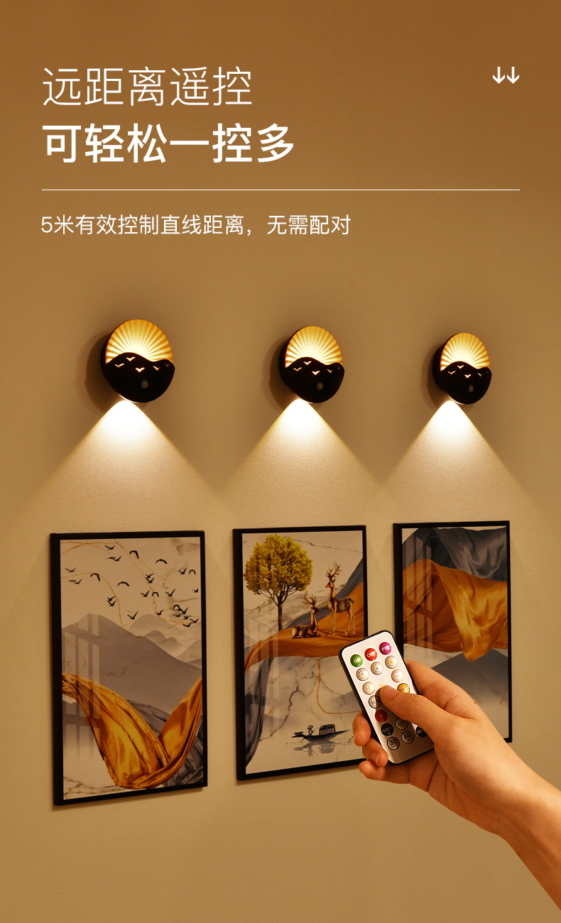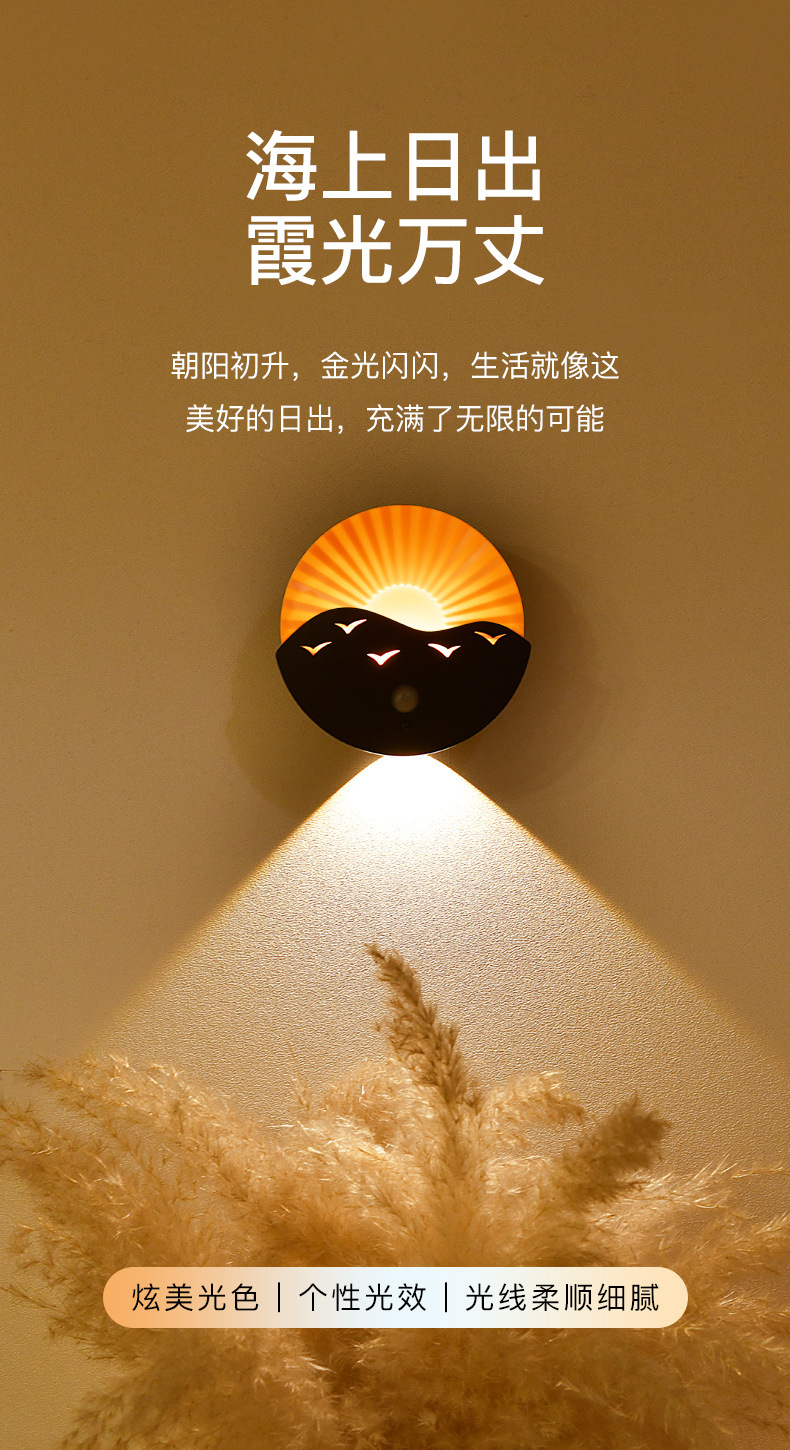 국경 간 바다 일출 벽 램프 침실 복도 거실 복도 유도 야간 조명 충전식 배터리 원격 제어 무선 스포트라이트