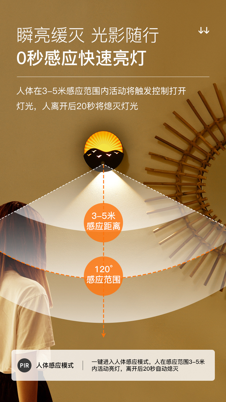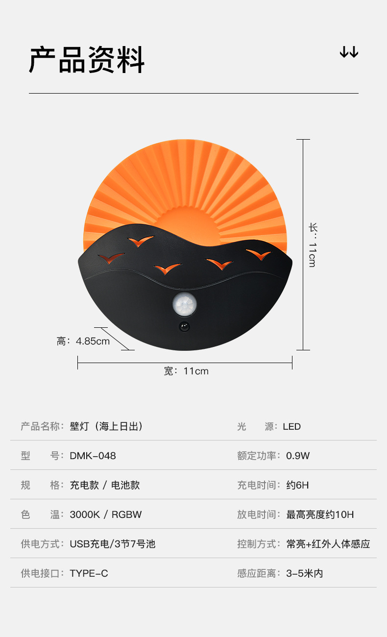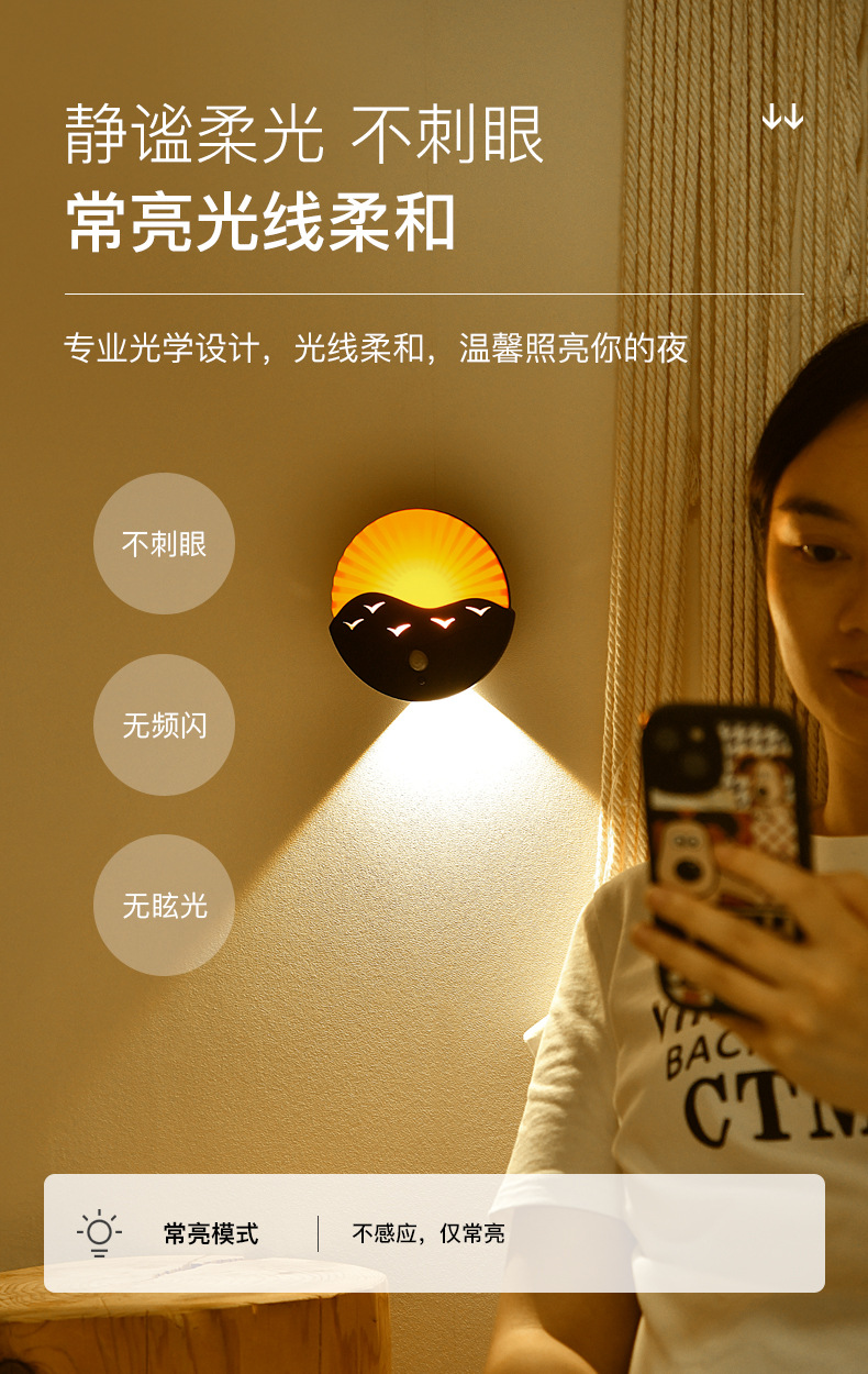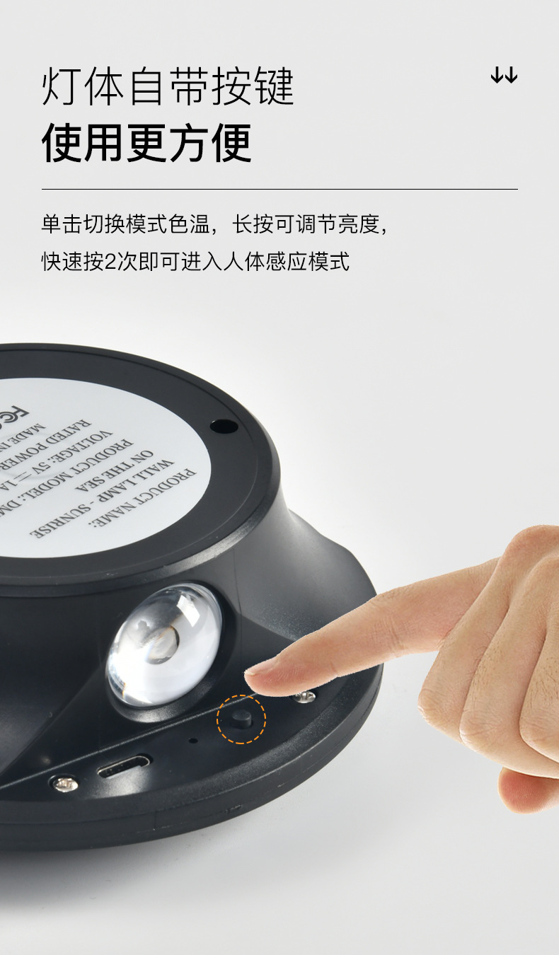 국경 간 바다 일출 벽 램프 침실 복도 거실 복도 유도 야간 조명 충전식 배터리 원격 제어 무선 스포트라이트