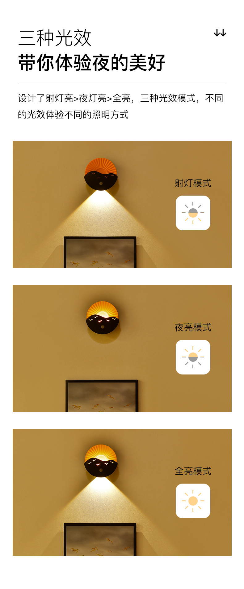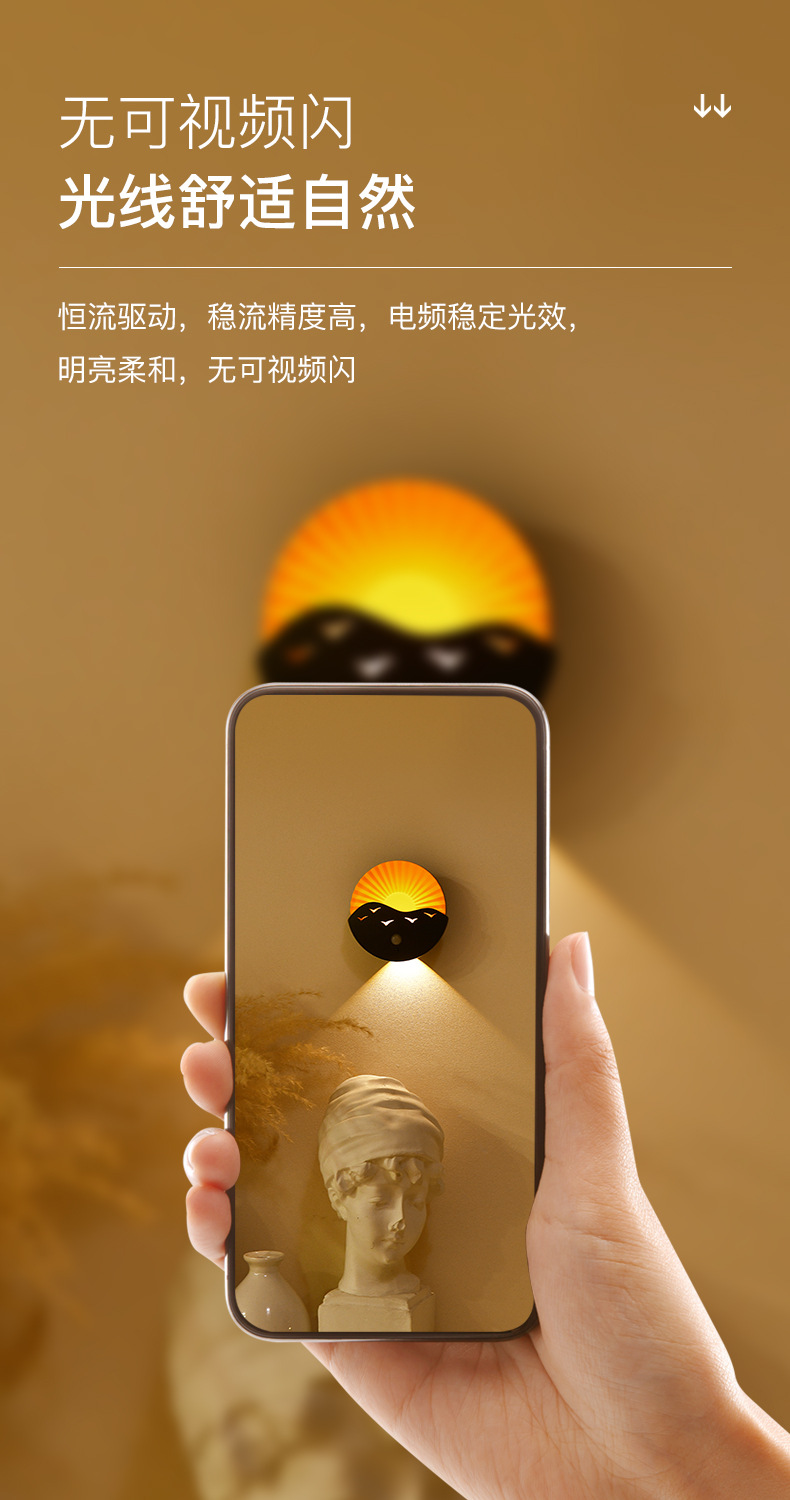 • 벽 램프-바다에서 일출 (충전-노란색 빛)
