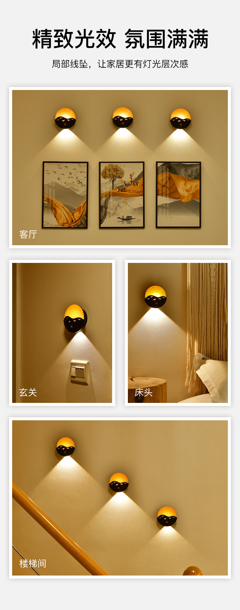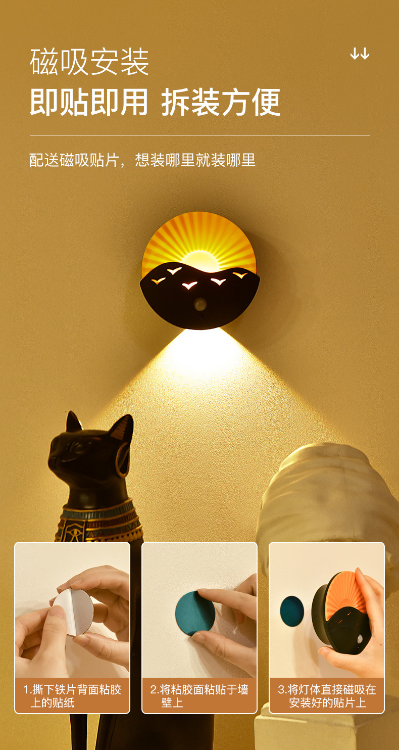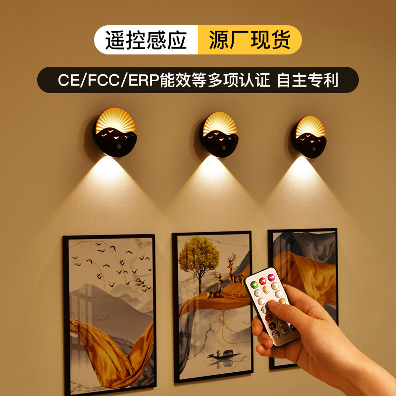 국경 간 바다 일출 벽 램프 침실 복도 거실 복도 유도 야간 조명 충전식 배터리 원격 제어 무선 스포트라이트스토어 가기